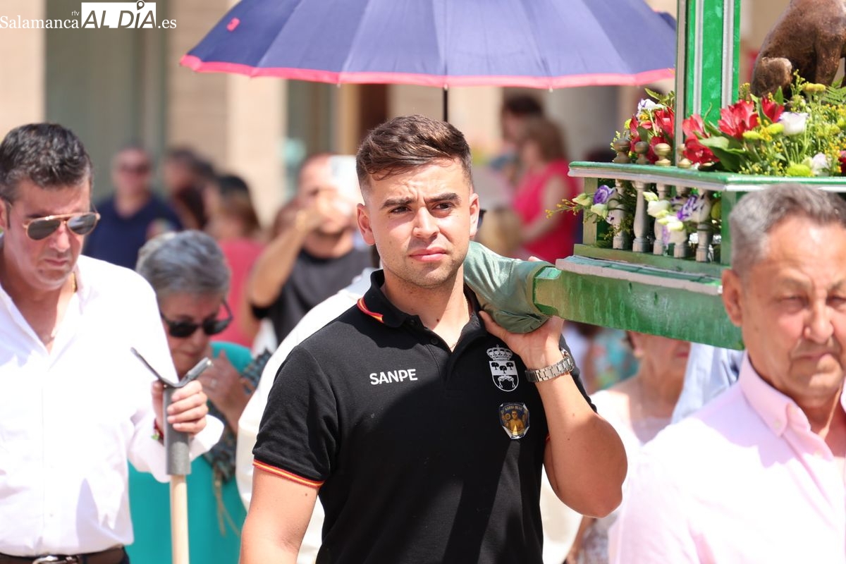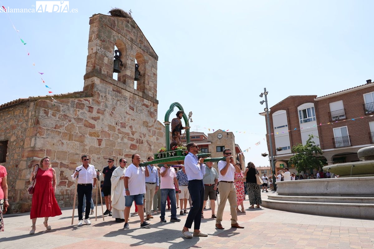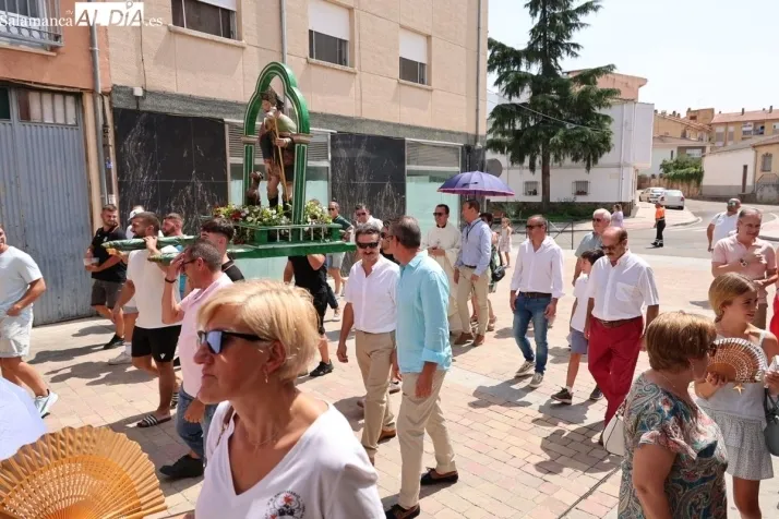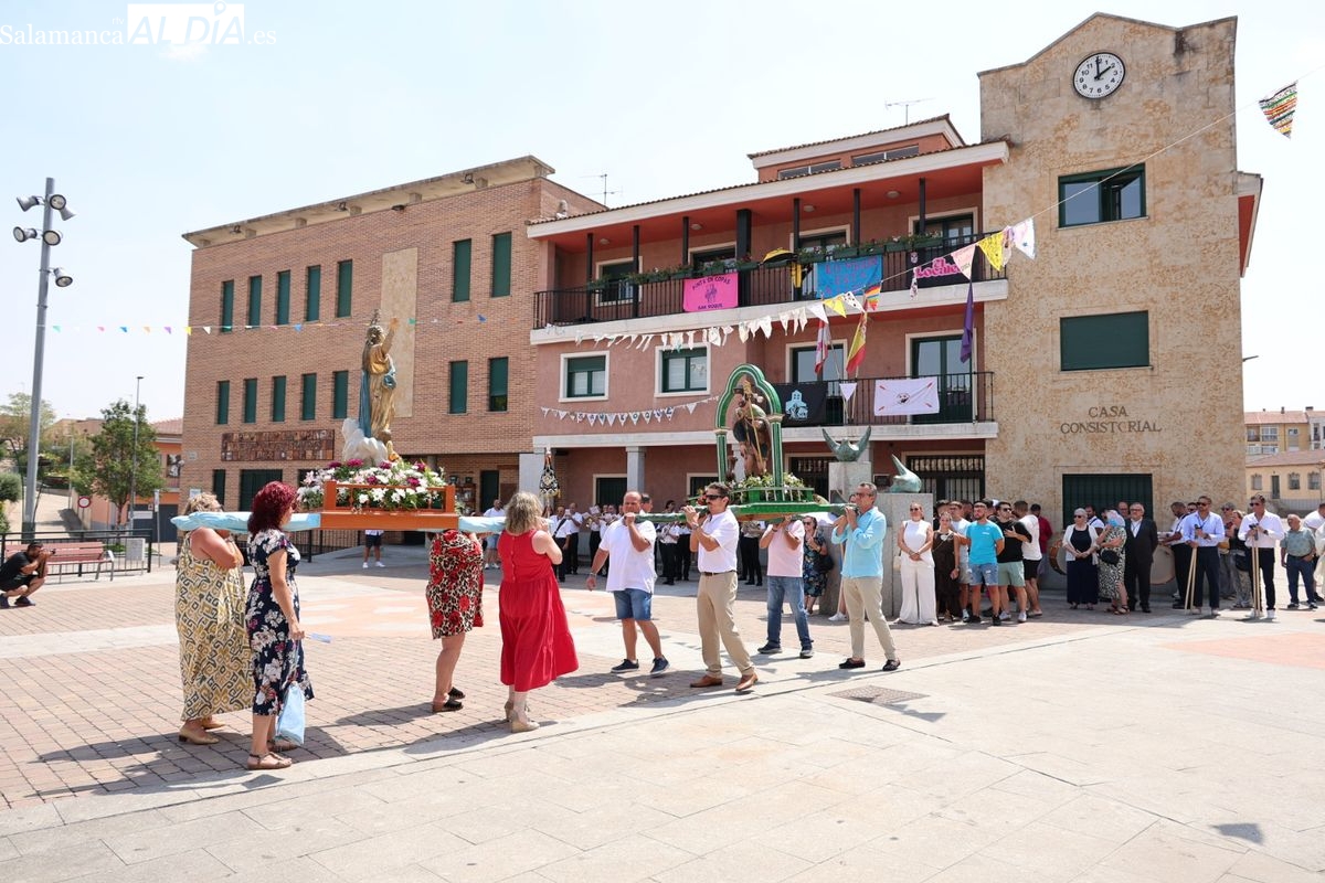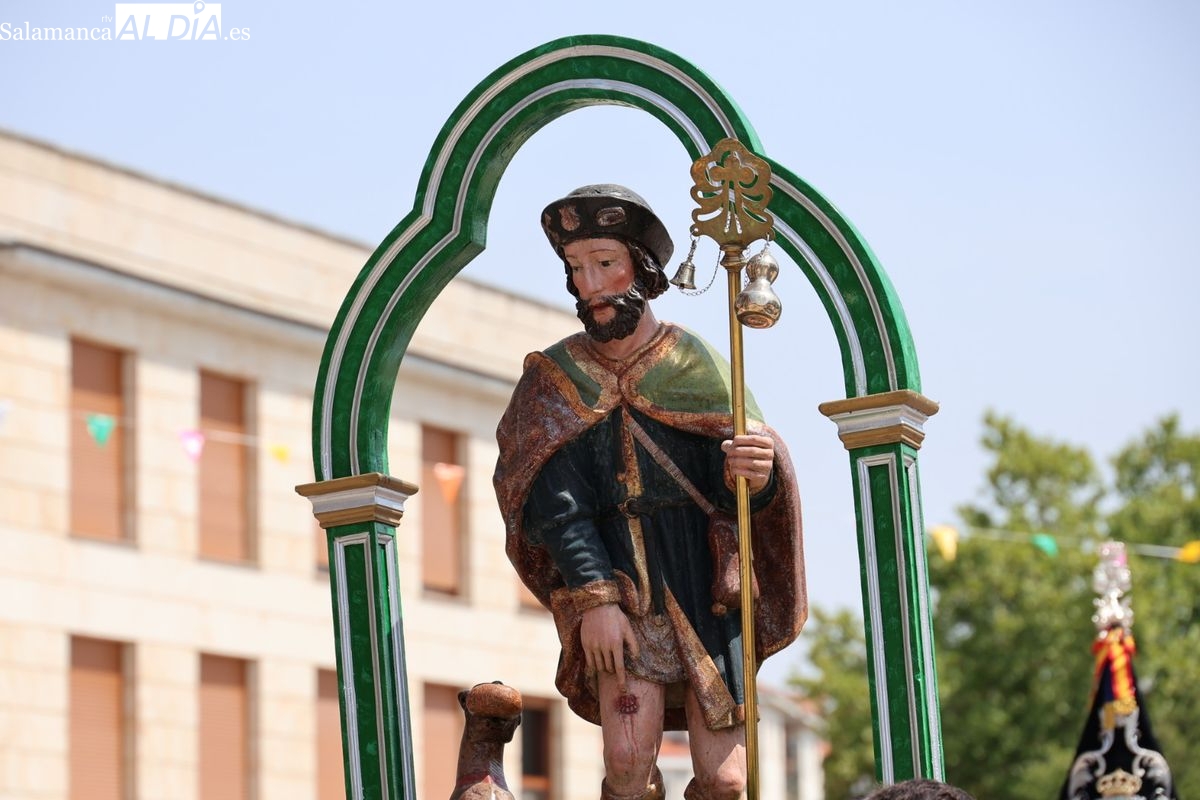 Carbajosa de la Sagrada ha celebrado este sábado, 16 de agosto, el día grande de sus fiestas patronales en honor a San Roque. Tras la celebración de la santa misa en la iglesia parroquial, la imagen del patrón ha salido en procesión por las calles de la localidad, acompañada por los pasos de Nuestra Señora de la Asunción, el Niño Jesús, así como la Corporación municipal y numerosos vecinos.