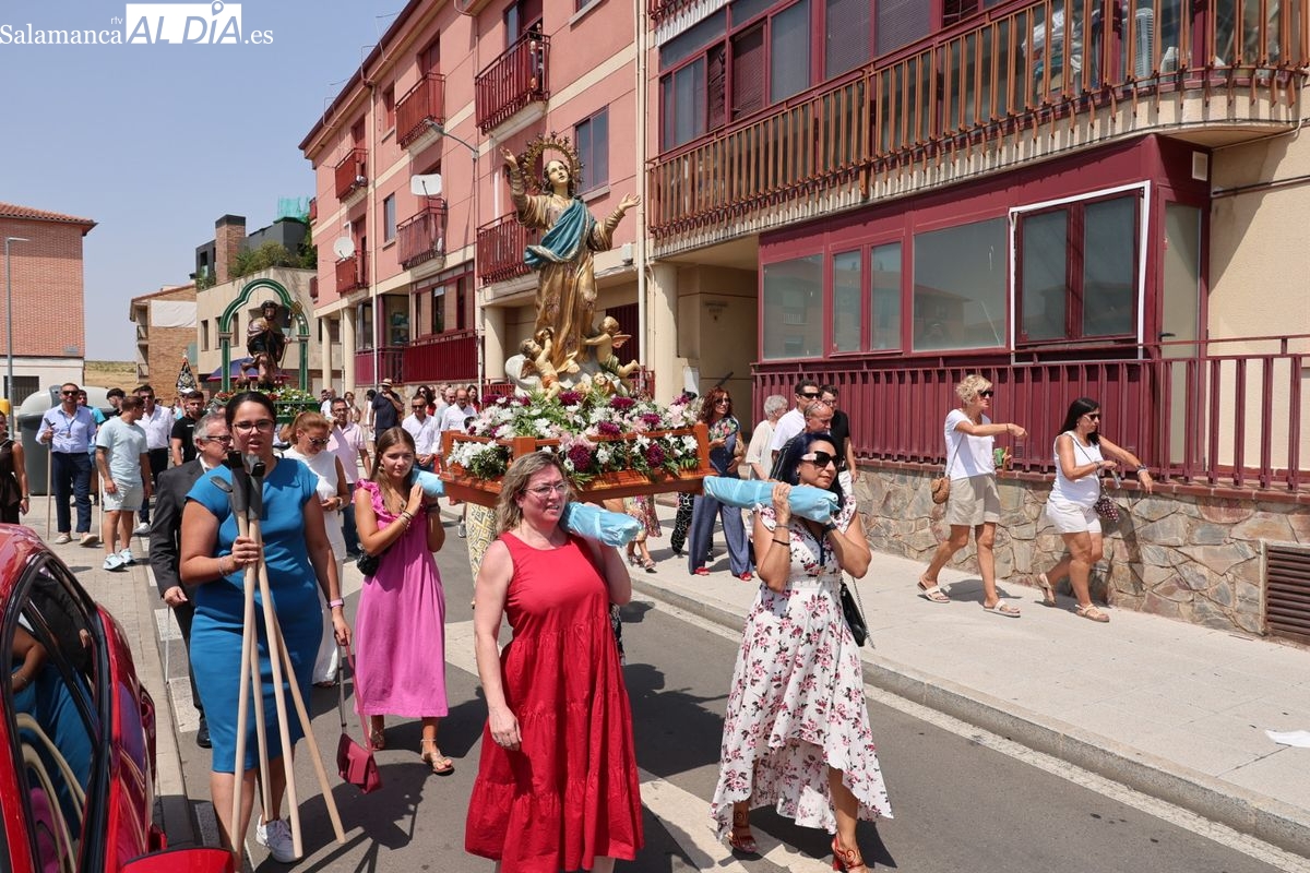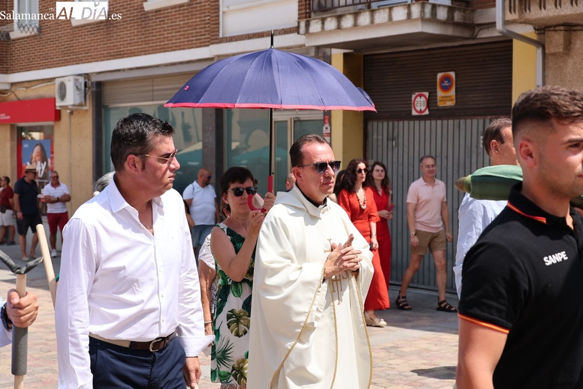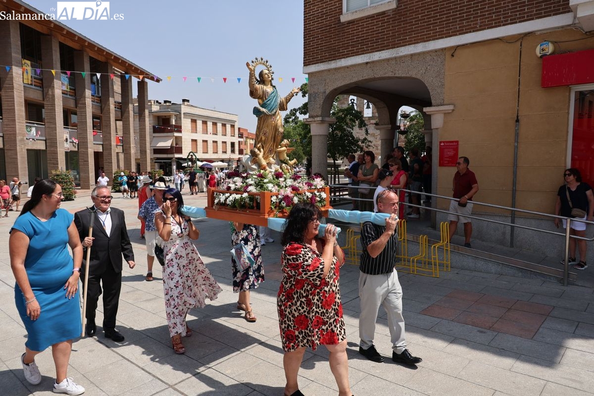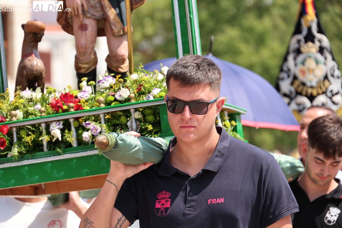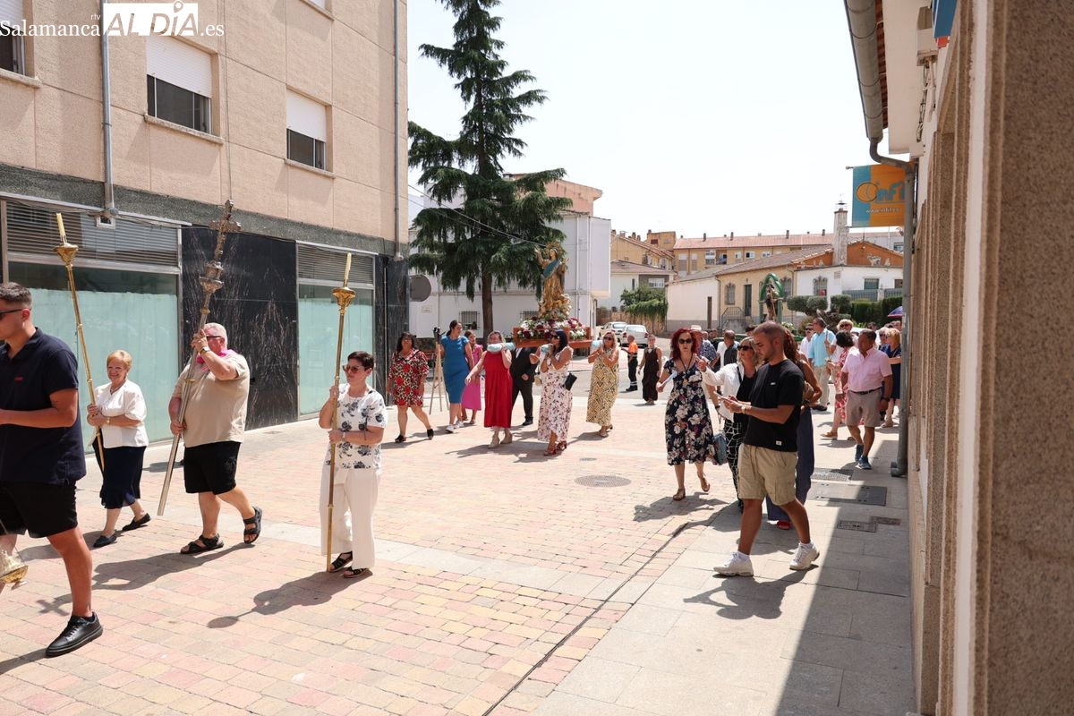 Carbajosa de la Sagrada ha celebrado este sábado, 16 de agosto, el día grande de sus fiestas patronales en honor a San Roque. Tras la celebración de la santa misa en la iglesia parroquial, la imagen del patrón ha salido en procesión por las calles de la localidad, acompañada por los pasos de Nuestra Señora de la Asunción, el Niño Jesús, así como la Corporación municipal y numerosos vecinos.