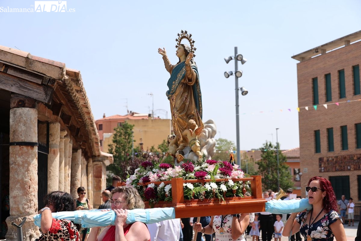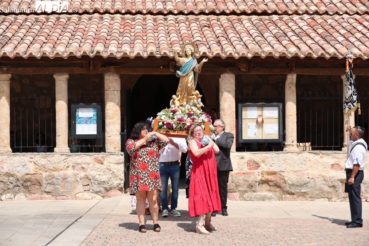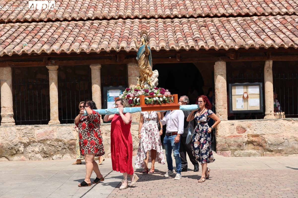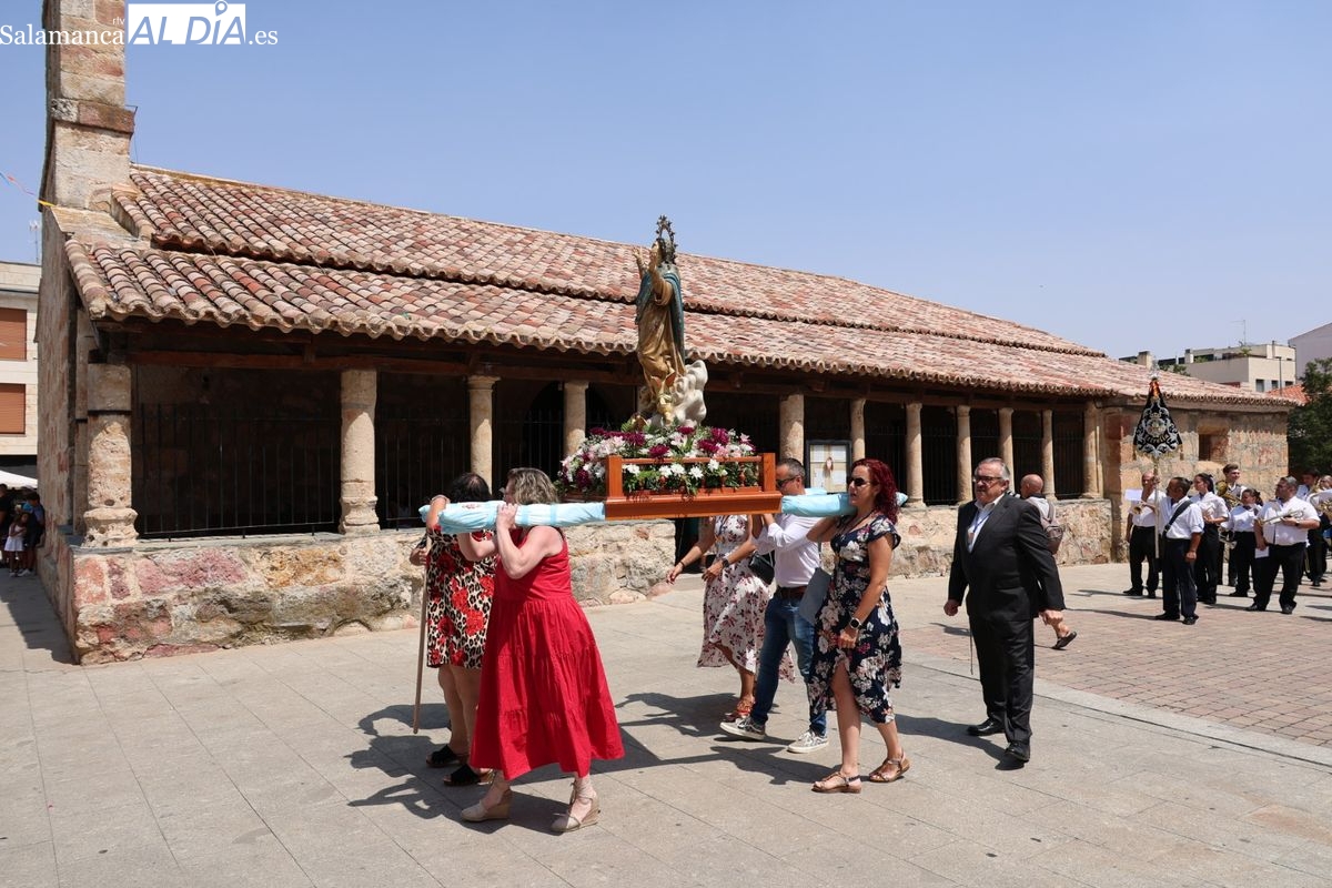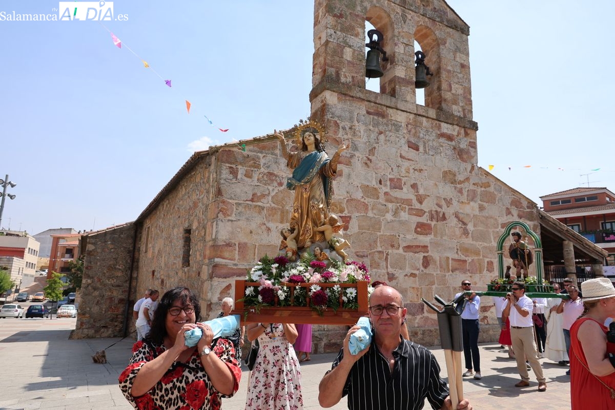 Carbajosa de la Sagrada ha celebrado este sábado, 16 de agosto, el día grande de sus fiestas patronales en honor a San Roque. Tras la celebración de la santa misa en la iglesia parroquial, la imagen del patrón ha salido en procesión por las calles de la localidad, acompañada por los pasos de Nuestra Señora de la Asunción, el Niño Jesús, así como la Corporación municipal y numerosos vecinos.