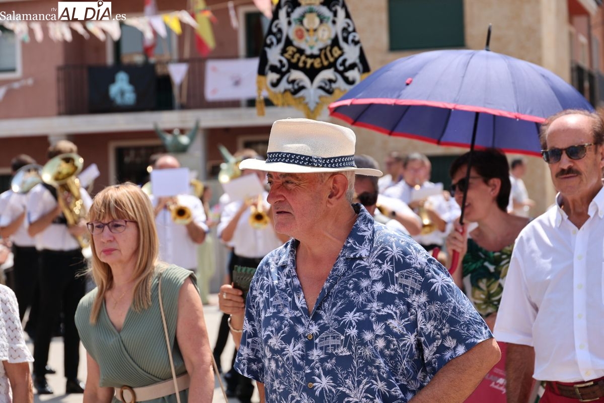 El solemne desfile procesional ha contado con el acompañamiento de la Agrupación Musical María Santísima de la Estrella, que ha marcado con sus sones el paso del recorrido del santo por el municipio en los actos religiosos de la mañana de las fiestas patronales.