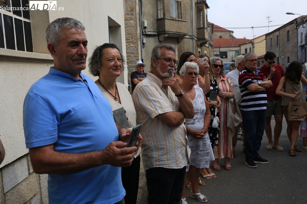 El acto inaugural, celebrado frente a la puerta del emblemático antiguo comercio de Las Saturninas, ha servido como pistoletazo de salida para una exposición multidisciplinar que se reparte en tres sedes: el propio comercio, el hogar parroquial y el salón de plenos del Ayuntamiento, lugares donde estará hasta el 21 de agosto. La ceremonia ha estado cargada de emoción y agradecimiento, reconociendo el esfuerzo de los nueve artistas participantes, quienes han recibido una placa conmemorativa de manos de la alcaldesa, Dory Ginés, y los concejales Silvia Amaro y Juan Miguel Merchán.