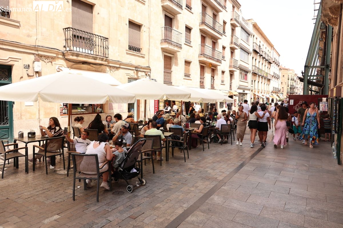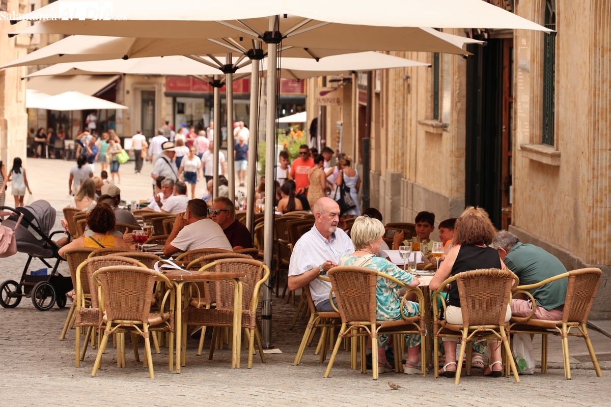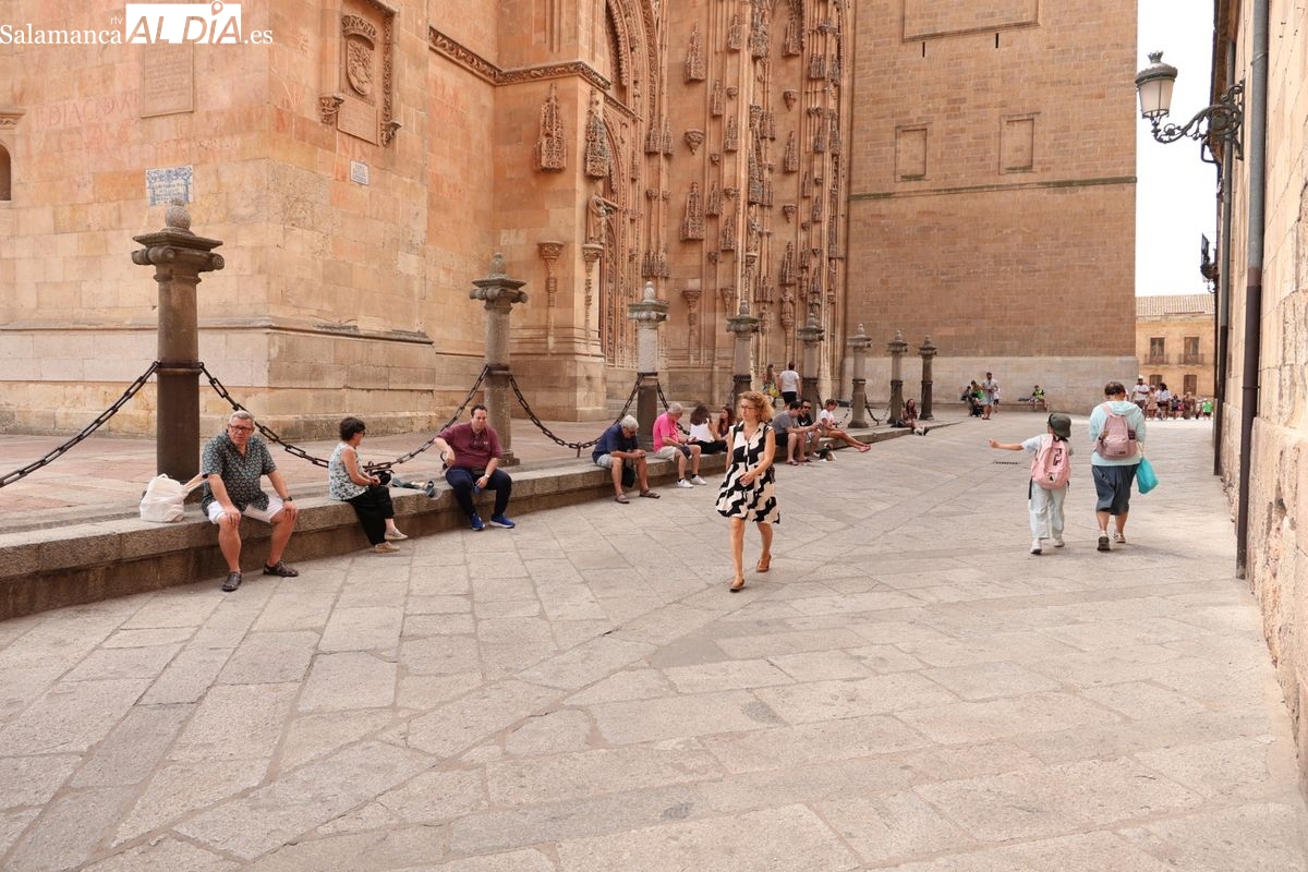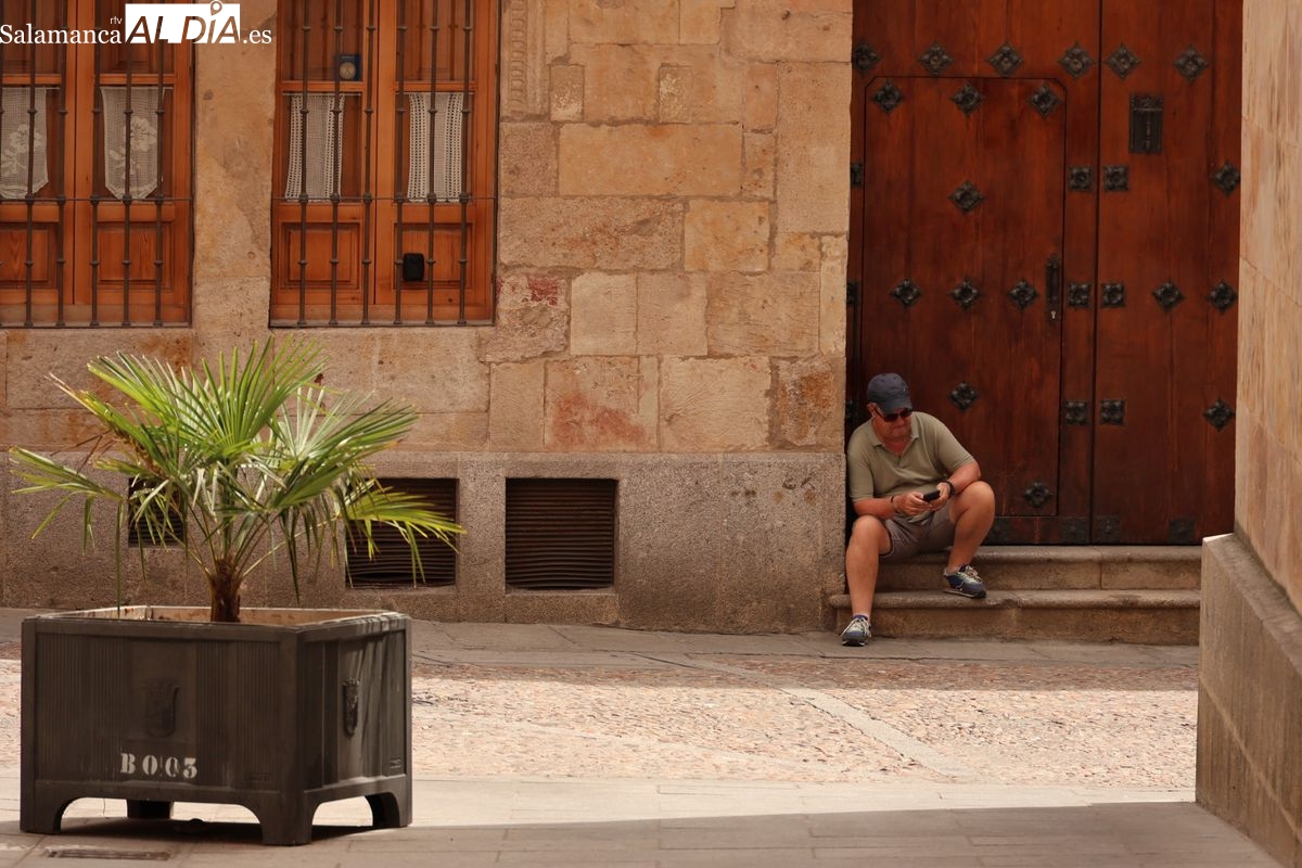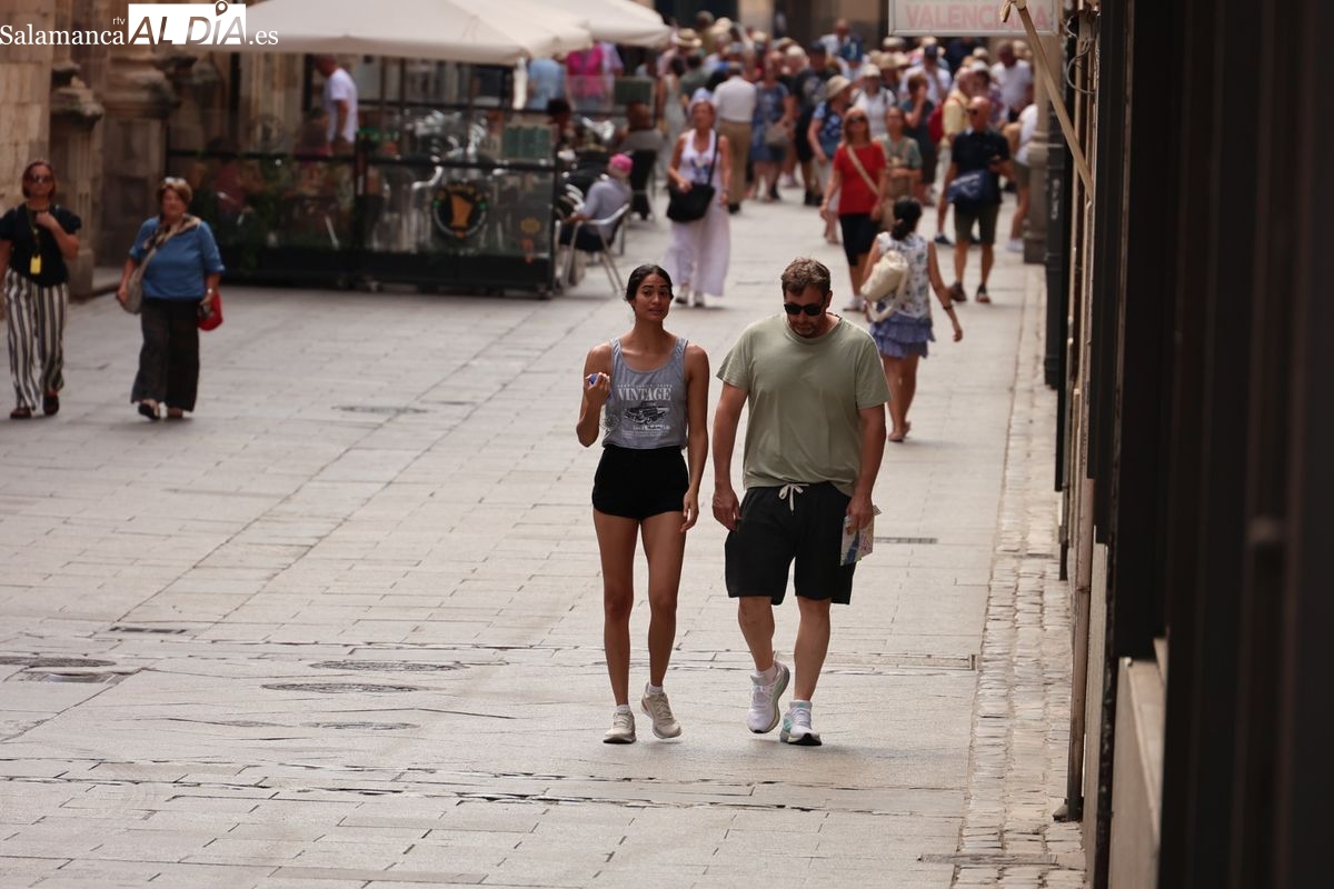 El ambiente en las calles más céntricas de la capital charra es notablemente más tranquilo de lo habitual este domingo, una estampa marcada por el calor sofocante y una afluencia de gente visiblemente reducida.