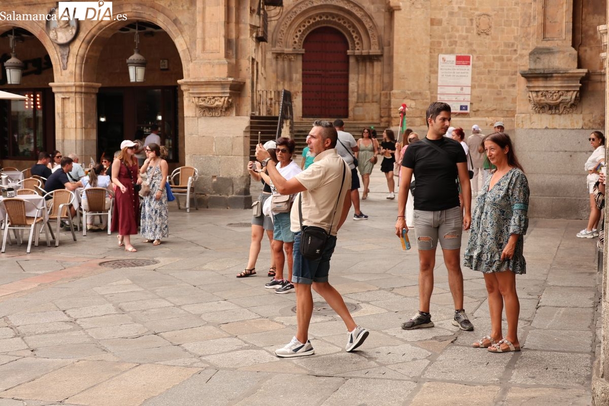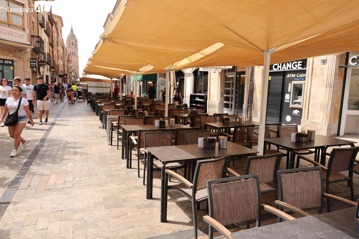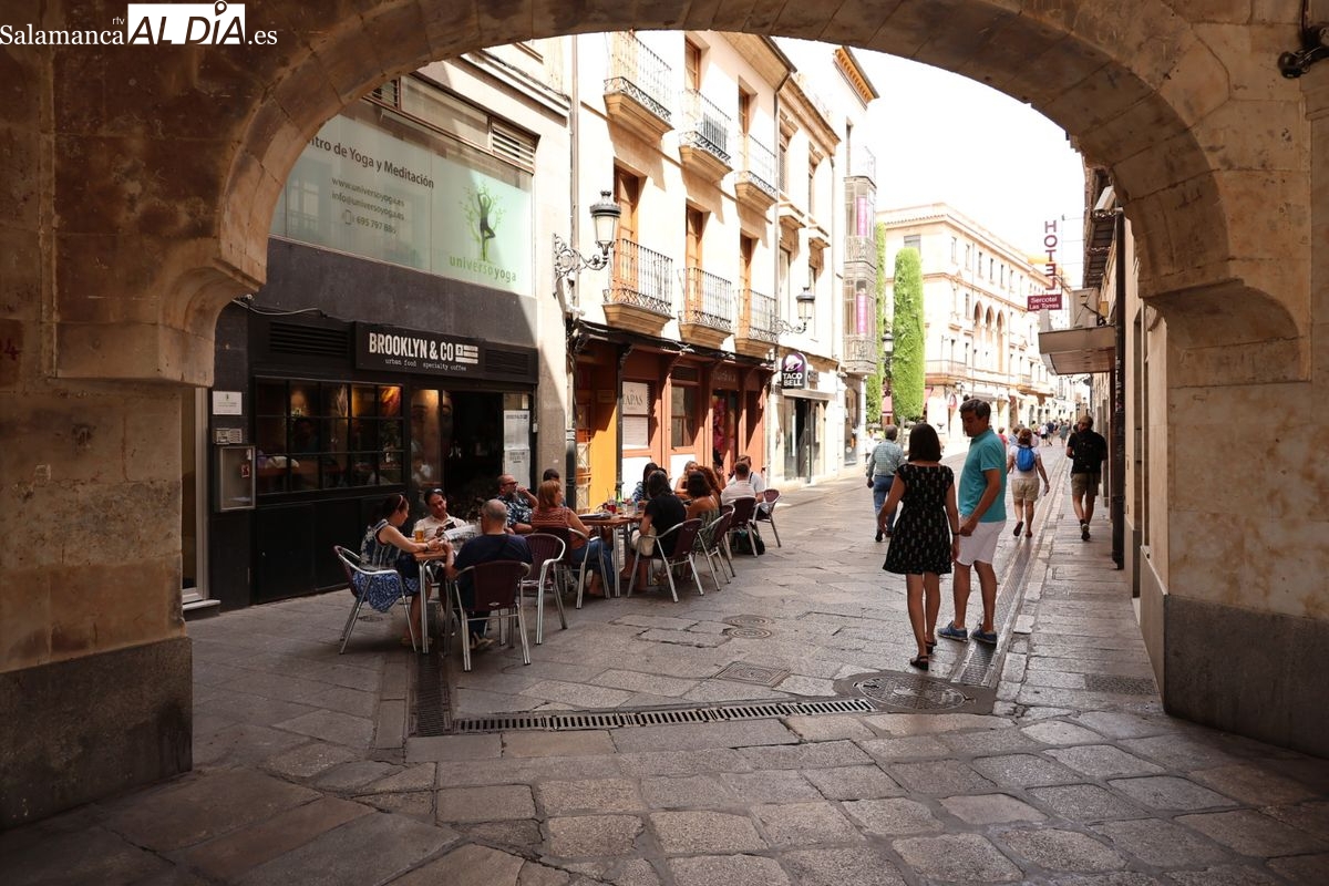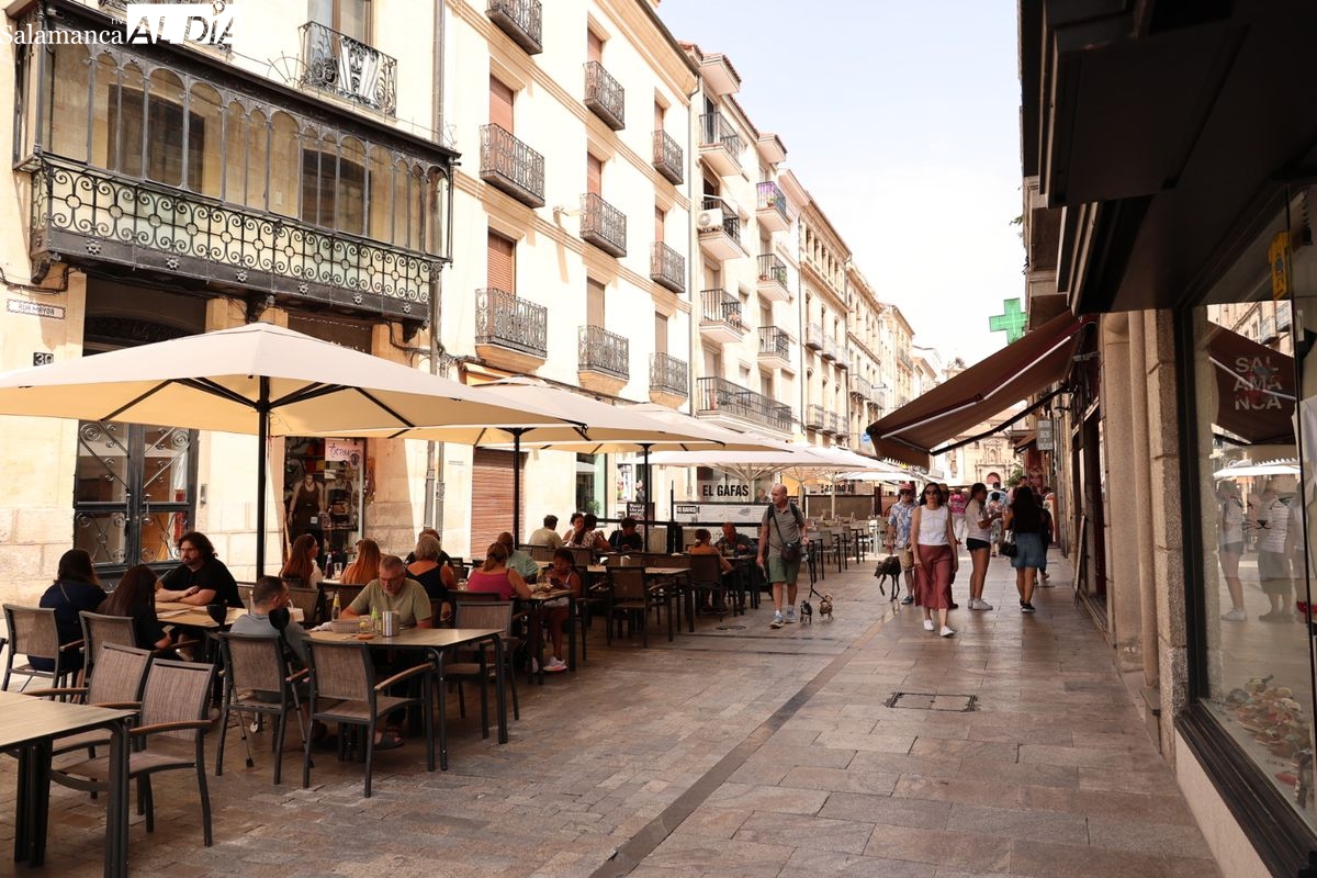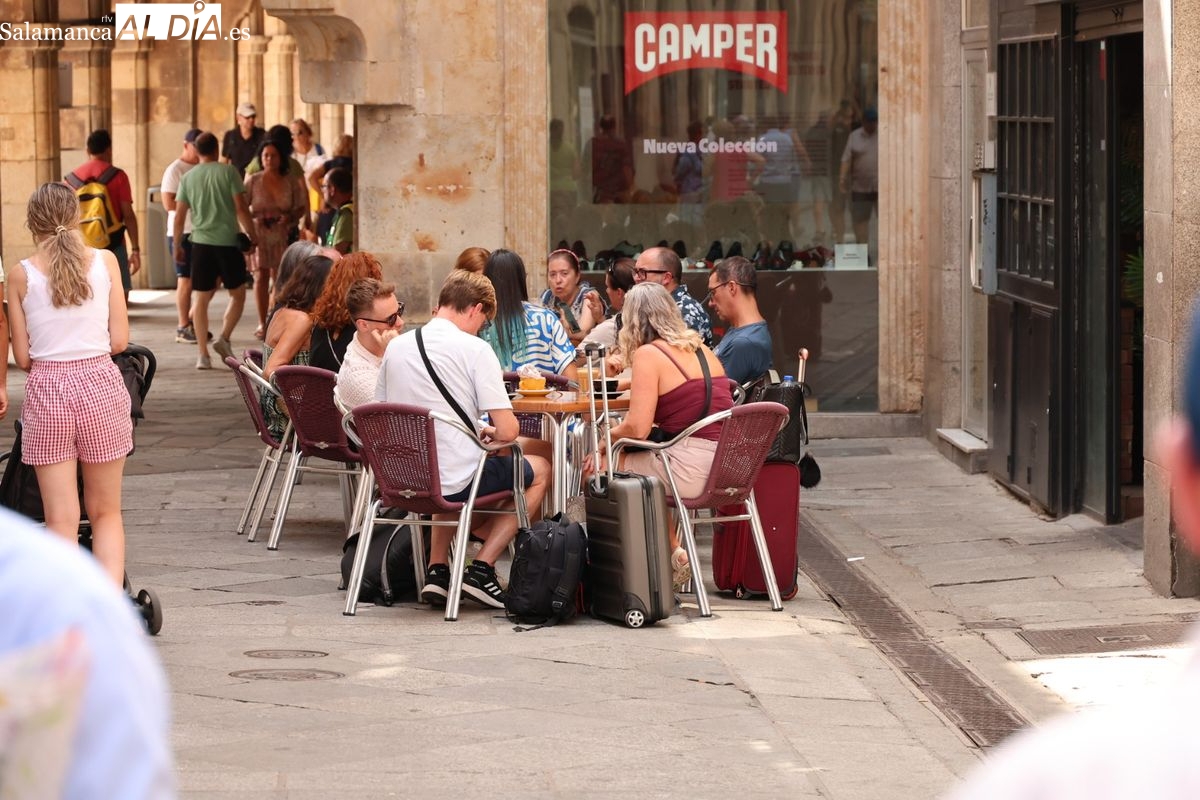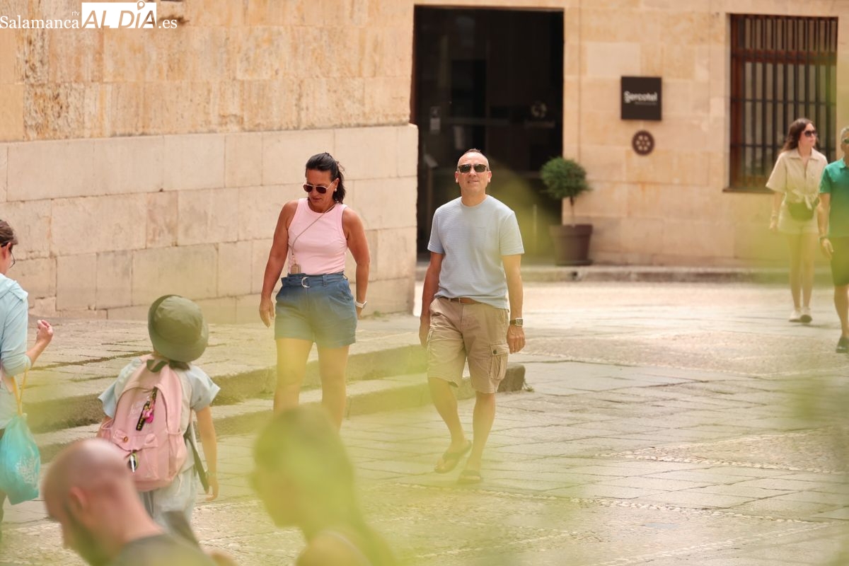 El ambiente en las calles más céntricas de la capital charra es notablemente más tranquilo de lo habitual este domingo, una estampa marcada por el calor sofocante y una afluencia de gente visiblemente reducida.