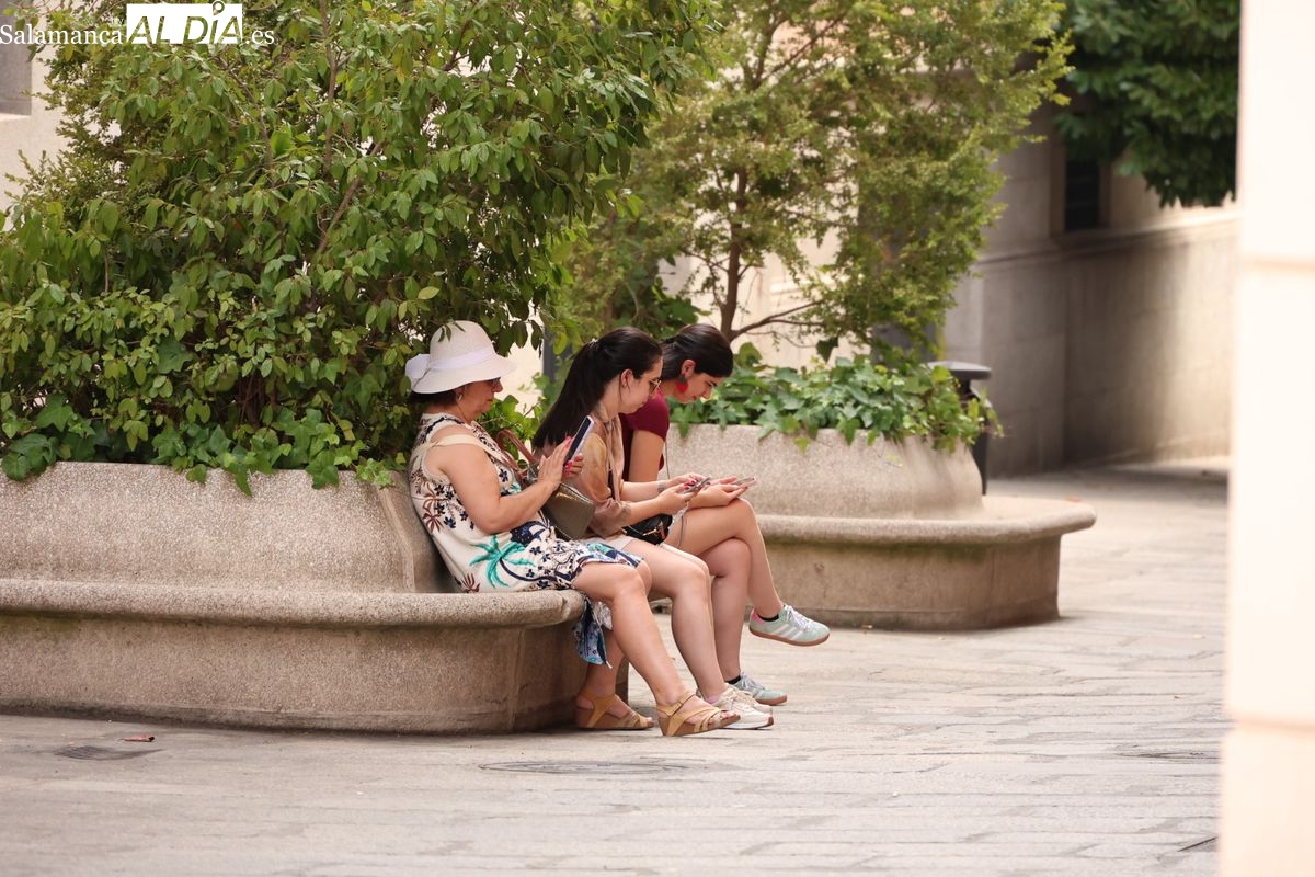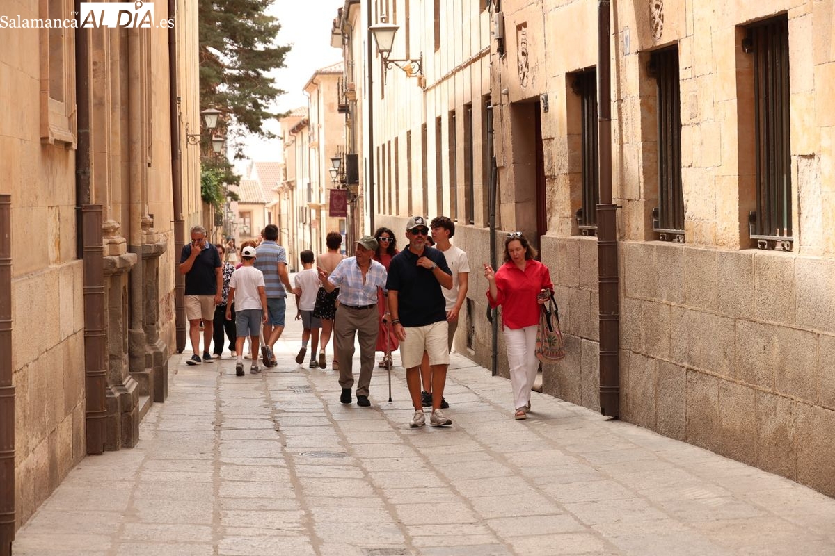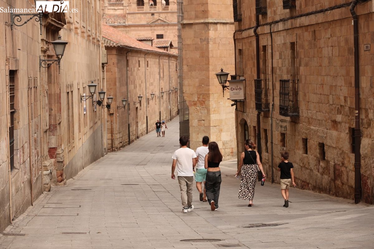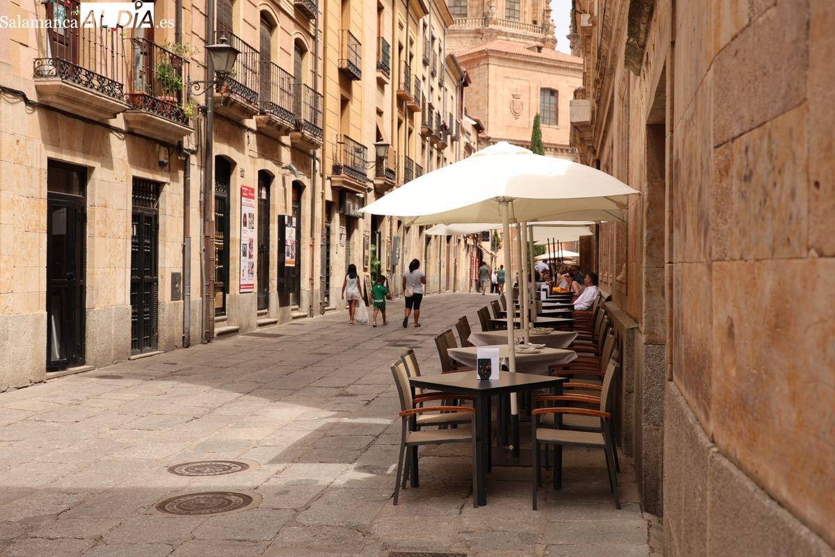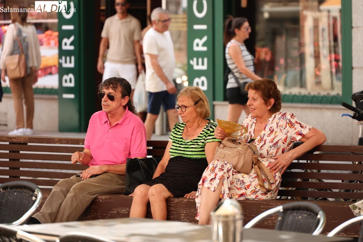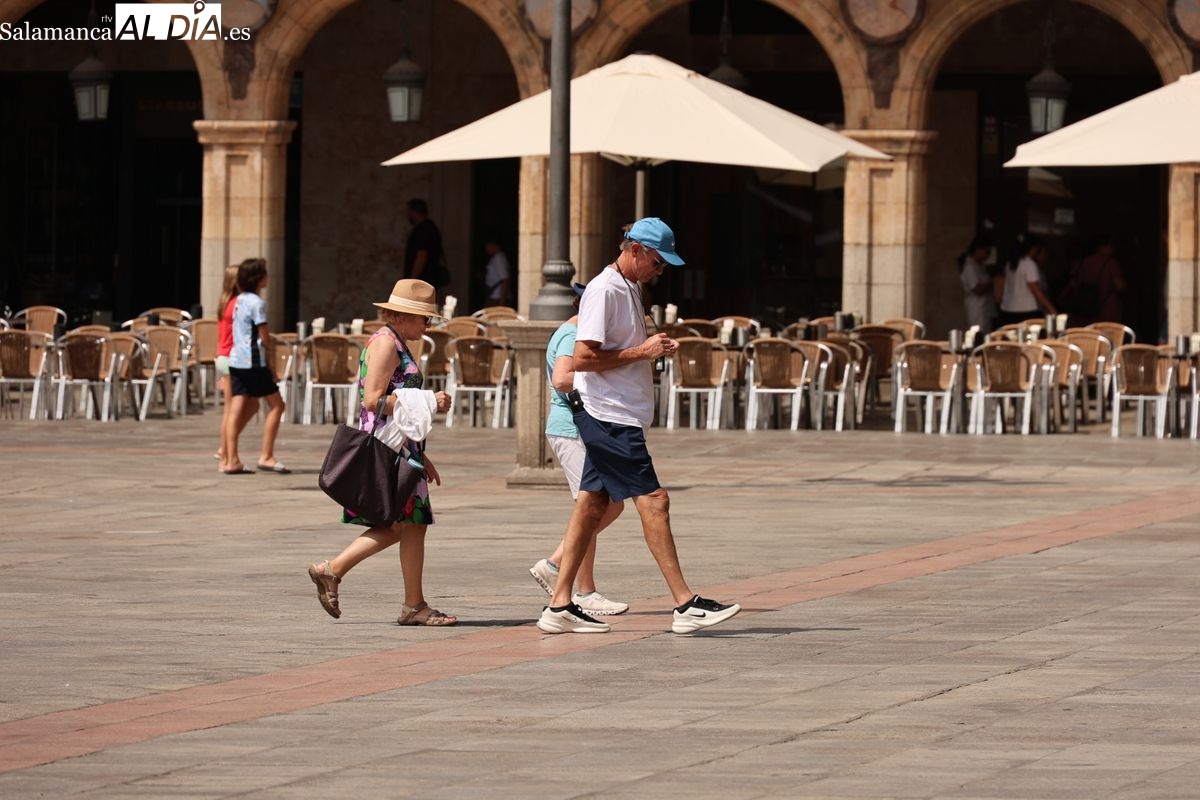 El ambiente en las calles más céntricas de la capital charra es notablemente más tranquilo de lo habitual este domingo, una estampa marcada por el calor sofocante y una afluencia de gente visiblemente reducida.