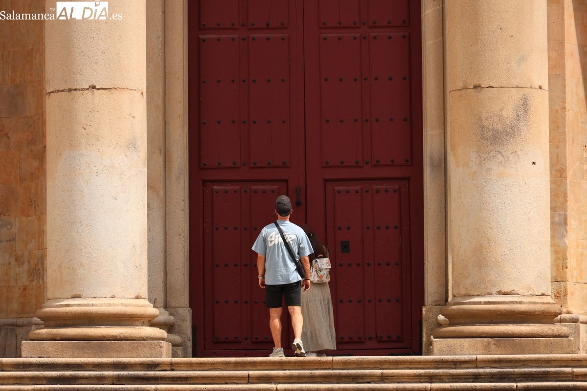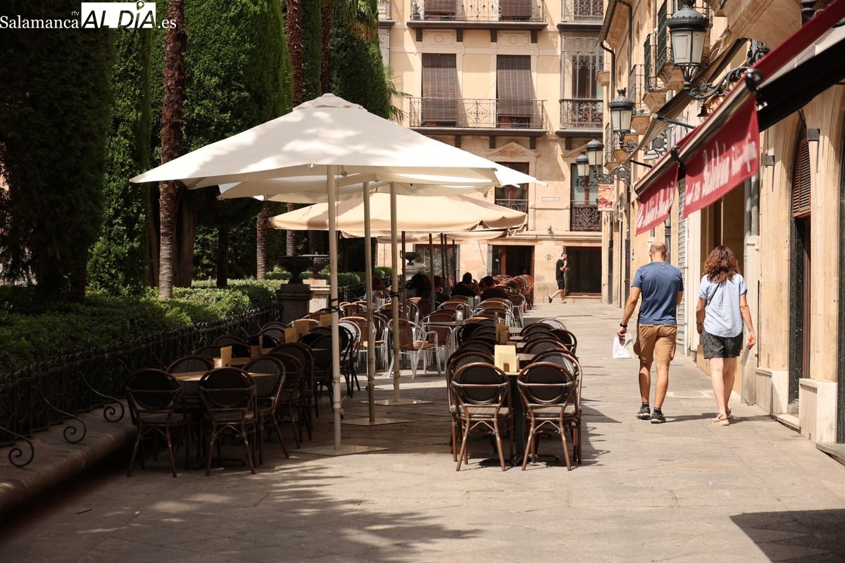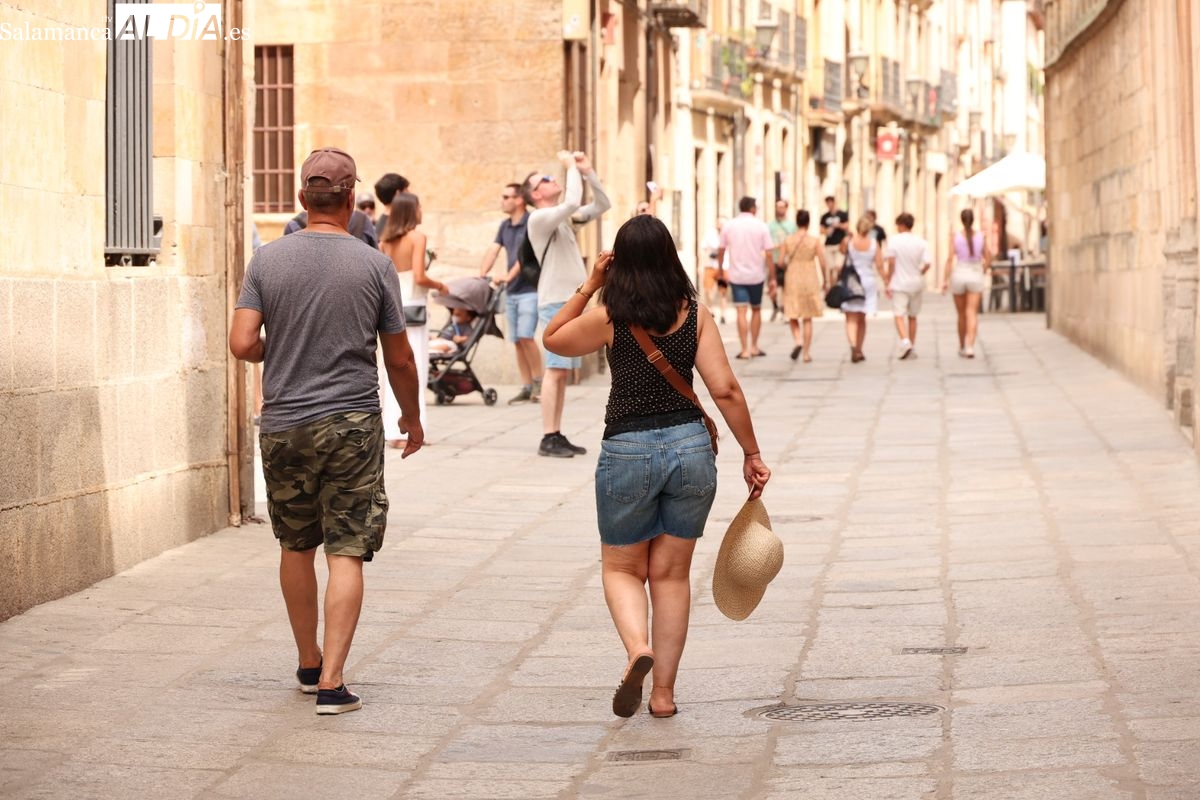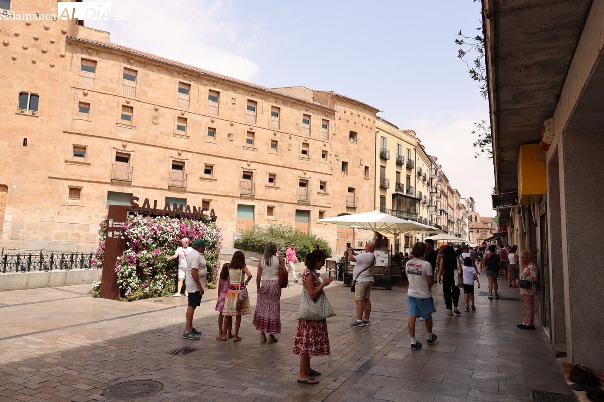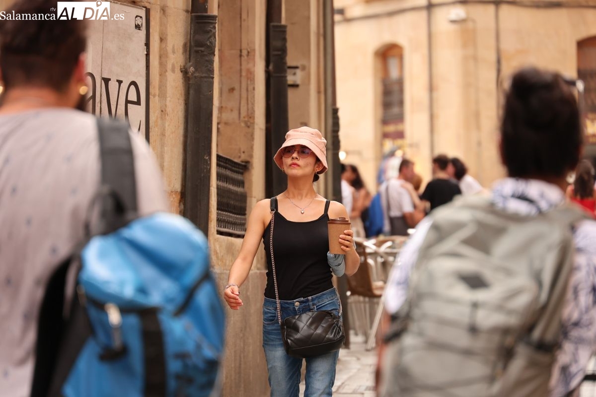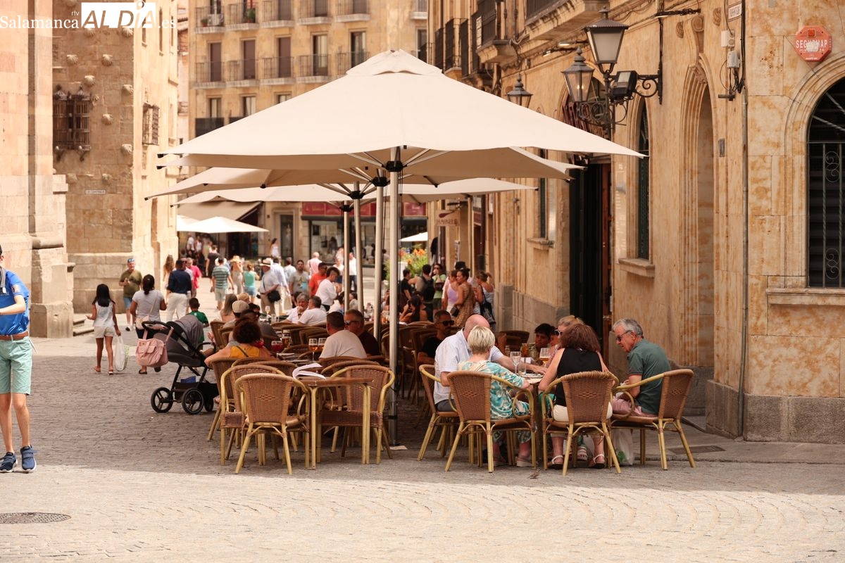 El ambiente en las calles más céntricas de la capital charra es notablemente más tranquilo de lo habitual este domingo, una estampa marcada por el calor sofocante y una afluencia de gente visiblemente reducida.