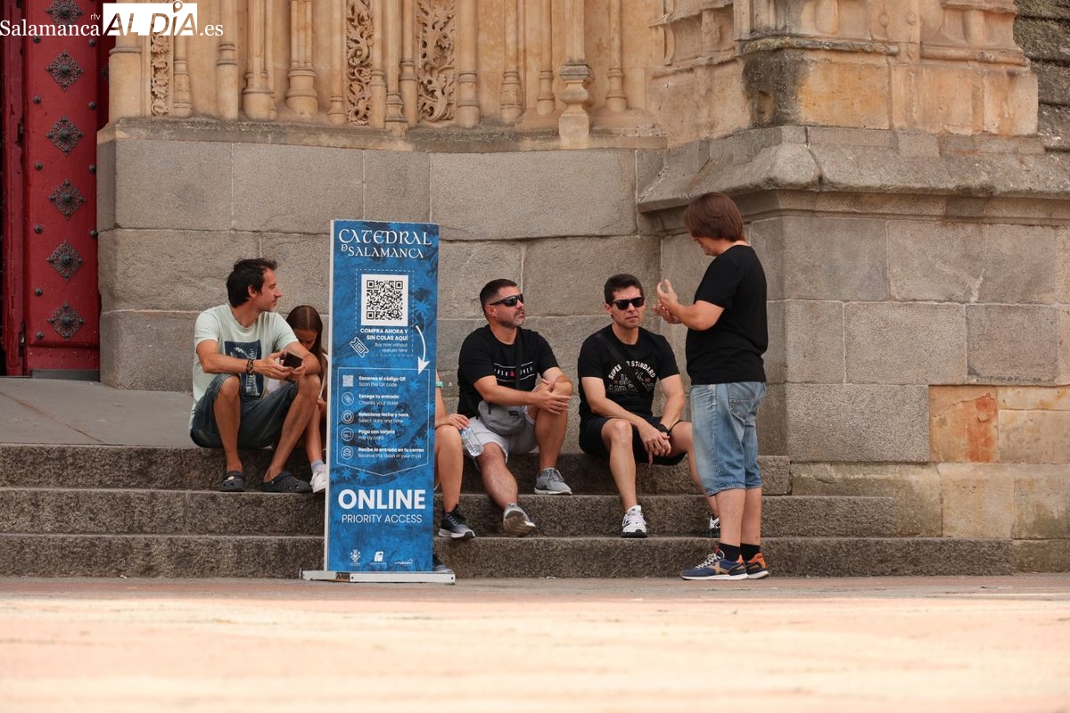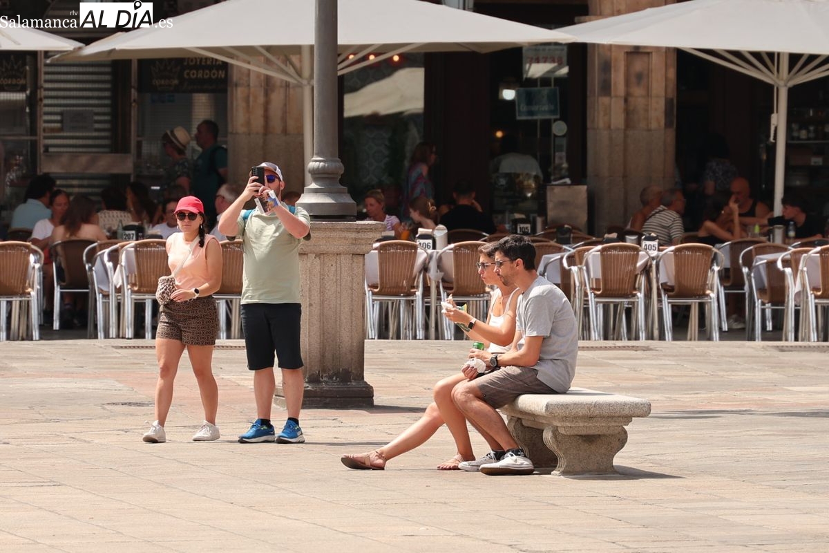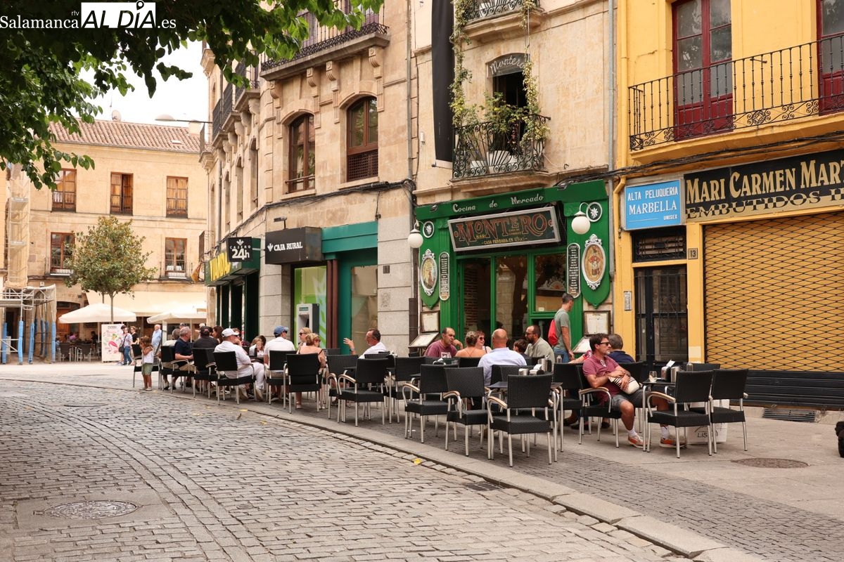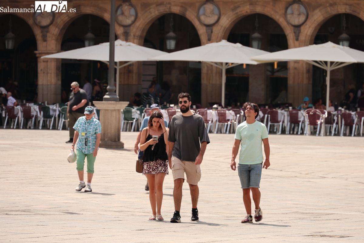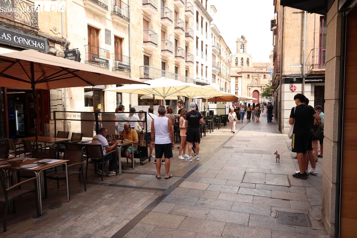 El ambiente en las calles más céntricas de la capital charra es notablemente más tranquilo de lo habitual este domingo, una estampa marcada por el calor sofocante y una afluencia de gente visiblemente reducida.