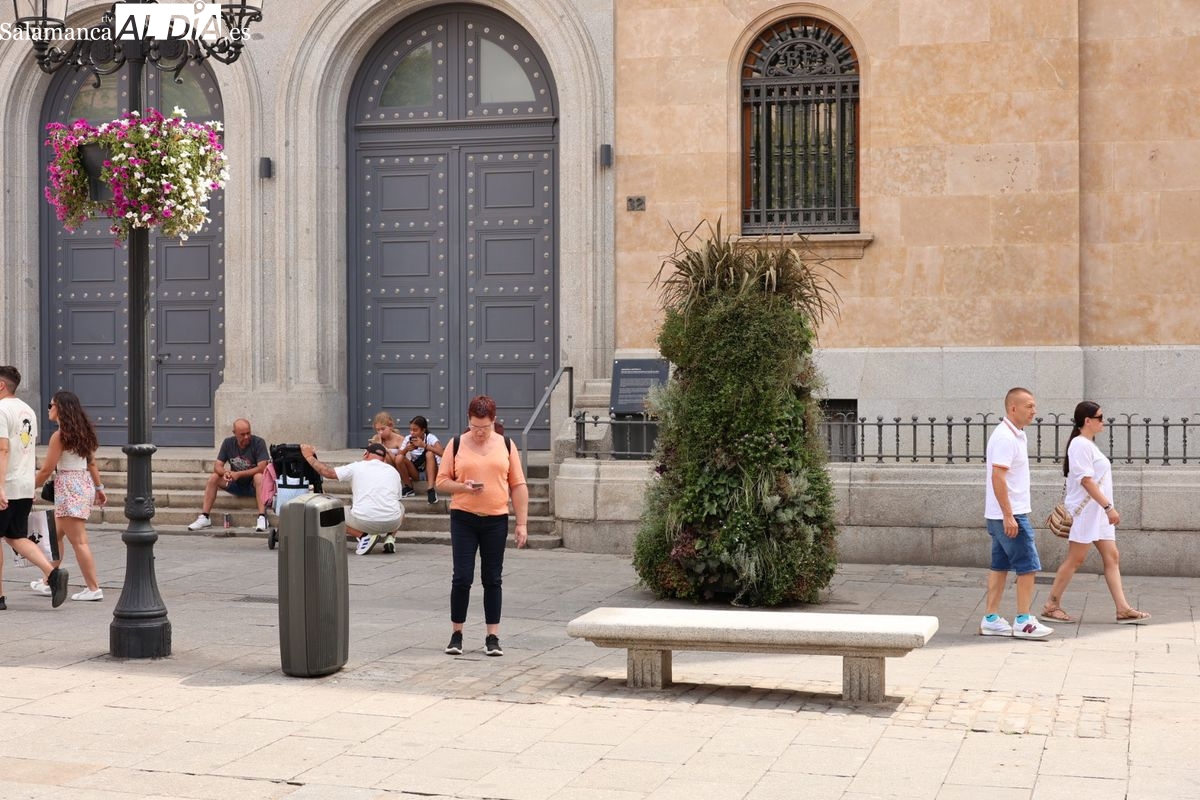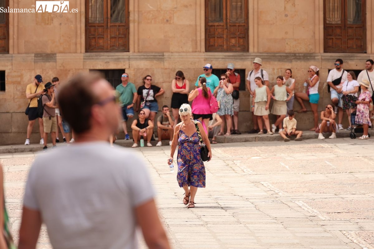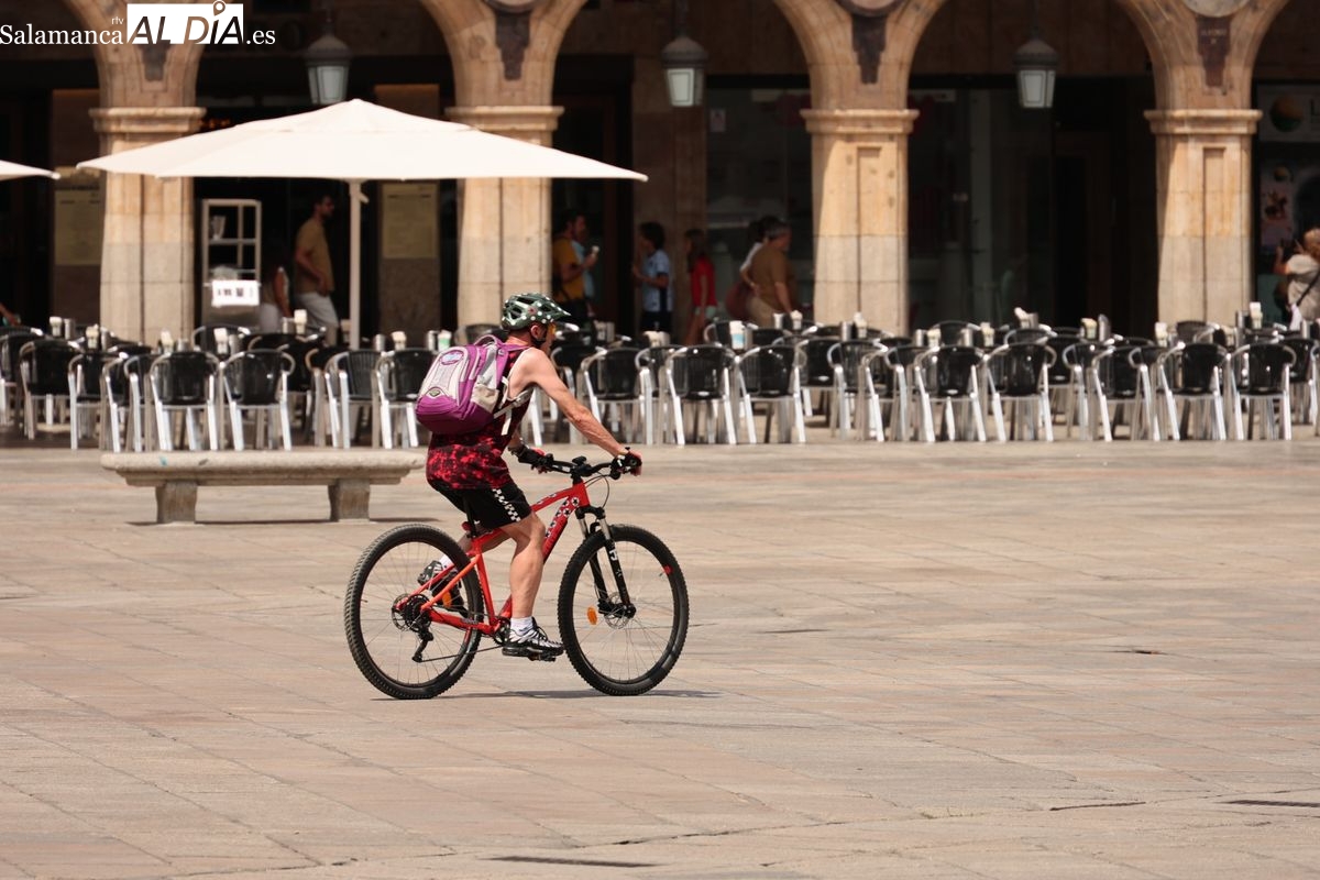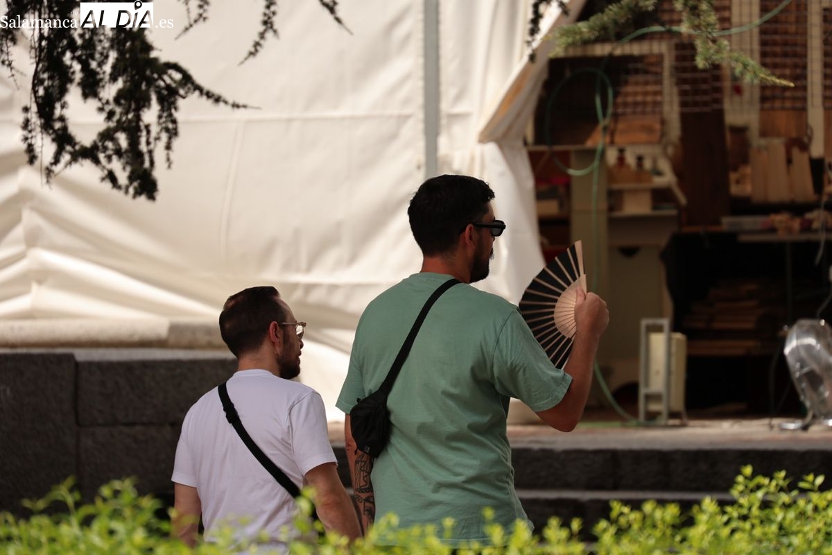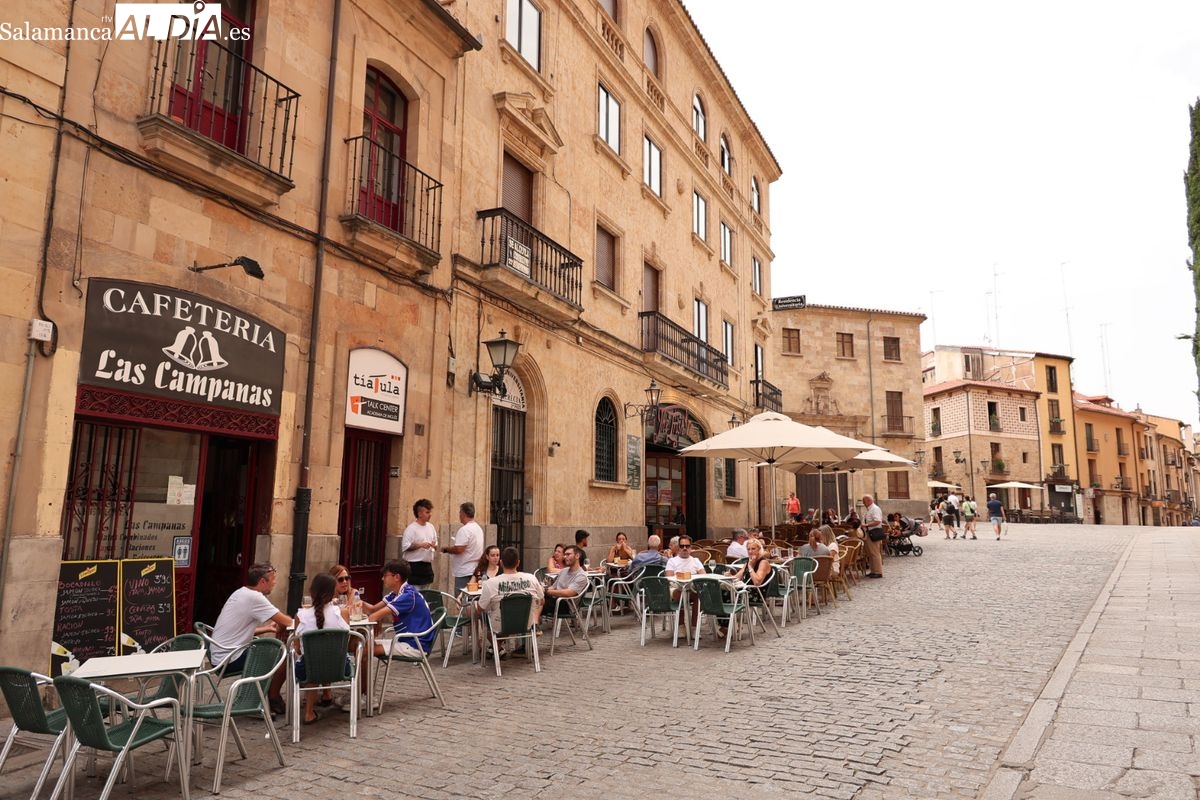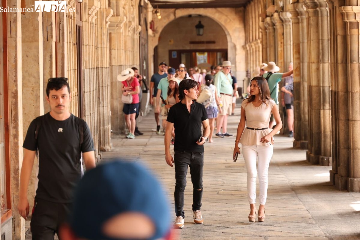El ambiente en las calles más céntricas de la capital charra es notablemente más tranquilo de lo habitual este domingo, una estampa marcada por el calor sofocante y una afluencia de gente visiblemente reducida.