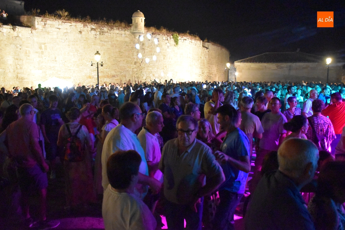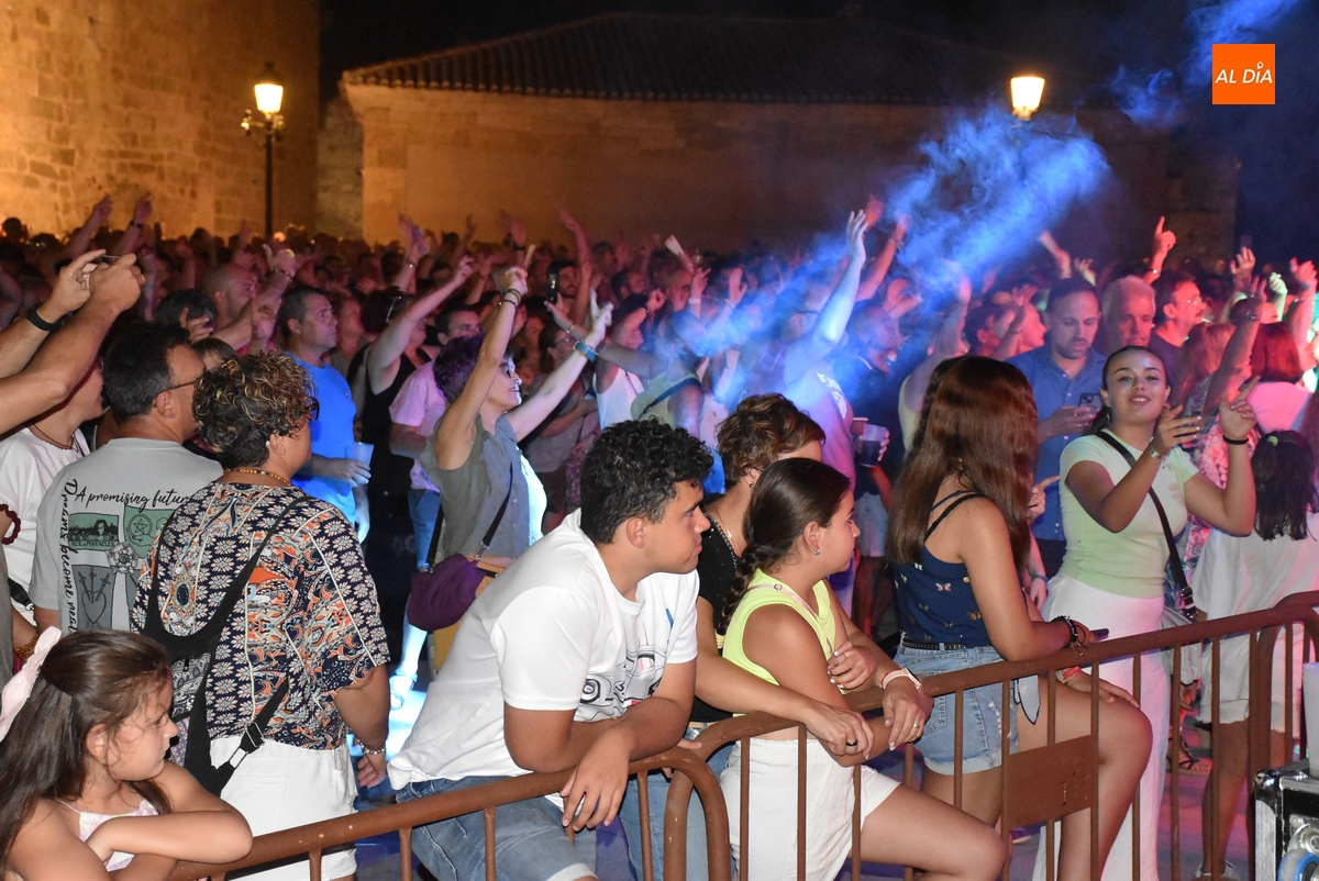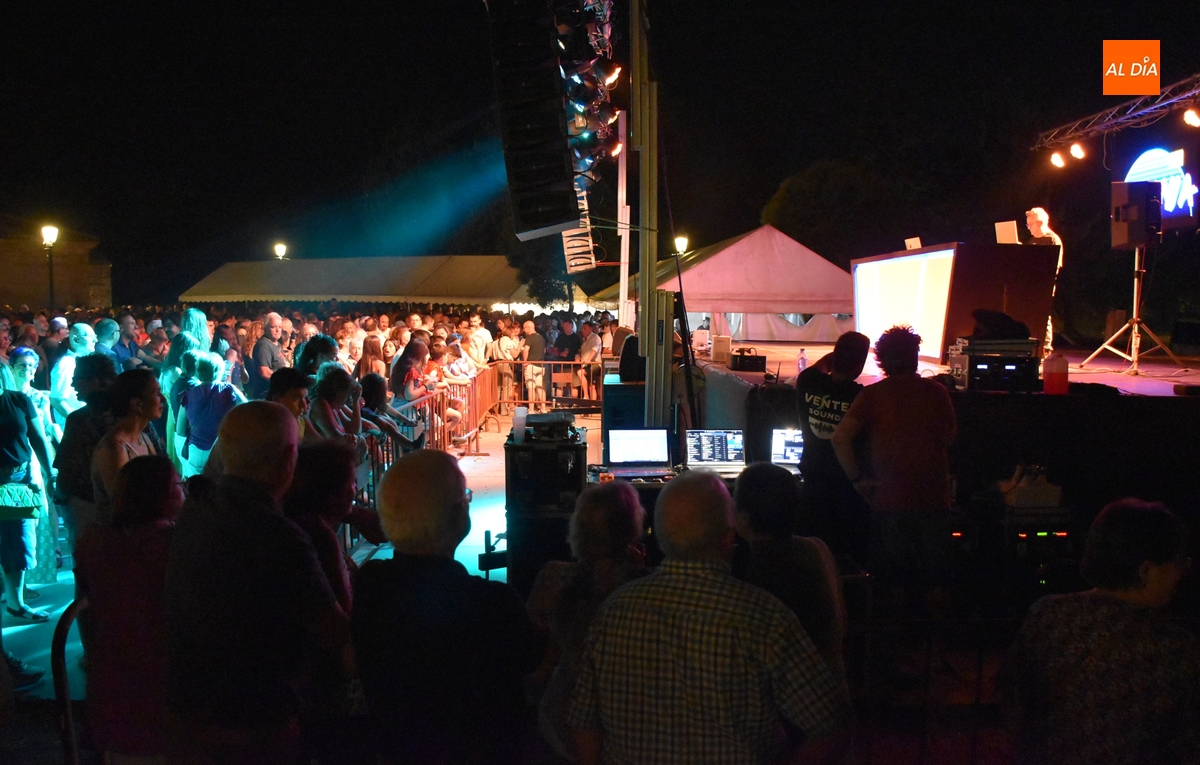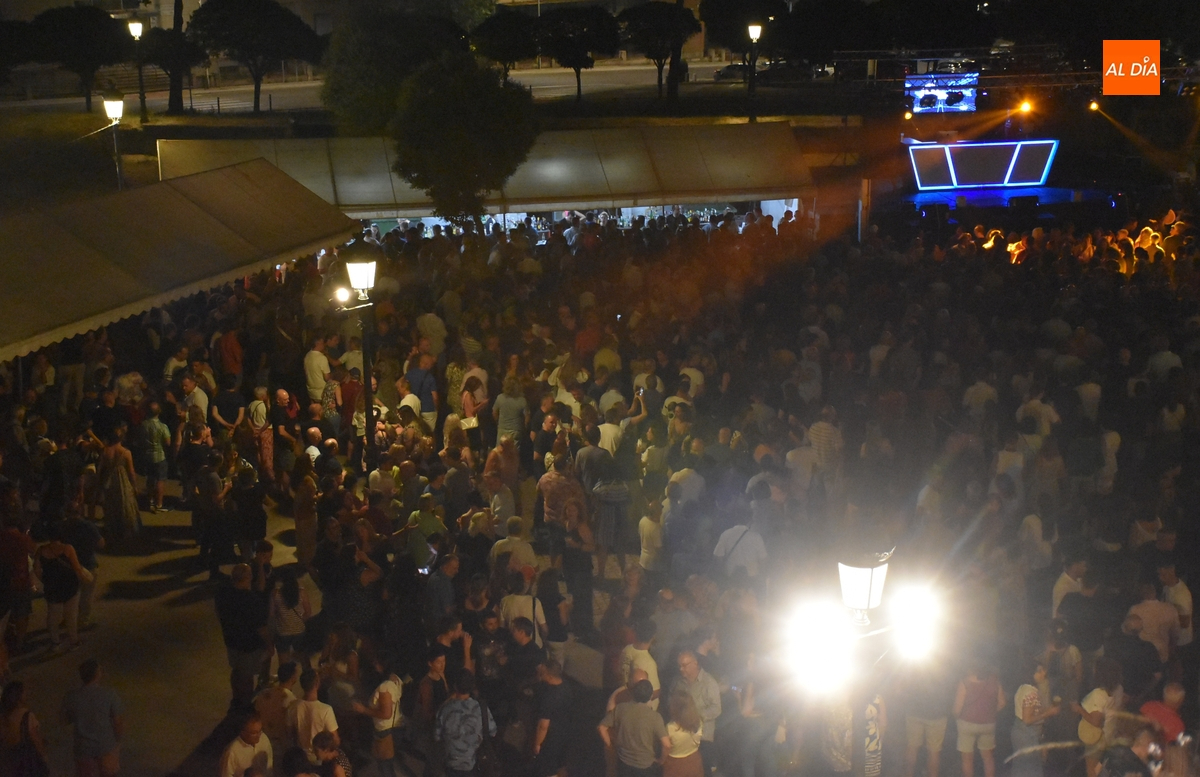 Ese público tuvo la opción de consumir en la doble barra instalada junto al propio escenario, aunque algún que otro grupo optó por ir a pedir a algún bar ‘cercano’. Durante toda la velada estuvo instalado junto al lienzo de la muralla un stand de CES Gatos. La velada finalizó sobre las 3.45 horas con la versión de La Campana Gorda de Pedro San Ricardo.