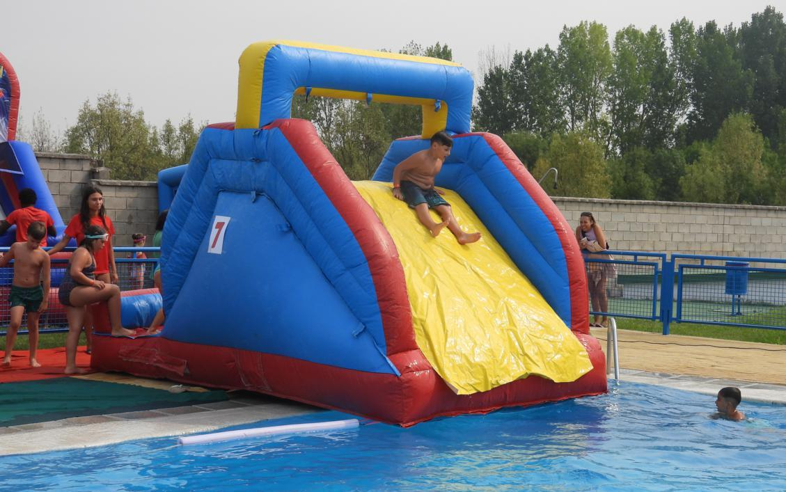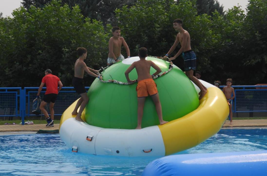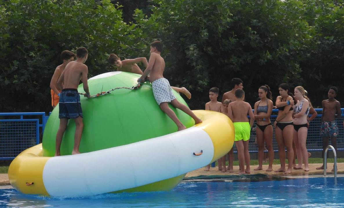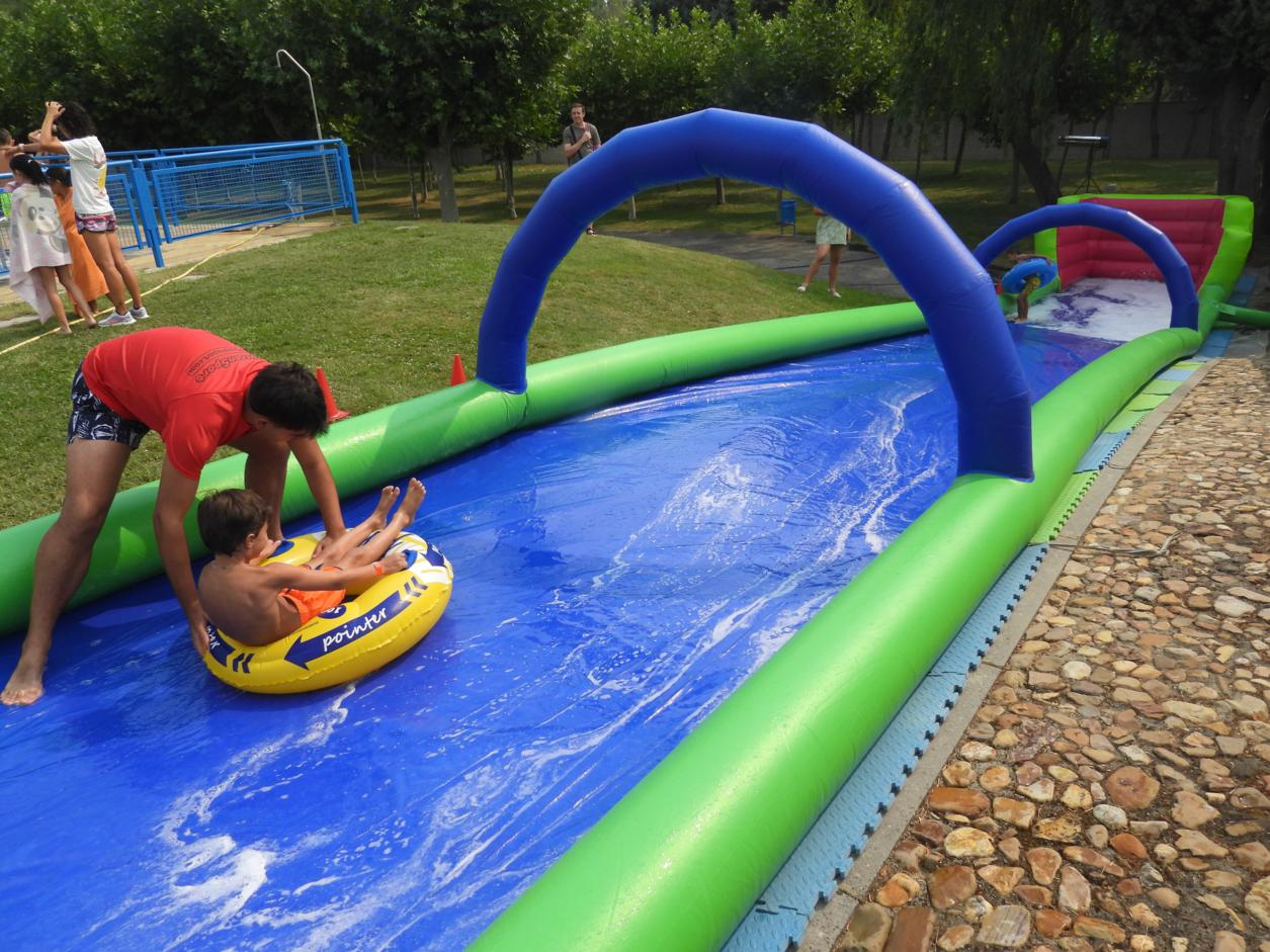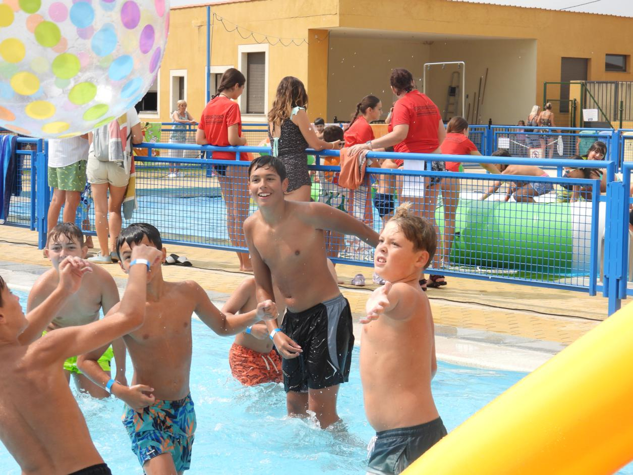 Los Juegos en las Piscinas contaron con elementos como Slider City, deslizadora, hinchable Saturno, Spiderman, toboganes acuáticos, gran tobogán piscina, balancines y pasarelas acuáticos, cama elástica o barcas. Para rematar, hubo una fiesta de la espuma. Tras la habitual gran foto de grupo, cada uno de los participantes recibió una bolsa de chucherías.