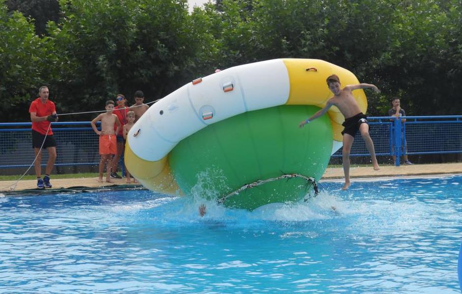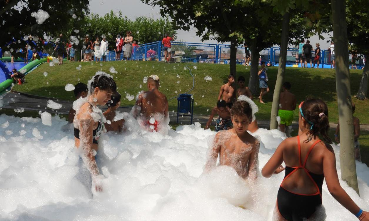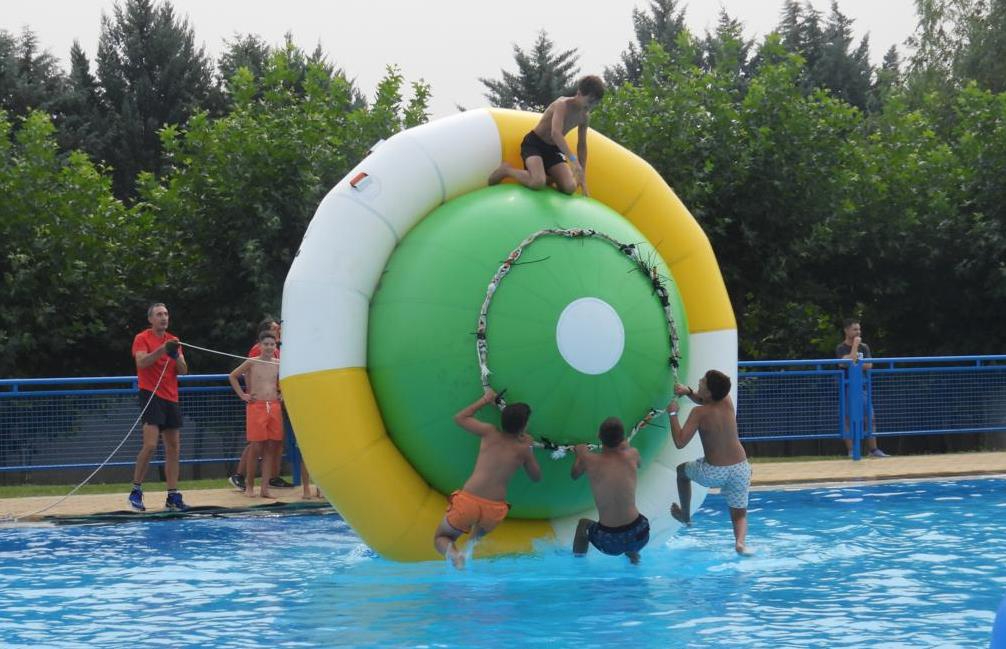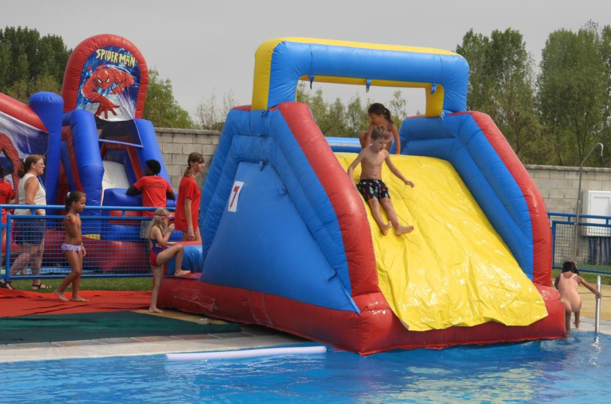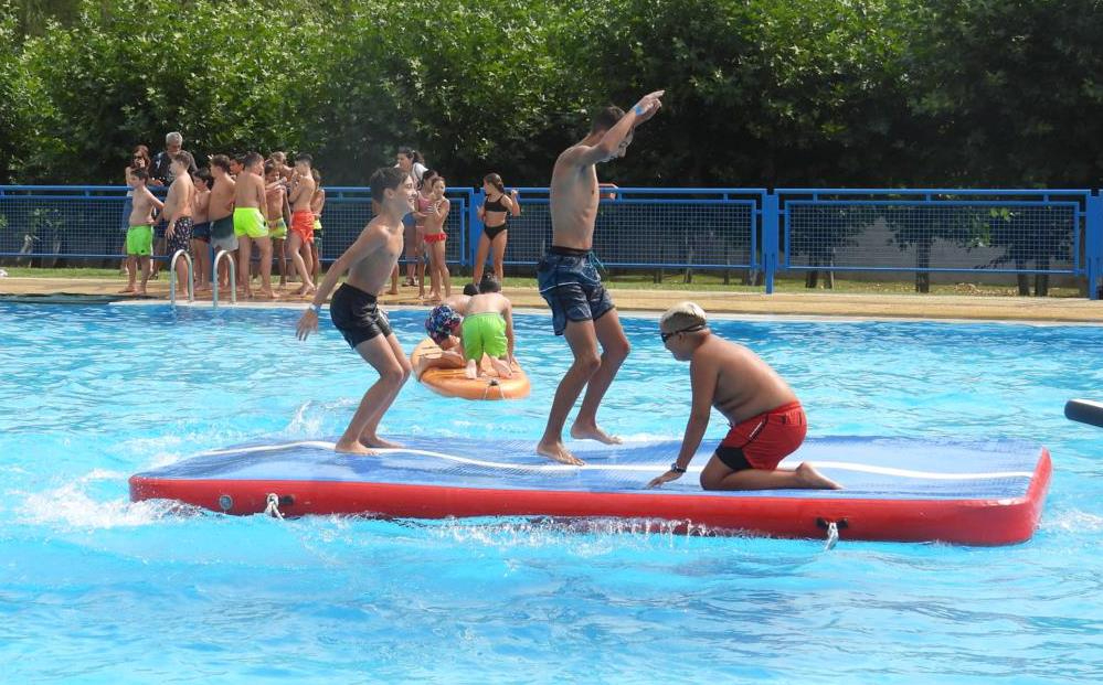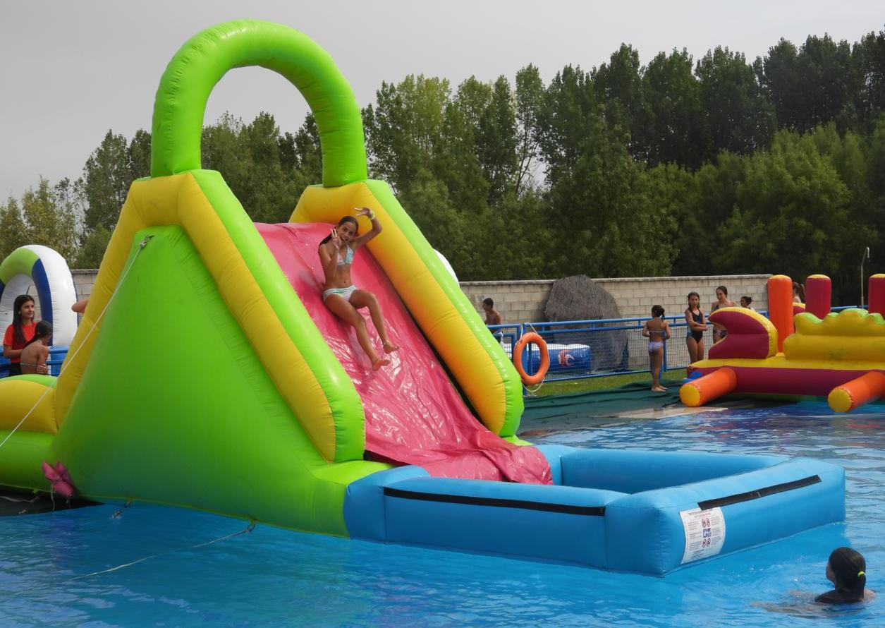 Los Juegos en las Piscinas contaron con elementos como Slider City, deslizadora, hinchable Saturno, Spiderman, toboganes acuáticos, gran tobogán piscina, balancines y pasarelas acuáticos, cama elástica o barcas. Para rematar, hubo una fiesta de la espuma. Tras la habitual gran foto de grupo, cada uno de los participantes recibió una bolsa de chucherías.