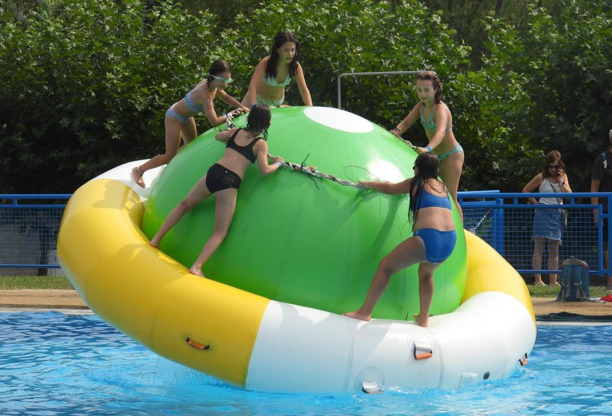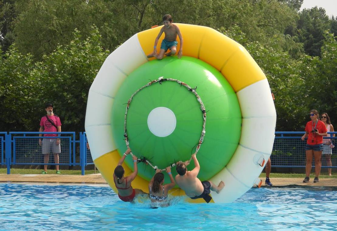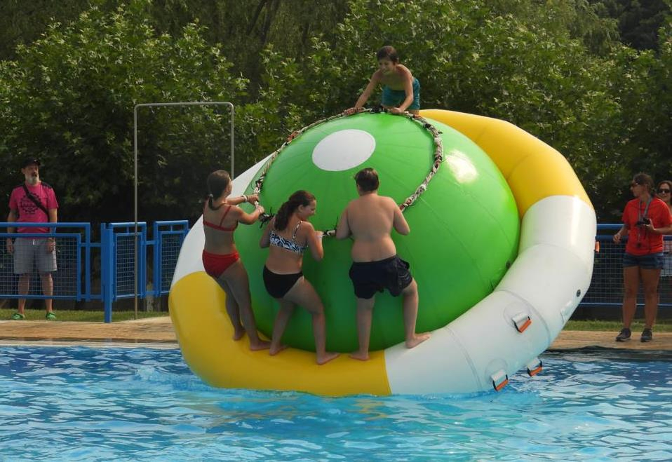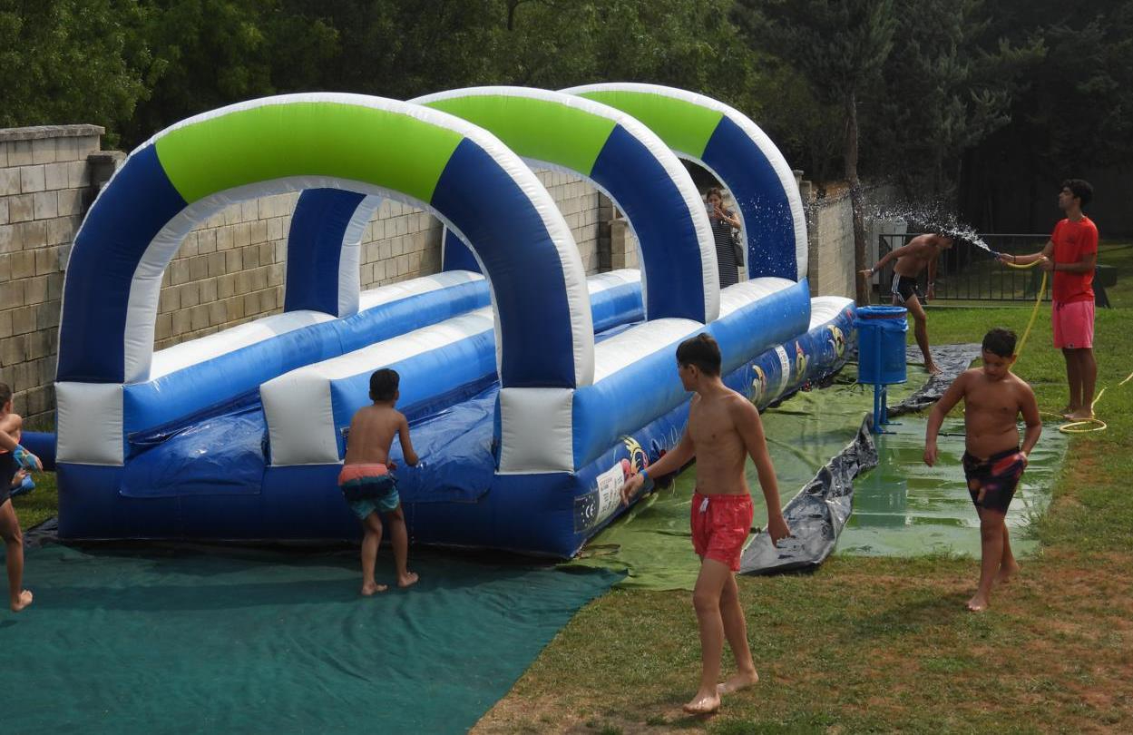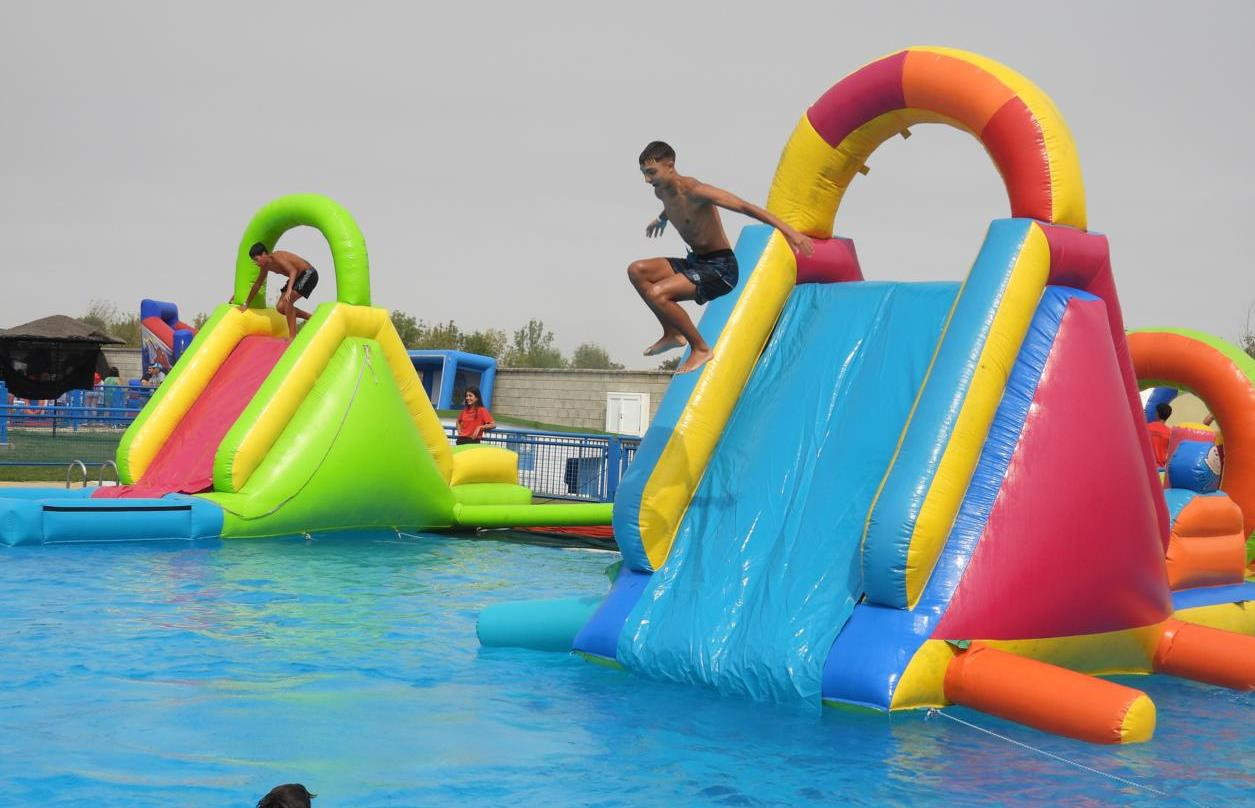 Los Juegos en las Piscinas contaron con elementos como Slider City, deslizadora, hinchable Saturno, Spiderman, toboganes acuáticos, gran tobogán piscina, balancines y pasarelas acuáticos, cama elástica o barcas. Para rematar, hubo una fiesta de la espuma. Tras la habitual gran foto de grupo, cada uno de los participantes recibió una bolsa de chucherías.