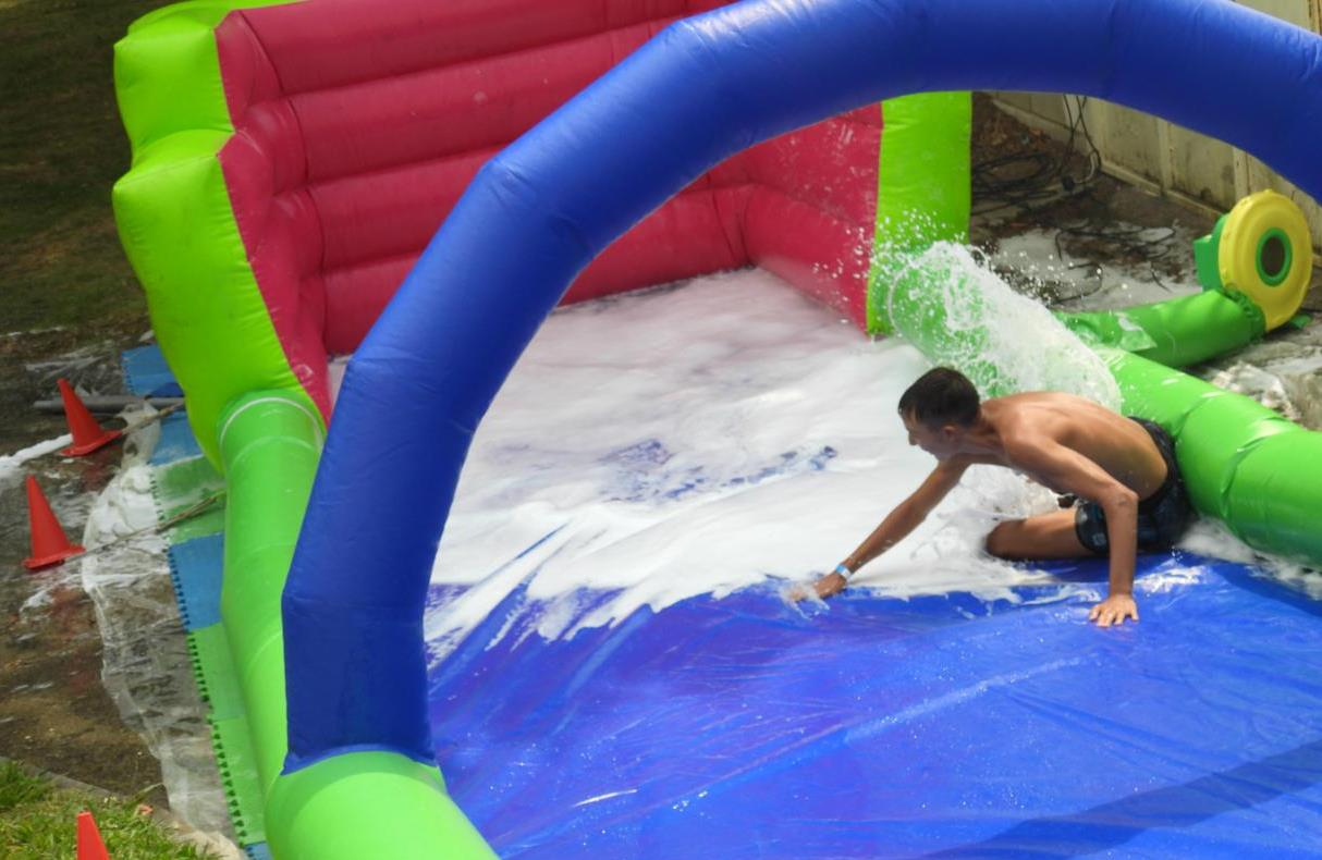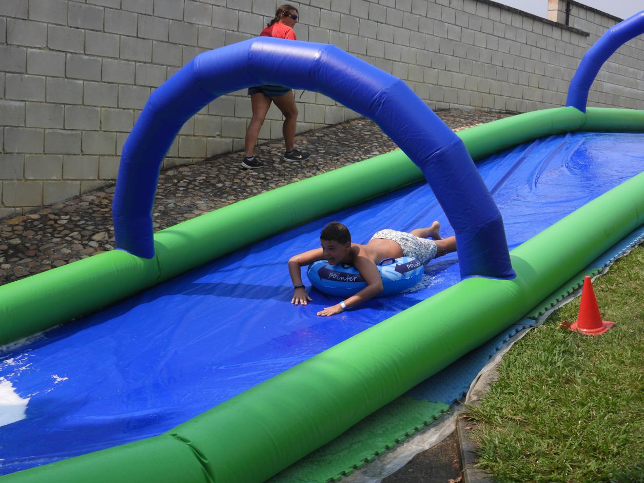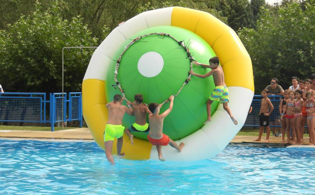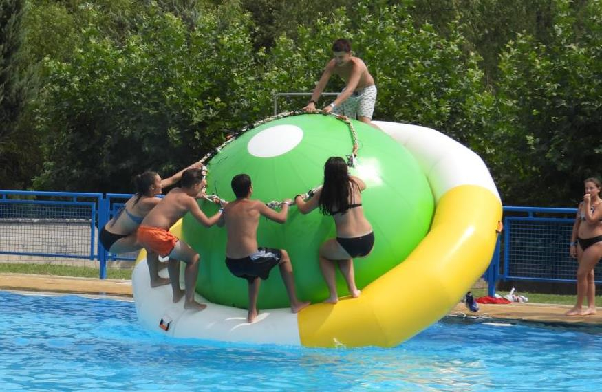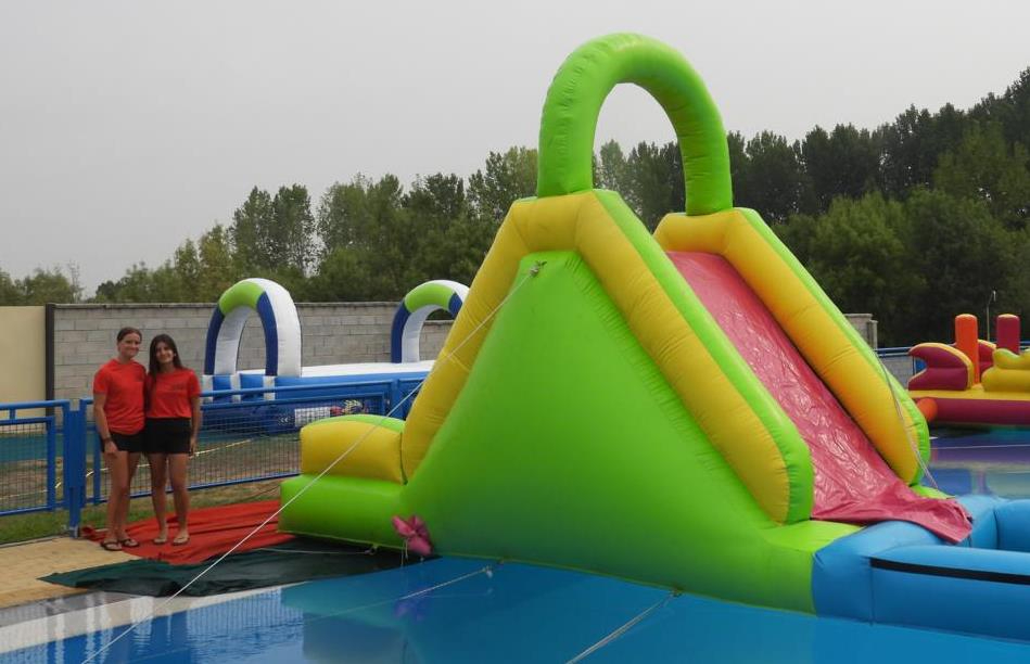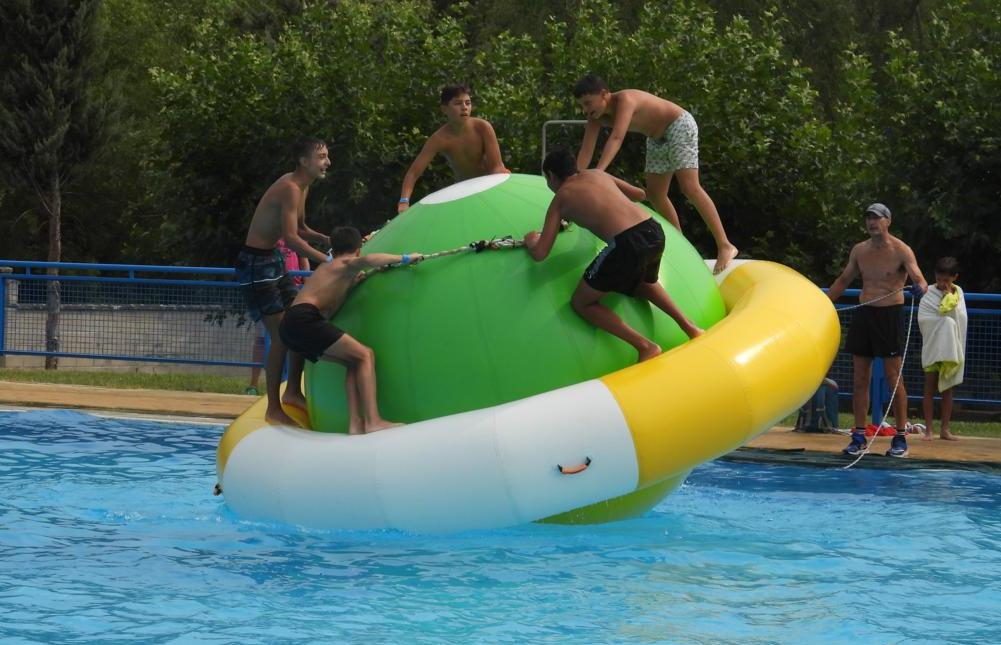 Los Juegos en las Piscinas contaron con elementos como Slider City, deslizadora, hinchable Saturno, Spiderman, toboganes acuáticos, gran tobogán piscina, balancines y pasarelas acuáticos, cama elástica o barcas. Para rematar, hubo una fiesta de la espuma. Tras la habitual gran foto de grupo, cada uno de los participantes recibió una bolsa de chucherías.