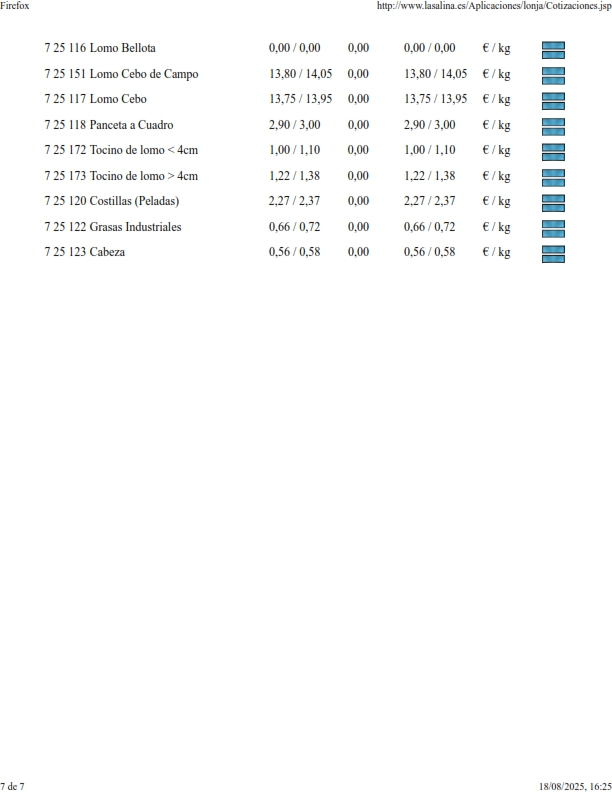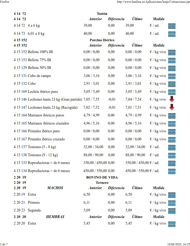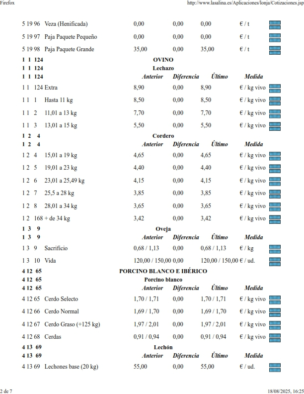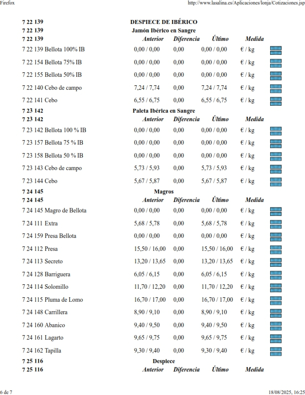 En la Mesa de Ovino no hubo variaciones respecto a los precios de hace una semana, tampoco en la Mesa de Porcino blanco. Y en la de Ibérico solo se movieron los lechones con una bajada de -0,01 €/kg. Tampoco hubo variaciones en la Mesa de Despiece.