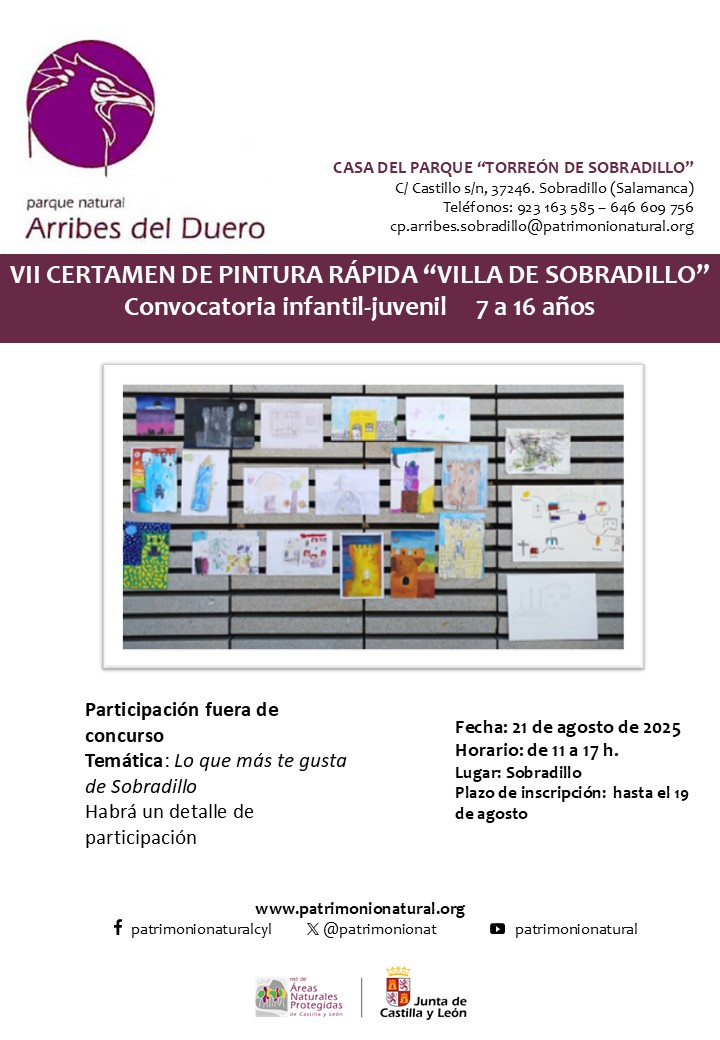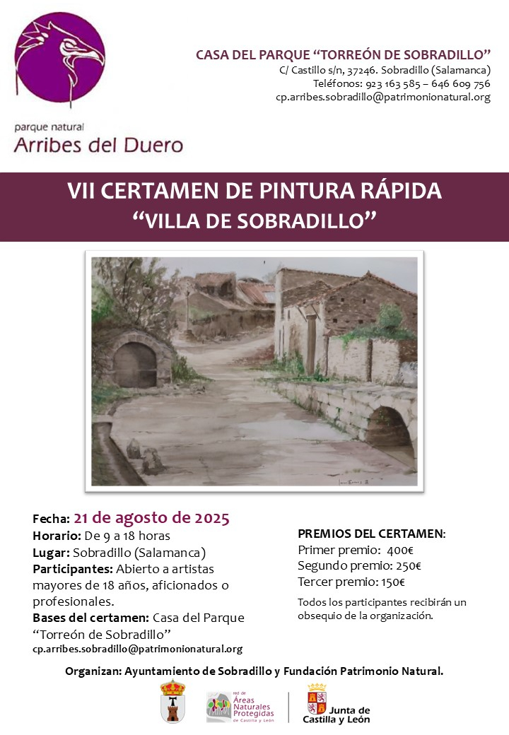 Organizado por el Ayuntamiento de Sobradillo y la Fundación Patrimonio Natural, a través de la Casa del Parque "Torreón de Sobradillo", el concurso busca promover la afición por la pintura, difundir la obra de los artistas y poner en valor el entorno natural y patrimonial de esta localidad enclavada en el Parque Natural Arribes del Duero.