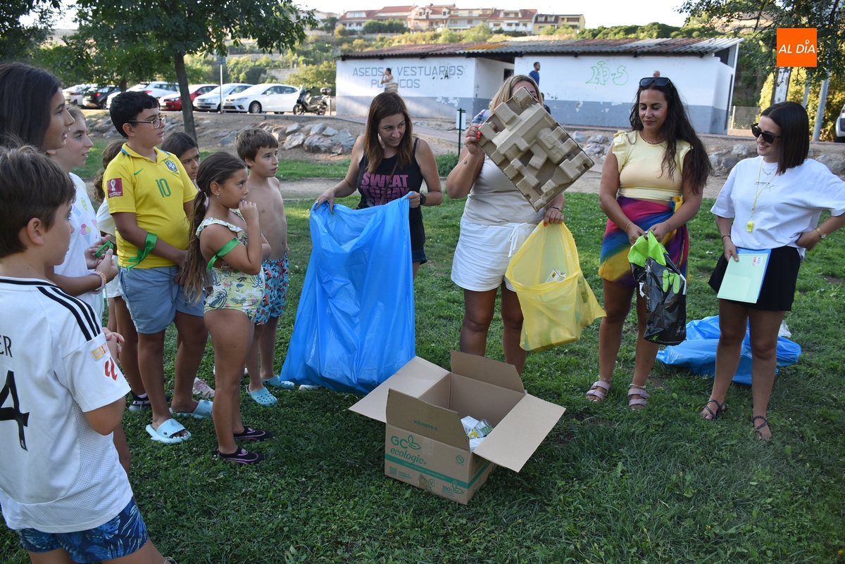 Posteriormente compitieron para separar de forma correcta residuos que van al contenedor azul de otros que van al contenedor amarillo (hubo algunos errores, por ejemplo con los tetrabricks de leche), antes de recibir un mapa que les llevó hasta la pista de petanca de la Alameda, donde se les propuso que recontasen el número de bancos o puentes del lugar.