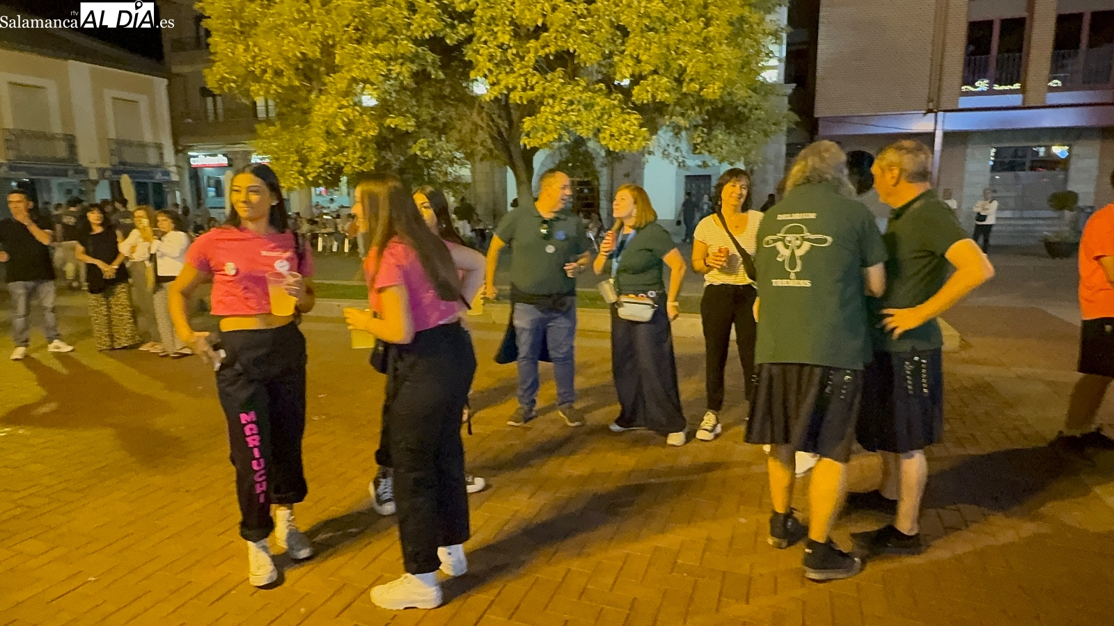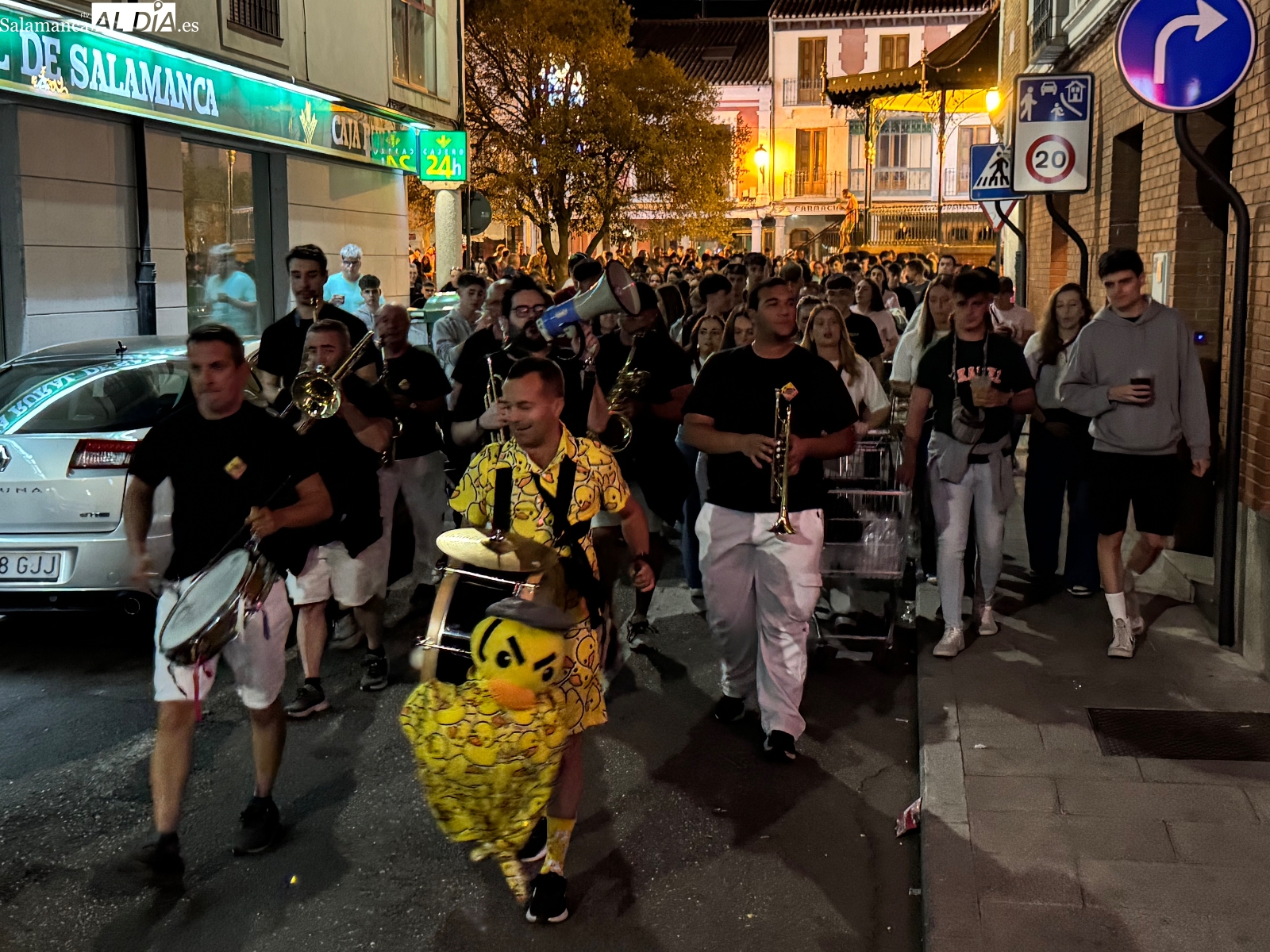 Multitud de peñistas se han dado cita en la Plaza de España para participar en el animado "Corre peñas" a cargo de la Charanga peñarandina Dale Kaña 2.0. Un festivo recorrido que arrancaba desde el ágora, con cientos de personas acompañando a la formación, iniciando así un desfile que ha recorrido multitud de calles de la ciudad hasta llegar a las carpas, donde se vive el fin de fiesta.
