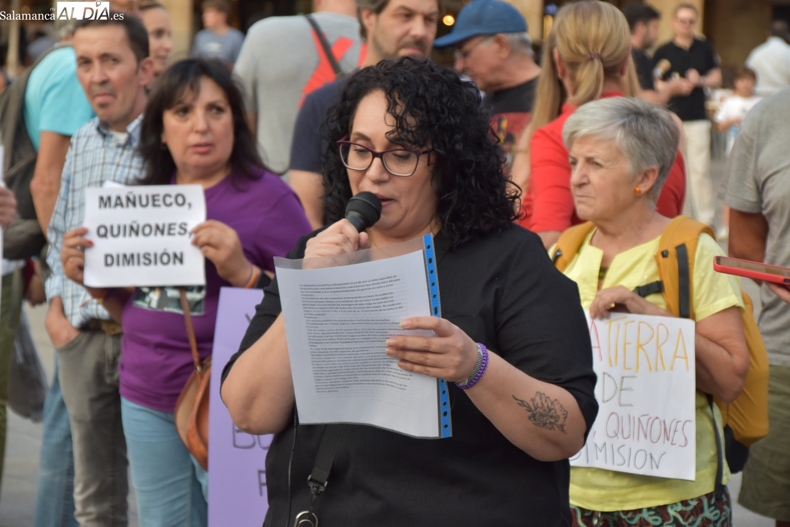 La portavoz de Podemos en Salamanca, Aurora Zarco, ha sido la encargada de verbalizar el sentir de los manifestantes, articulando una petición clara y contundente. Para la formación morada, la solución a la crisis no pasa por meros ajustes, sino por un cambio radical en la cúpula directiva. “El objetivo principal es pedir la dimisión de Quiñones y de Mañueco como principales responsables de la catástrofe que hemos vivido estos días”, ha declarado Zarco, apuntando directamente al consejero de Medio Ambiente, Vivienda y Ordenación del Territorio, Juan Carlos Suárez-Quiñones, y al presidente de la Junta, Alfonso Fernández Mañueco.