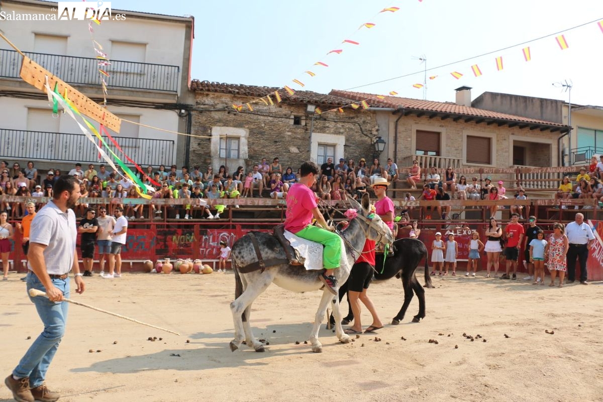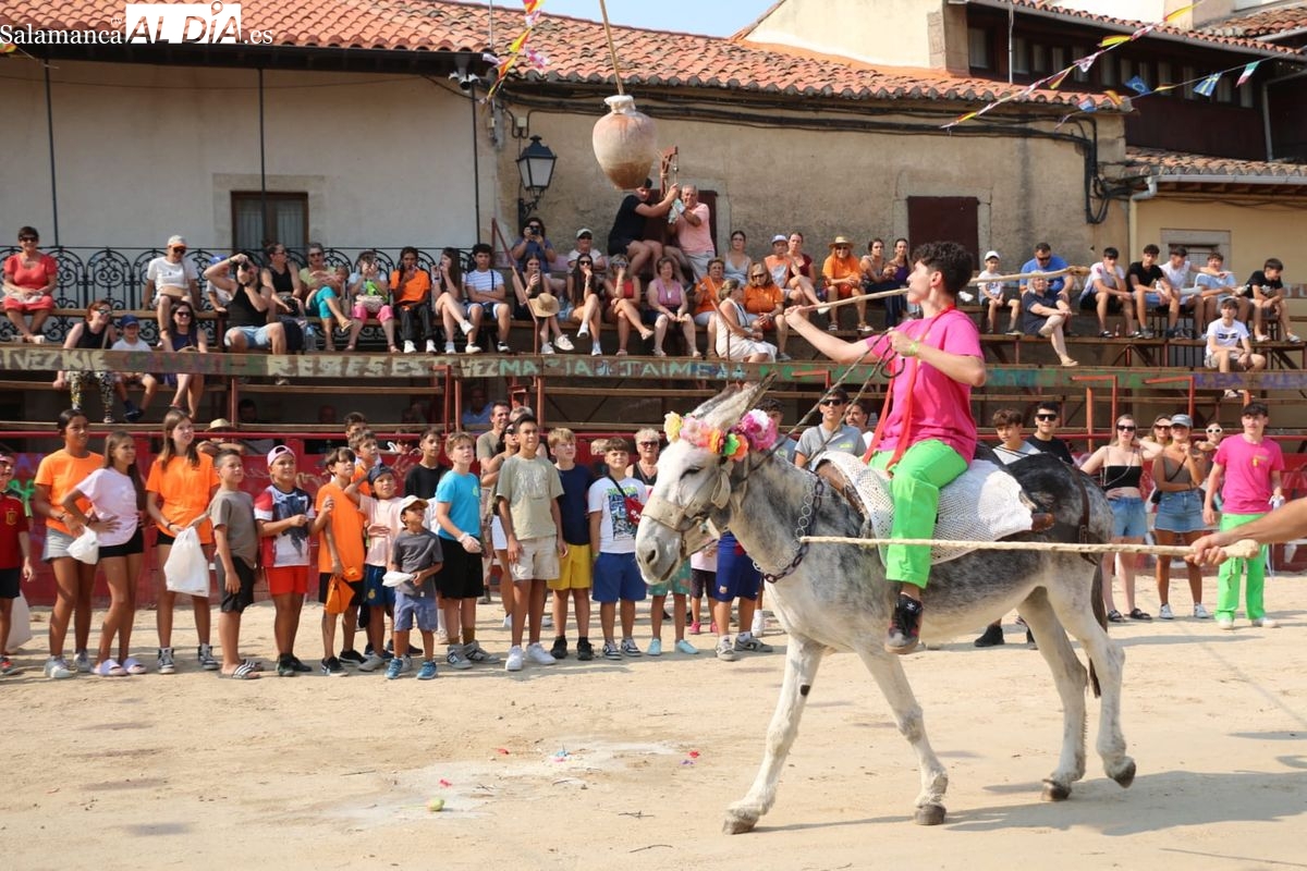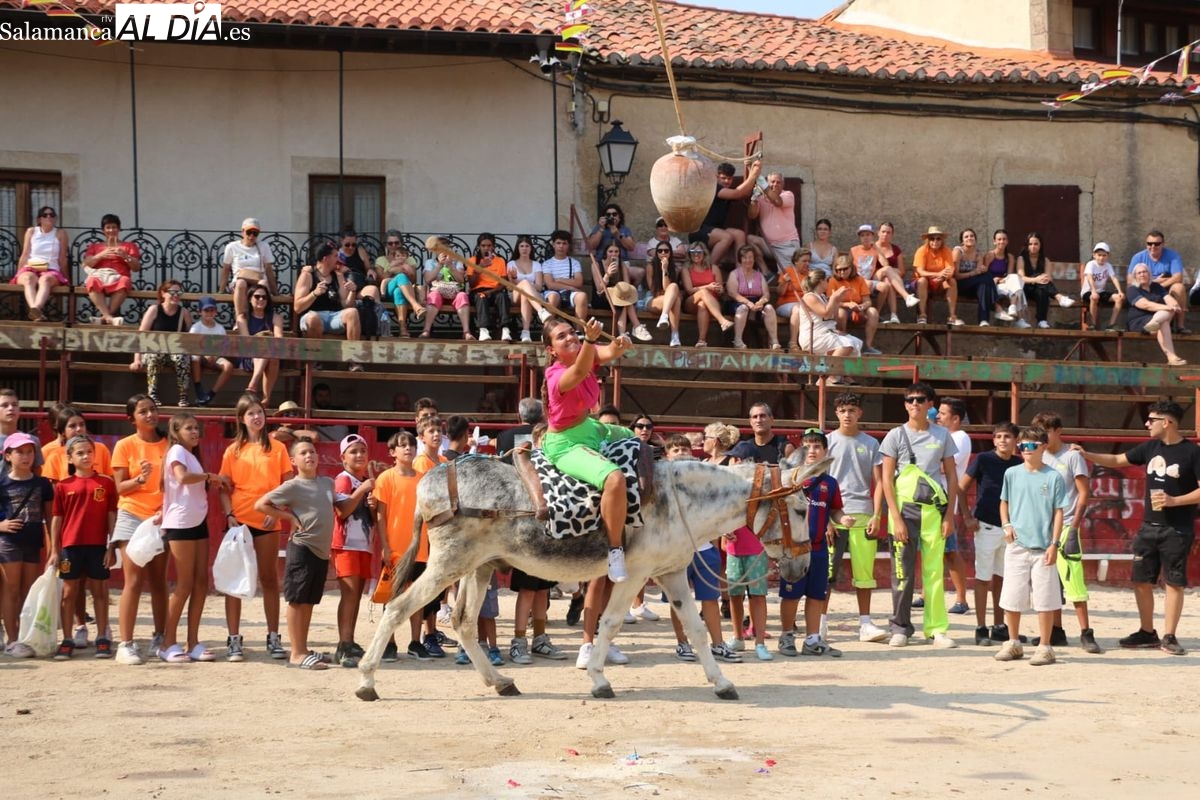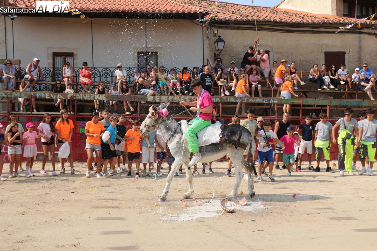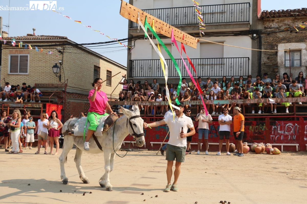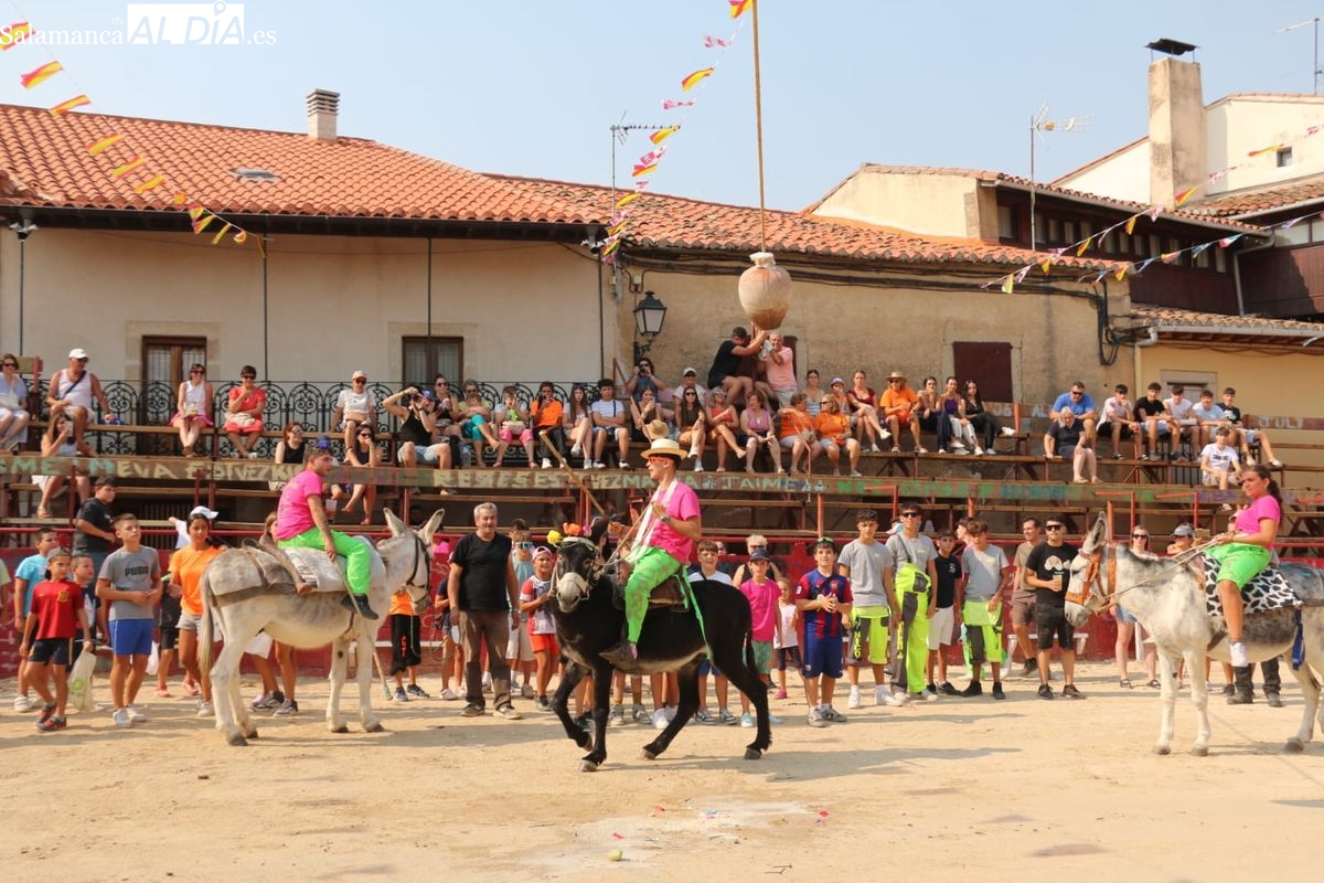 Como manda la tradición, los jóvenes montaron a lomos de burros para intentar romper los cántaros, acto al que siguió el singular baile de la rosca de quintos