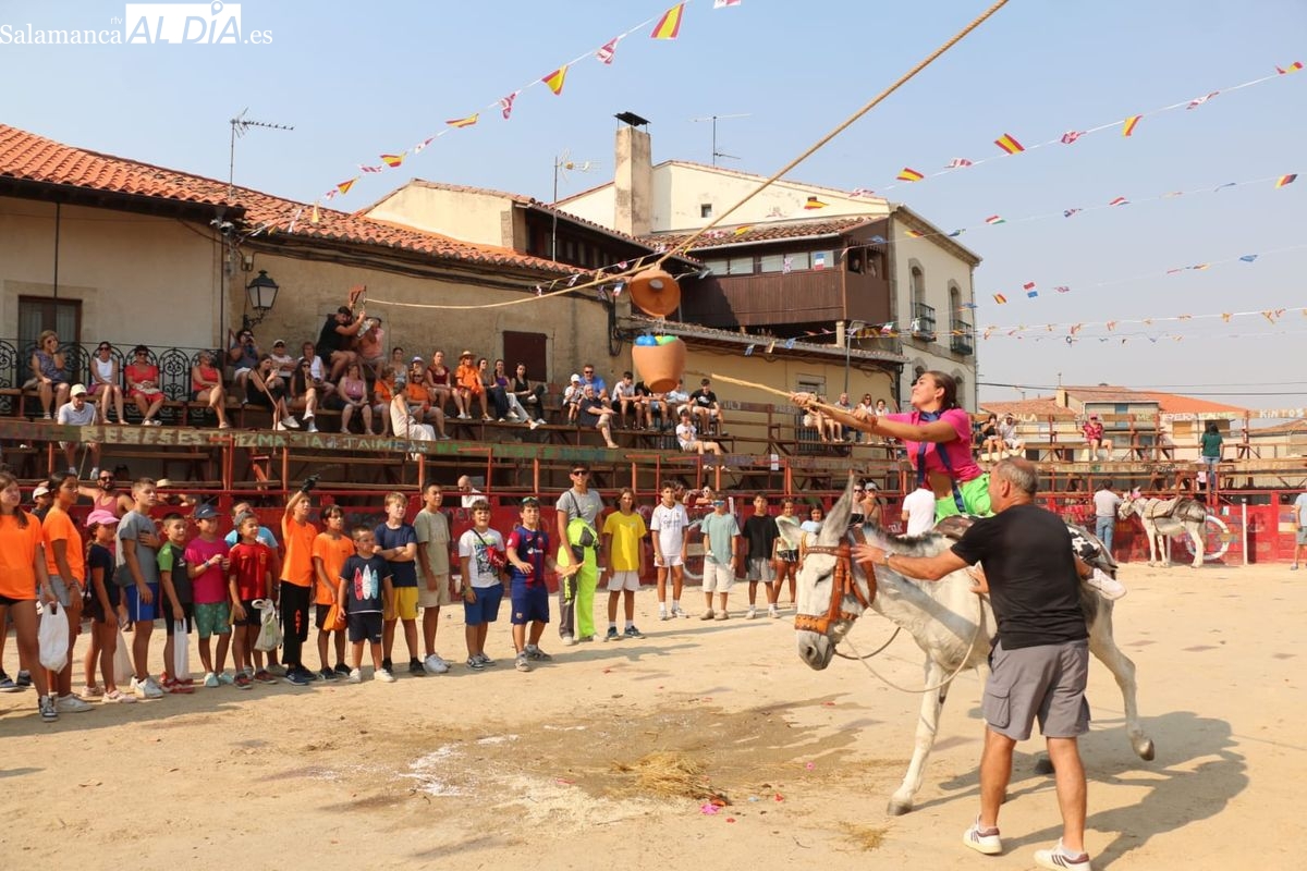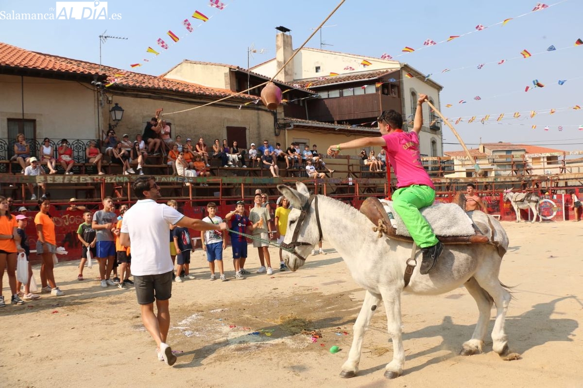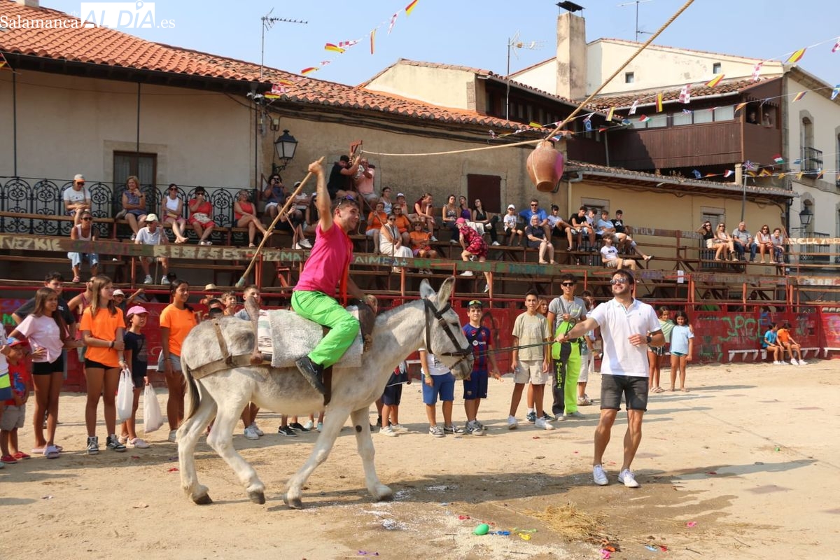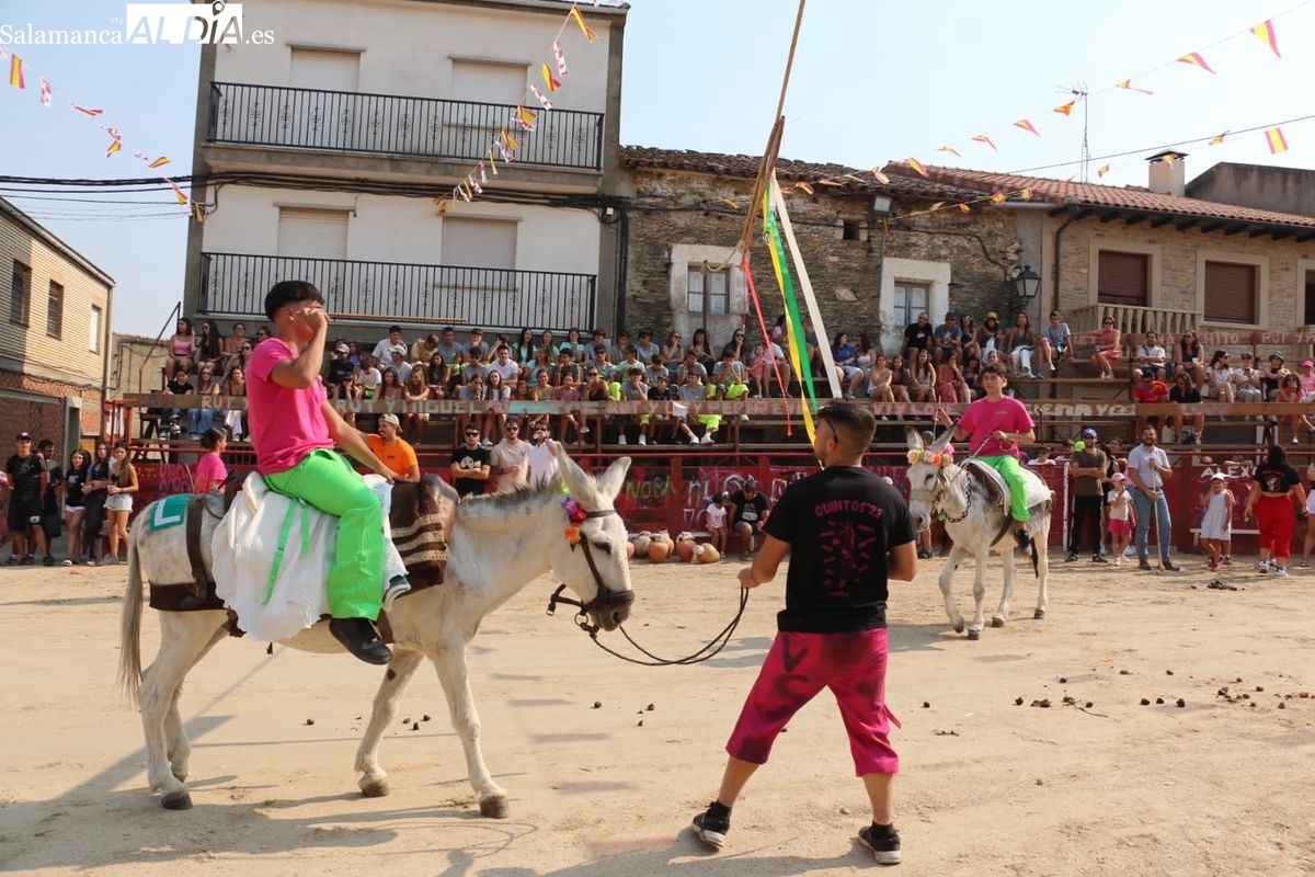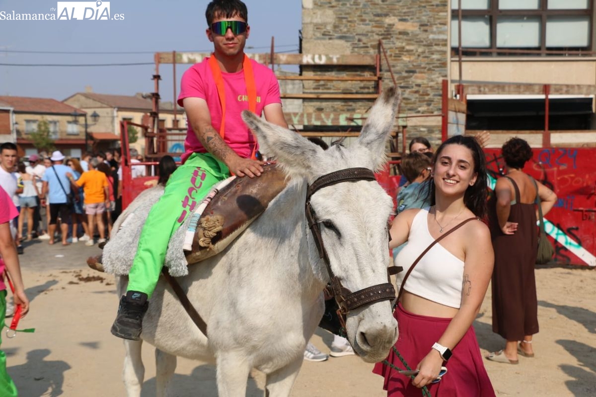 Como manda la tradición, los jóvenes montaron a lomos de burros para intentar romper los cántaros, acto al que siguió el singular baile de la rosca de quintos