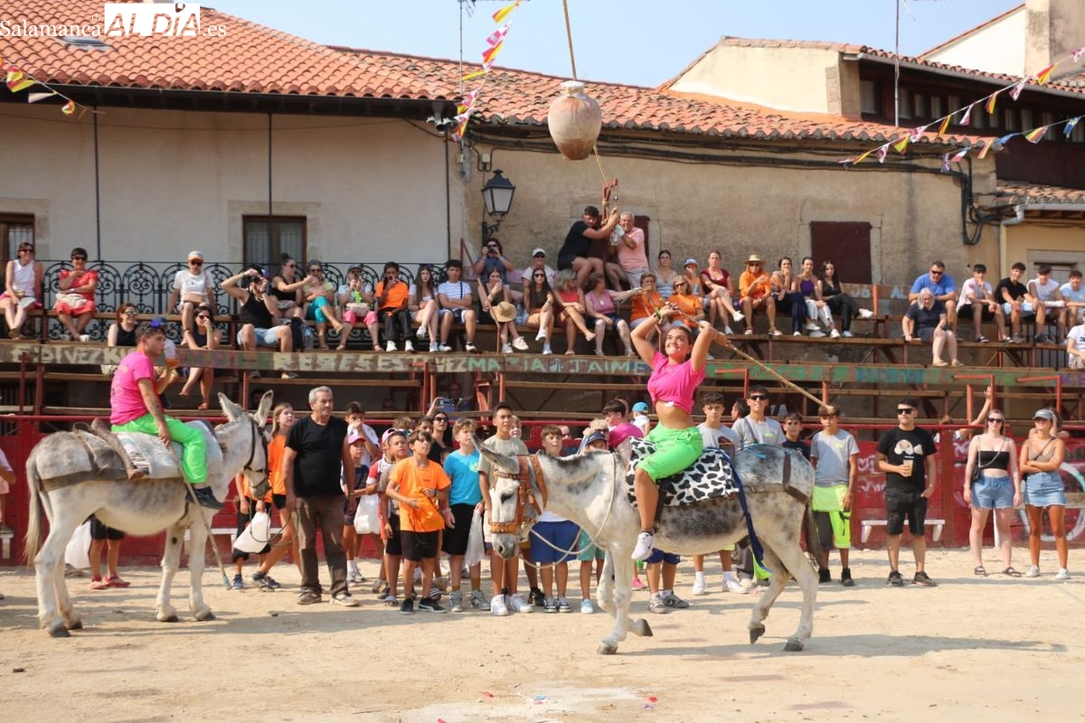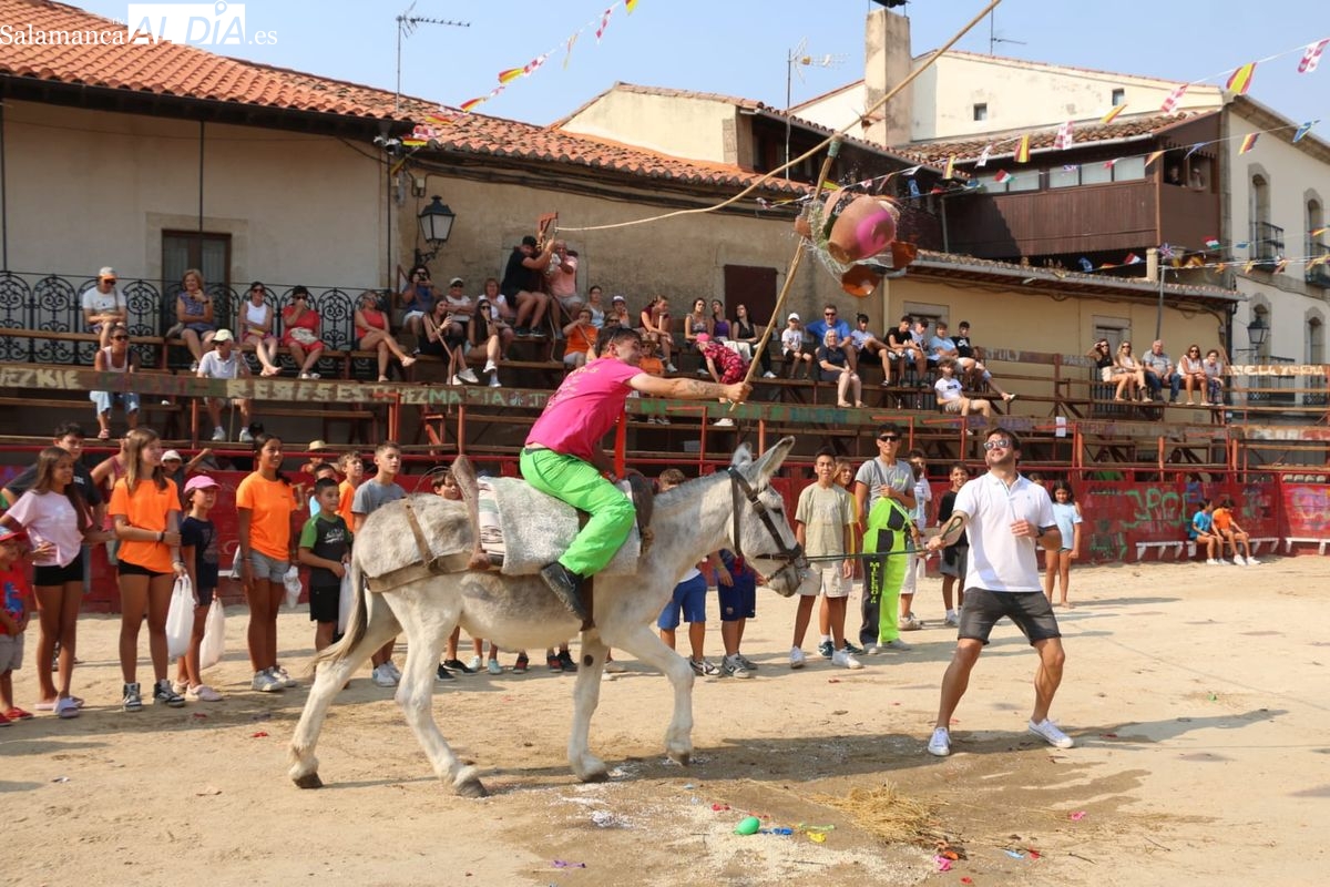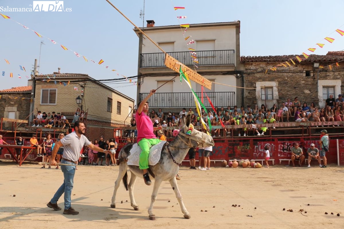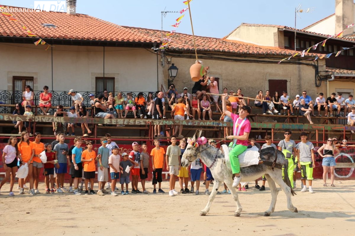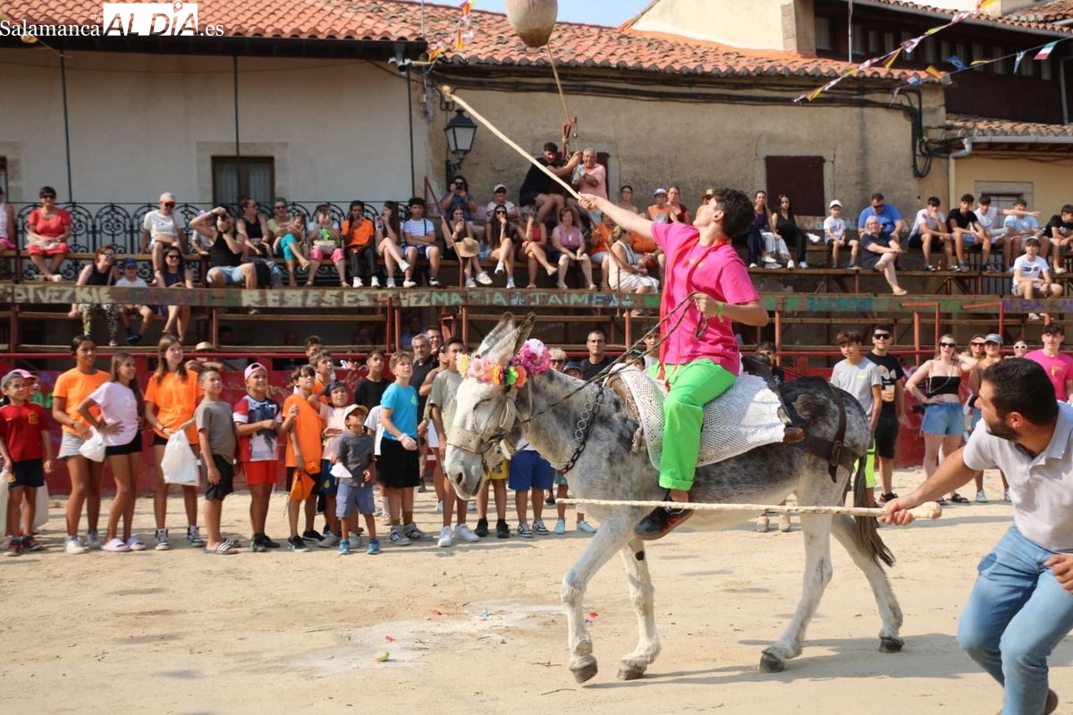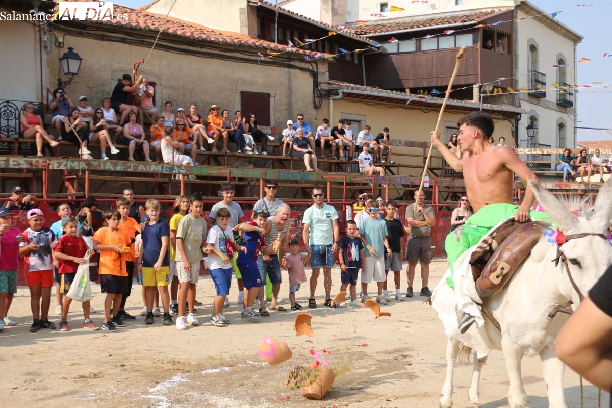 Como manda la tradición, los jóvenes montaron a lomos de burros para intentar romper los cántaros, acto al que siguió el singular baile de la rosca de quintos