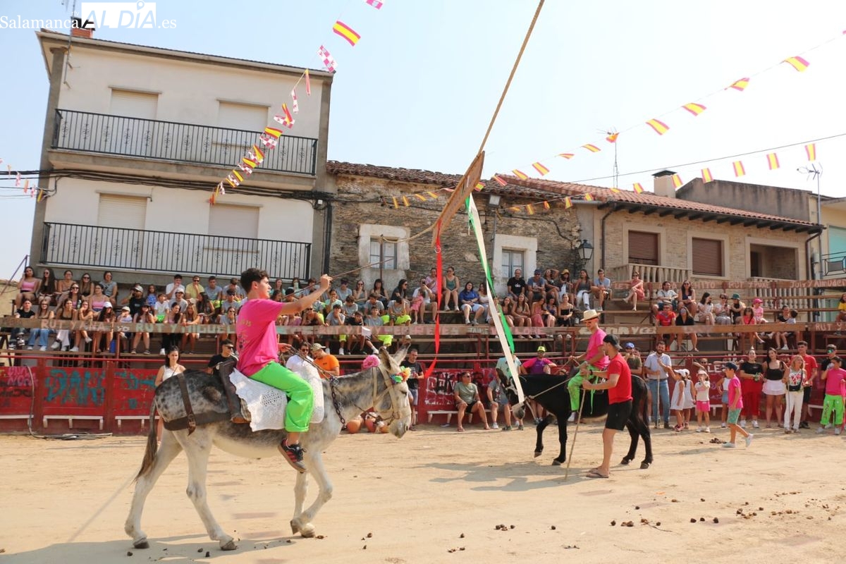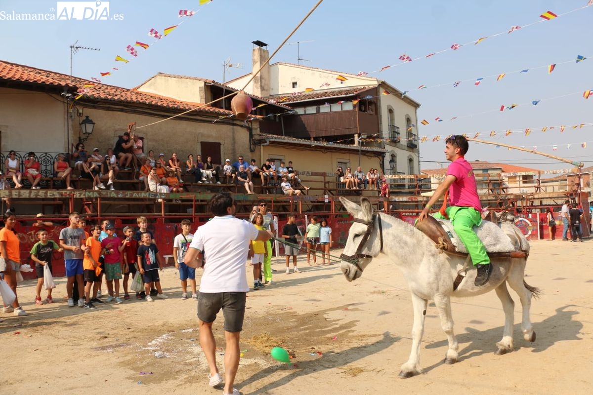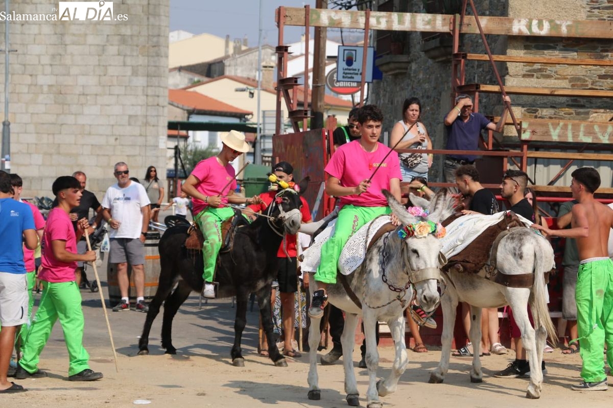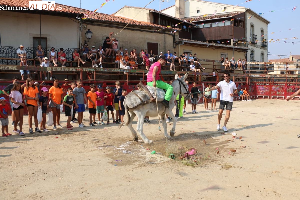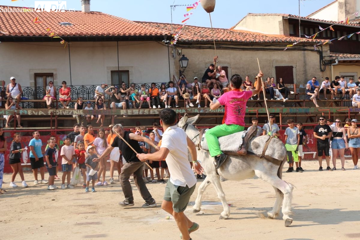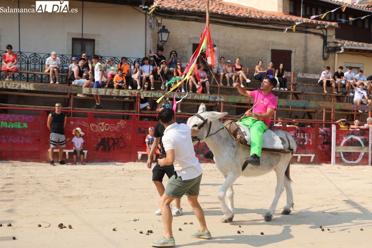 Como manda la tradición, los jóvenes montaron a lomos de burros para intentar romper los cántaros, acto al que siguió el singular baile de la rosca de quintos