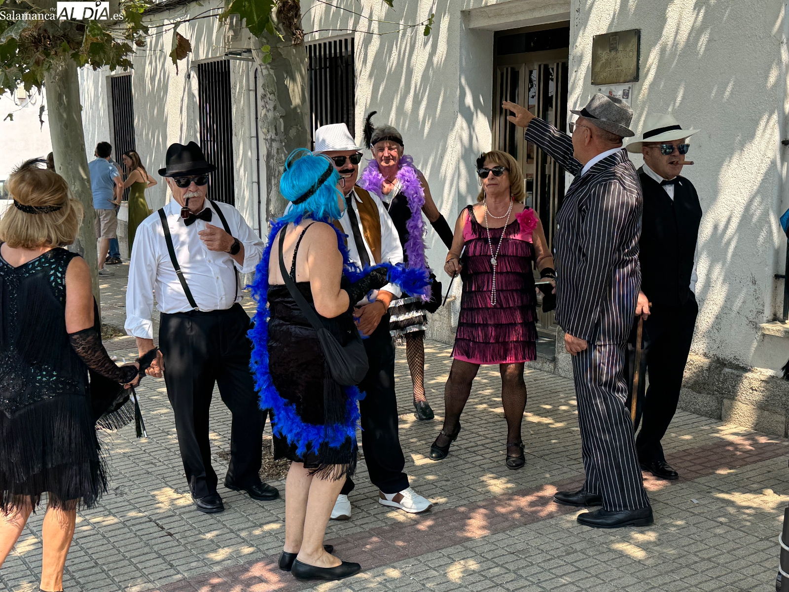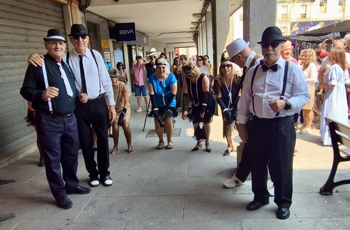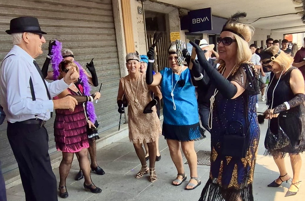 Disfrazados de personajes de los años 20, sus integrantes han realizado un festivo recorrido por la ciudad, ofreciendo bailes y carcajadas a todo aquel que se acercaba a saludarlos o simplemente se cruzaba con ellos, alegría que a buen seguro repartirán también en La Florida durante los festejos taurinos que hoy comienzan.