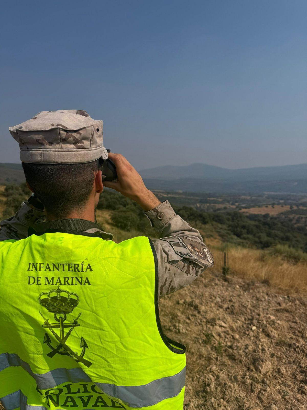 En la provincia de Salamanca, los Infantes de Marina colaboran estrechamente con la Guardia Civil y las autoridades locales. Una de sus tareas principales ha sido el traslado de ganado a zonas seguras debido a los incendios declarados entre Tomavacas y la zona del Puerto de Castilla. Además, realizan importantes labores de vigilancia en las inmediaciones de Ciudad Rodrigo.