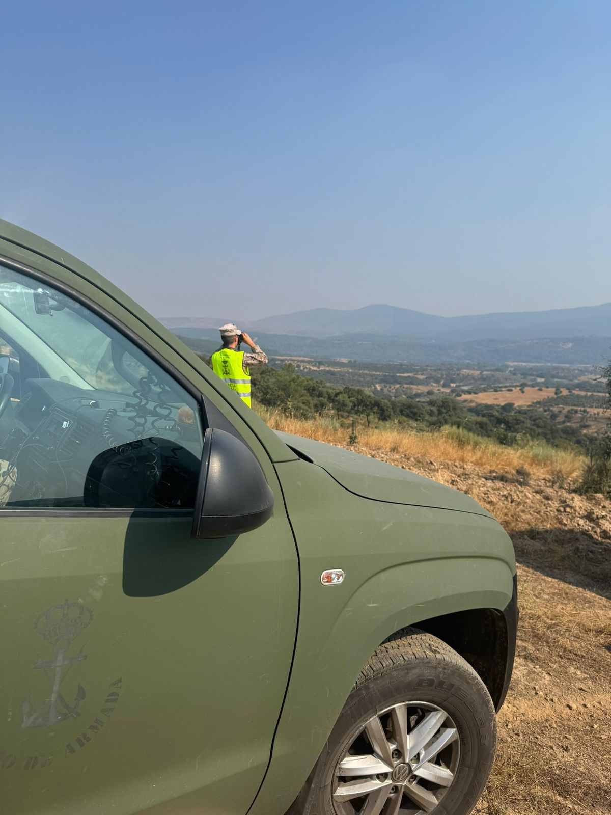 El despliegue se extiende a las provincias vecinas. En Ávila, otra parte del subgrupo táctico se encuentra en la zona del Valle del Tietar, realizando labores de vigilancia desde observatorios en puntos dominantes en apoyo al Batallón de Intervención en Emergencias V (BIEM V) de la UME.