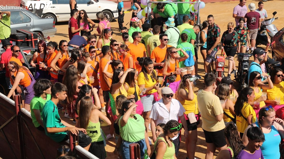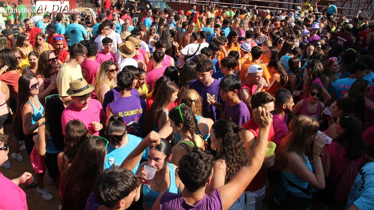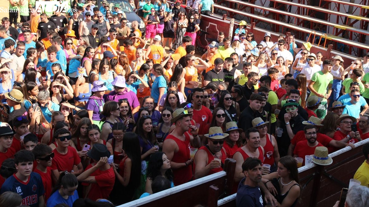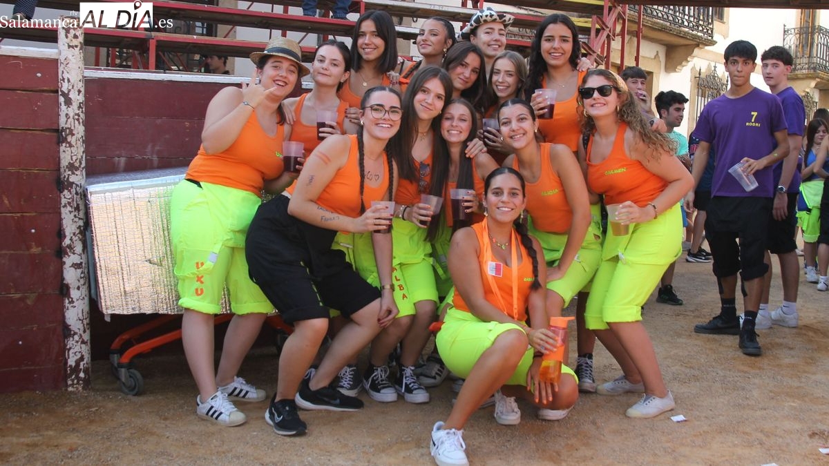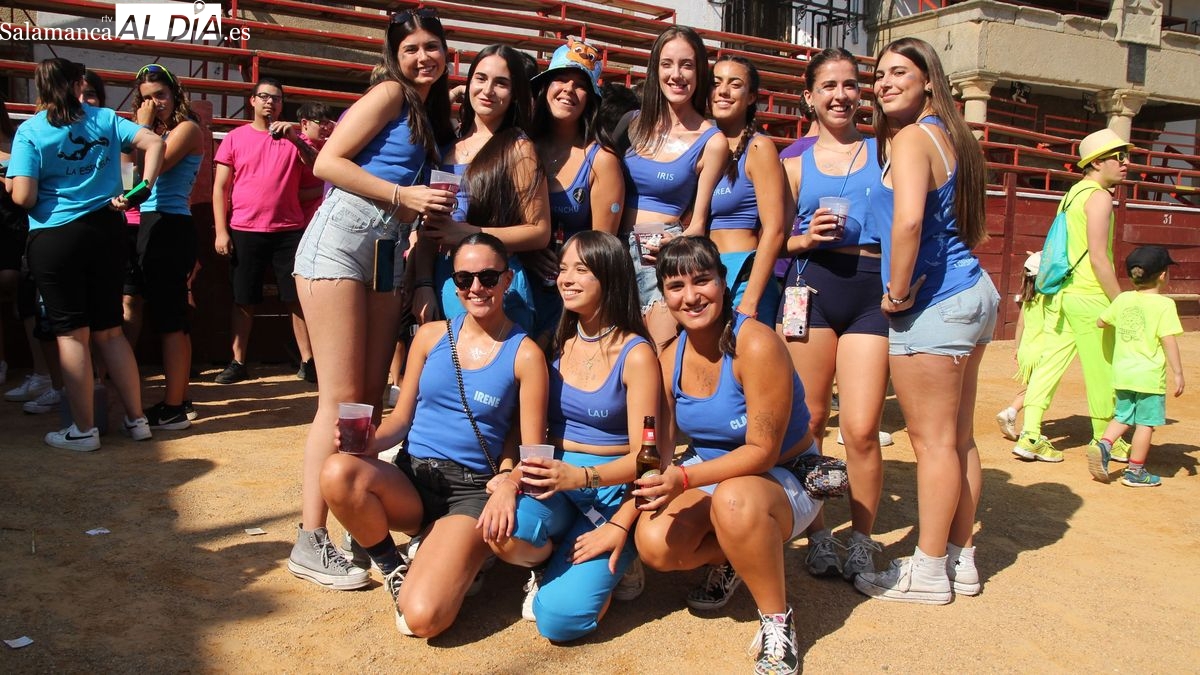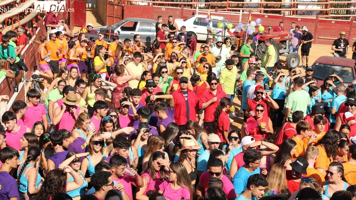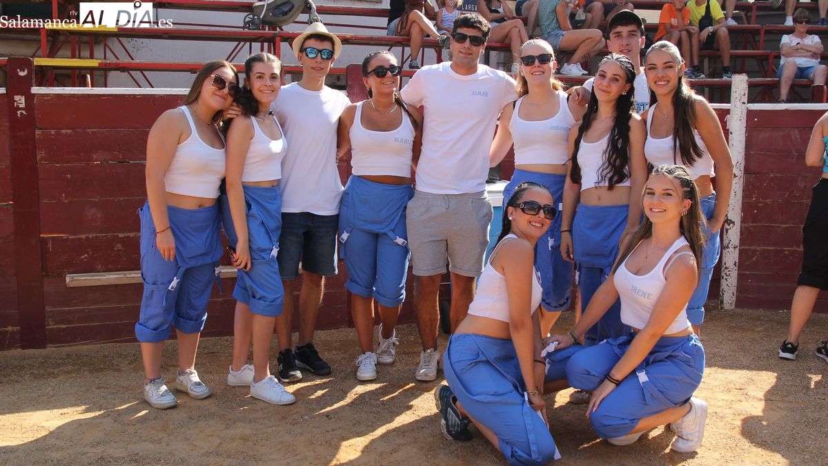 El coso taurino montado en la Plaza Mayor ha sido escenario esta tarde de un multitudinario, alegre y colorido encuentro de las Peñas de Lumbrales, el pregón de peñas y el chupinazo que marcan el inicio de 'Los Toros', los días grandes de las fiestas de Lumbrales que se celebran los días 23, 24, 25 y 26 de agosto.