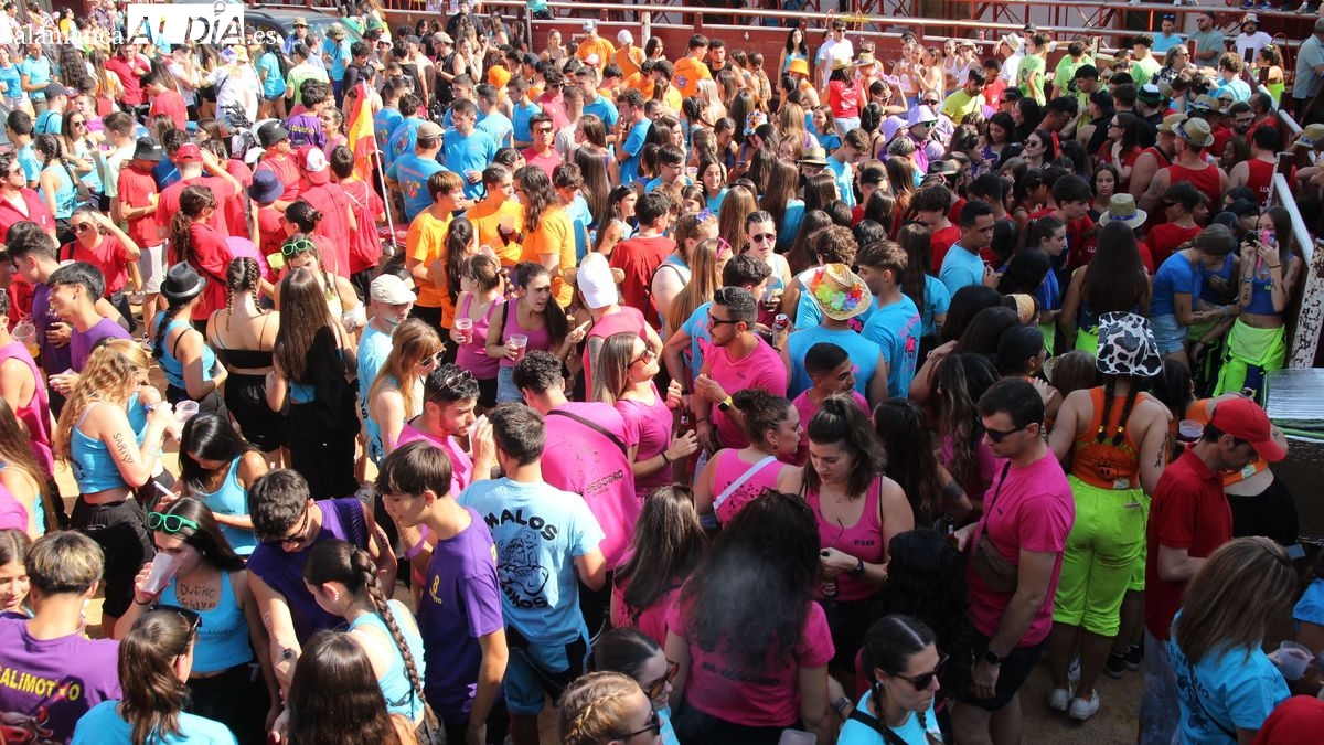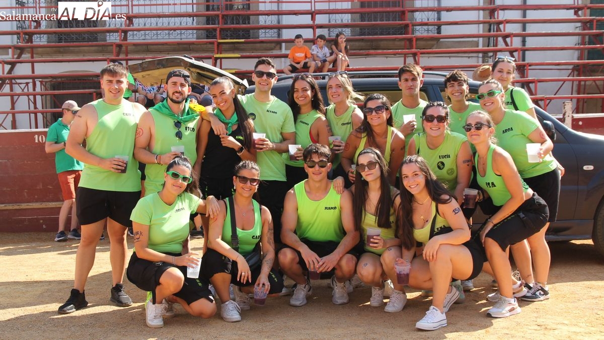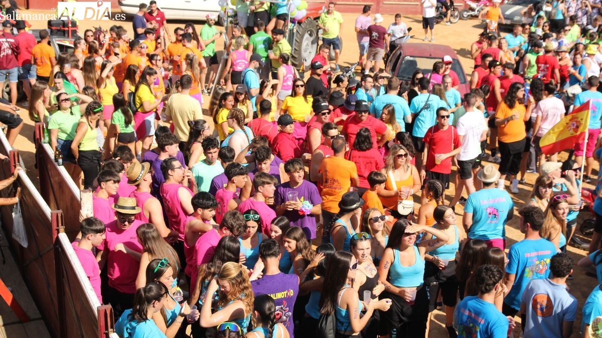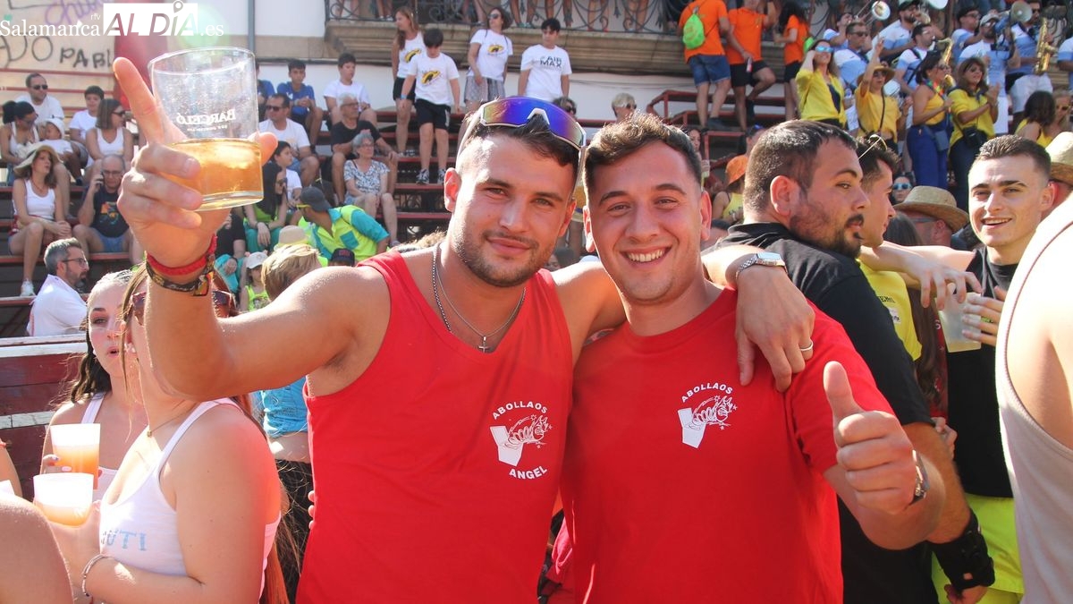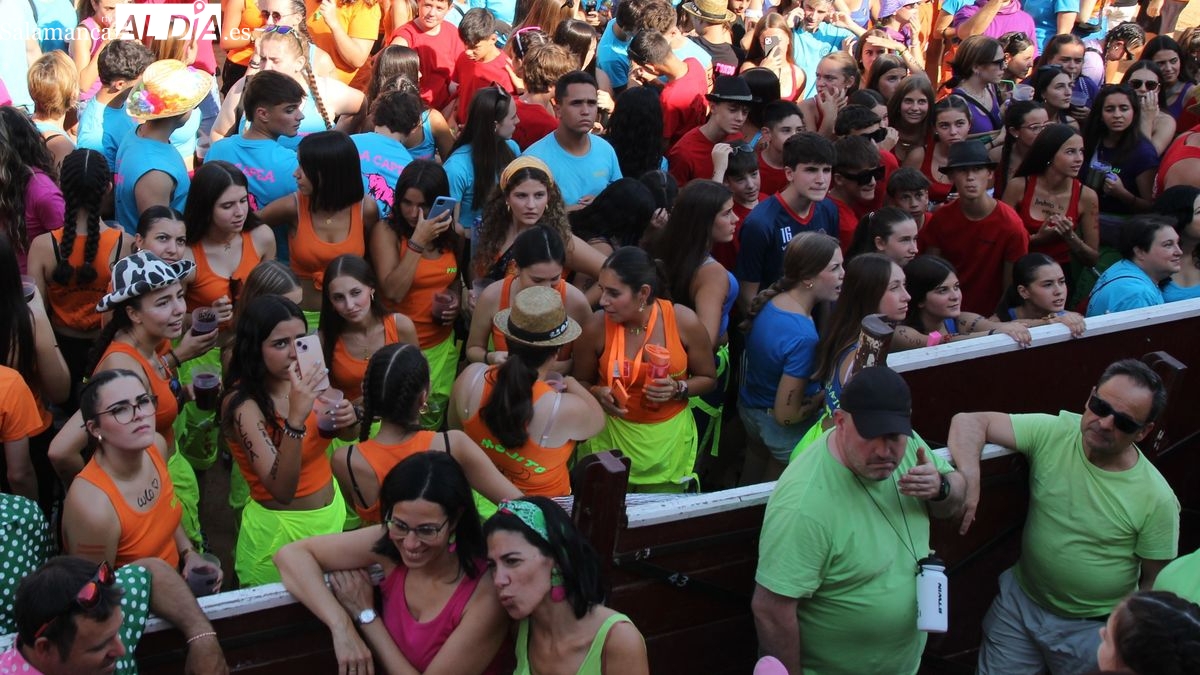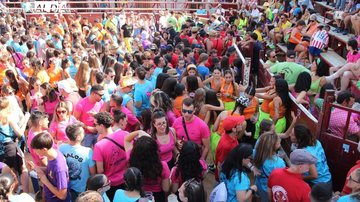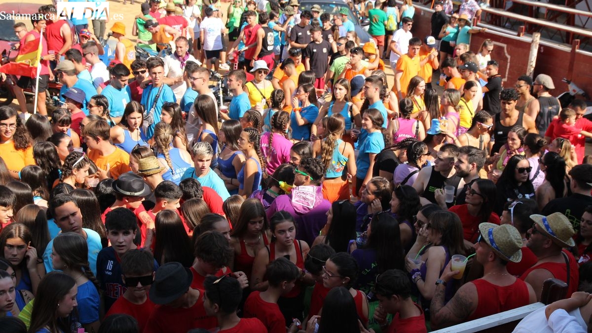 El coso taurino montado en la Plaza Mayor ha sido escenario esta tarde de un multitudinario, alegre y colorido encuentro de las Peñas de Lumbrales, el pregón de peñas y el chupinazo que marcan el inicio de 'Los Toros', los días grandes de las fiestas de Lumbrales que se celebran los días 23, 24, 25 y 26 de agosto.
