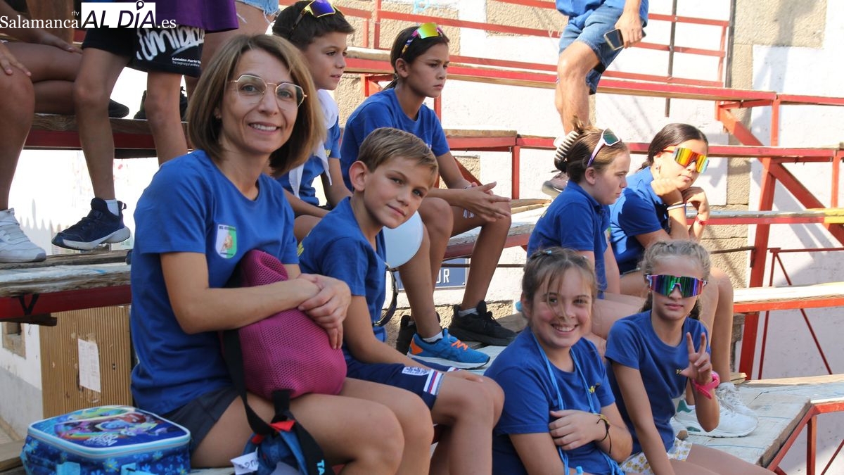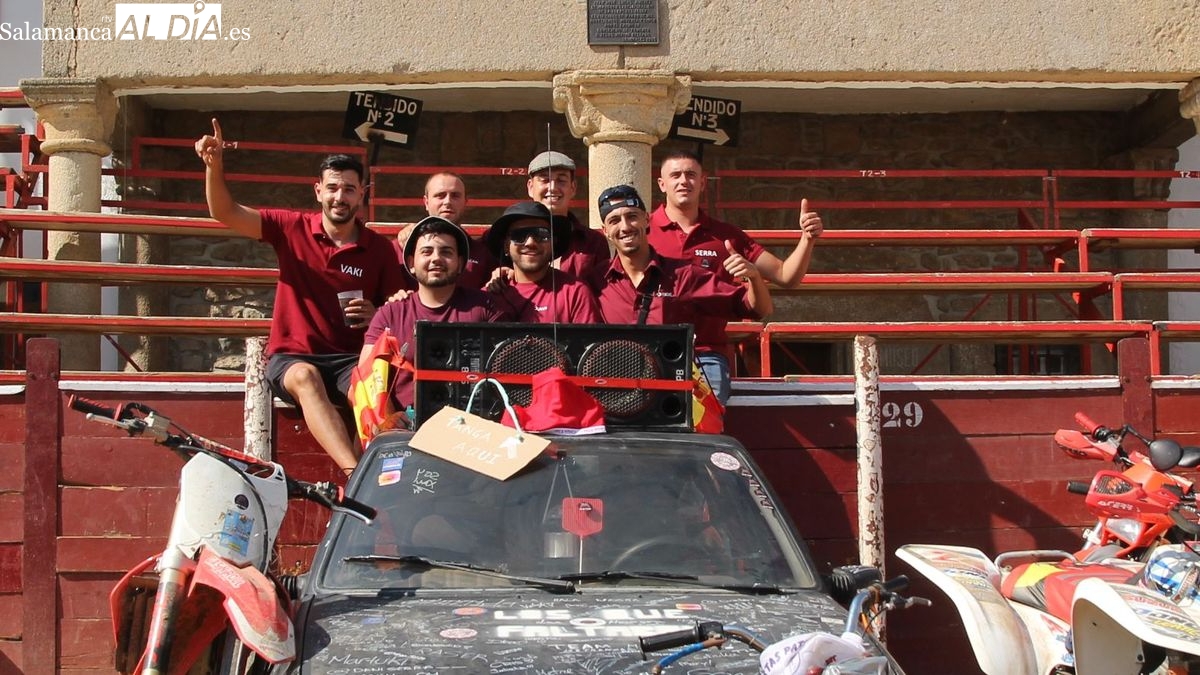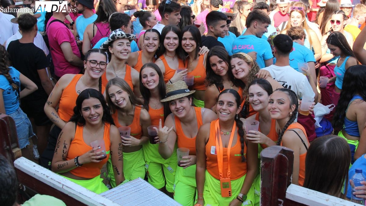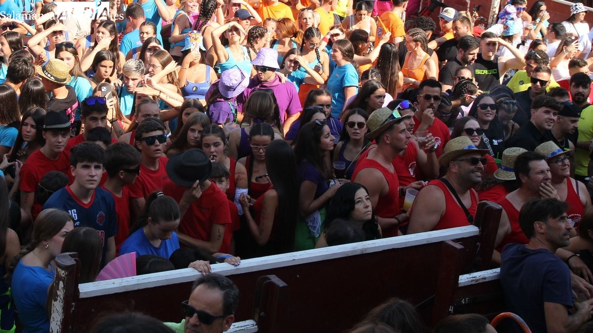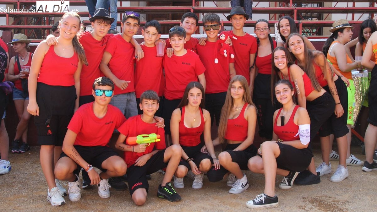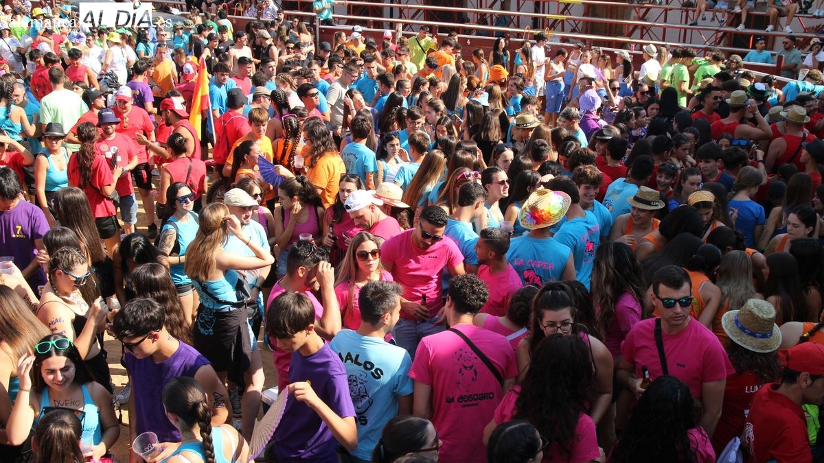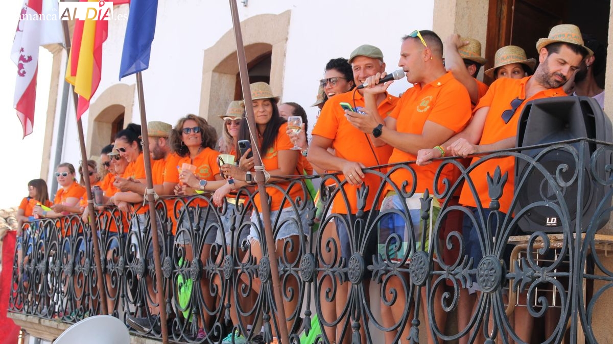 El coso taurino montado en la Plaza Mayor ha sido escenario esta tarde de un multitudinario, alegre y colorido encuentro de las Peñas de Lumbrales, el pregón de peñas y el chupinazo que marcan el inicio de 'Los Toros', los días grandes de las fiestas de Lumbrales que se celebran los días 23, 24, 25 y 26 de agosto.