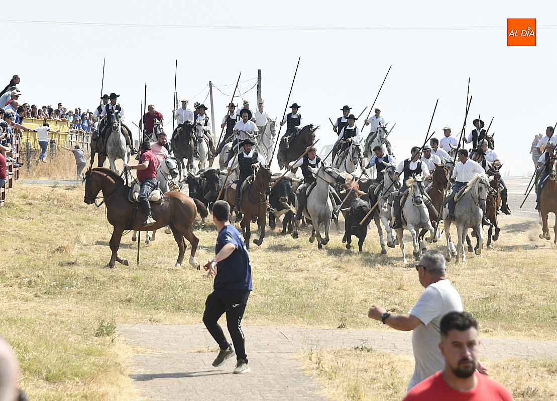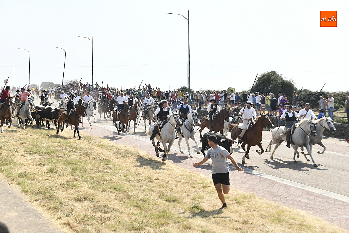 Como es tradición, la primera cita fue el primer encierro, que atrajo hasta la localidad a cientos y cientos de personas de toda la comarca mirobrigense e incluso del país vecino, que debieron esperar un poco más de lo previsto, ya que la carrera comenzó con una media hora de retraso.