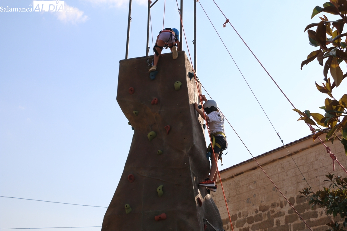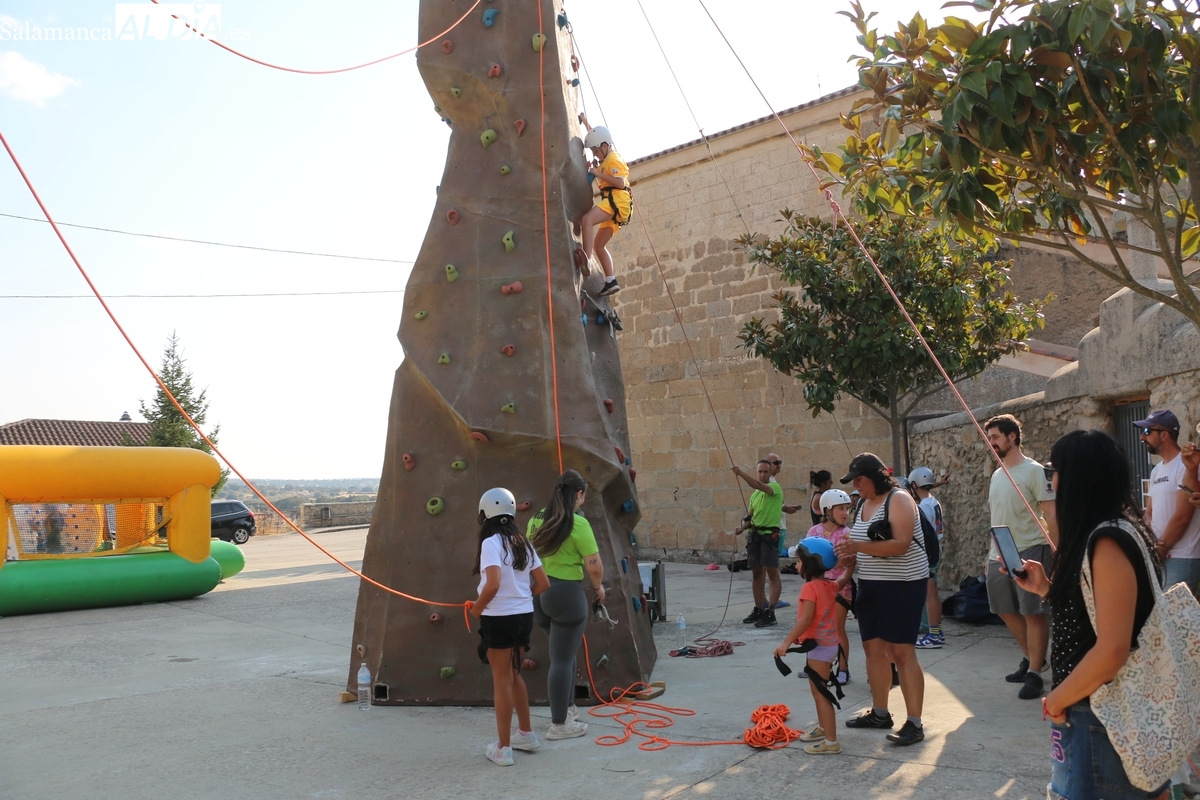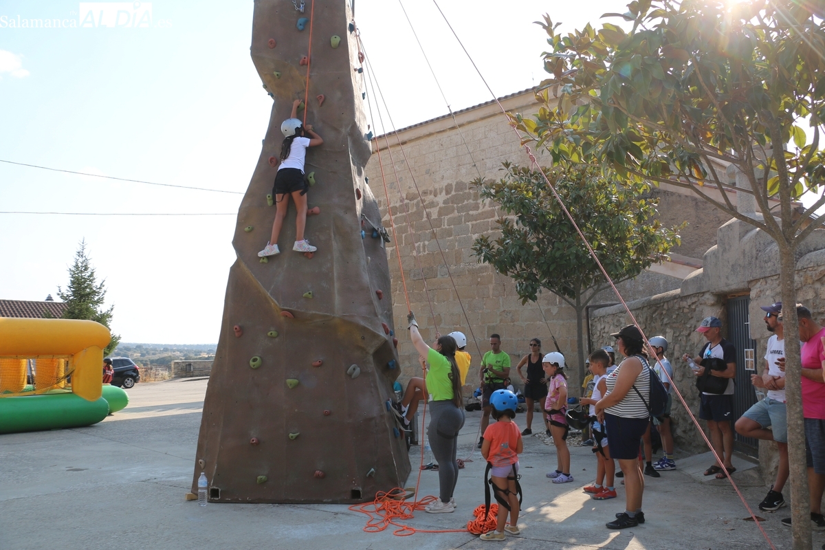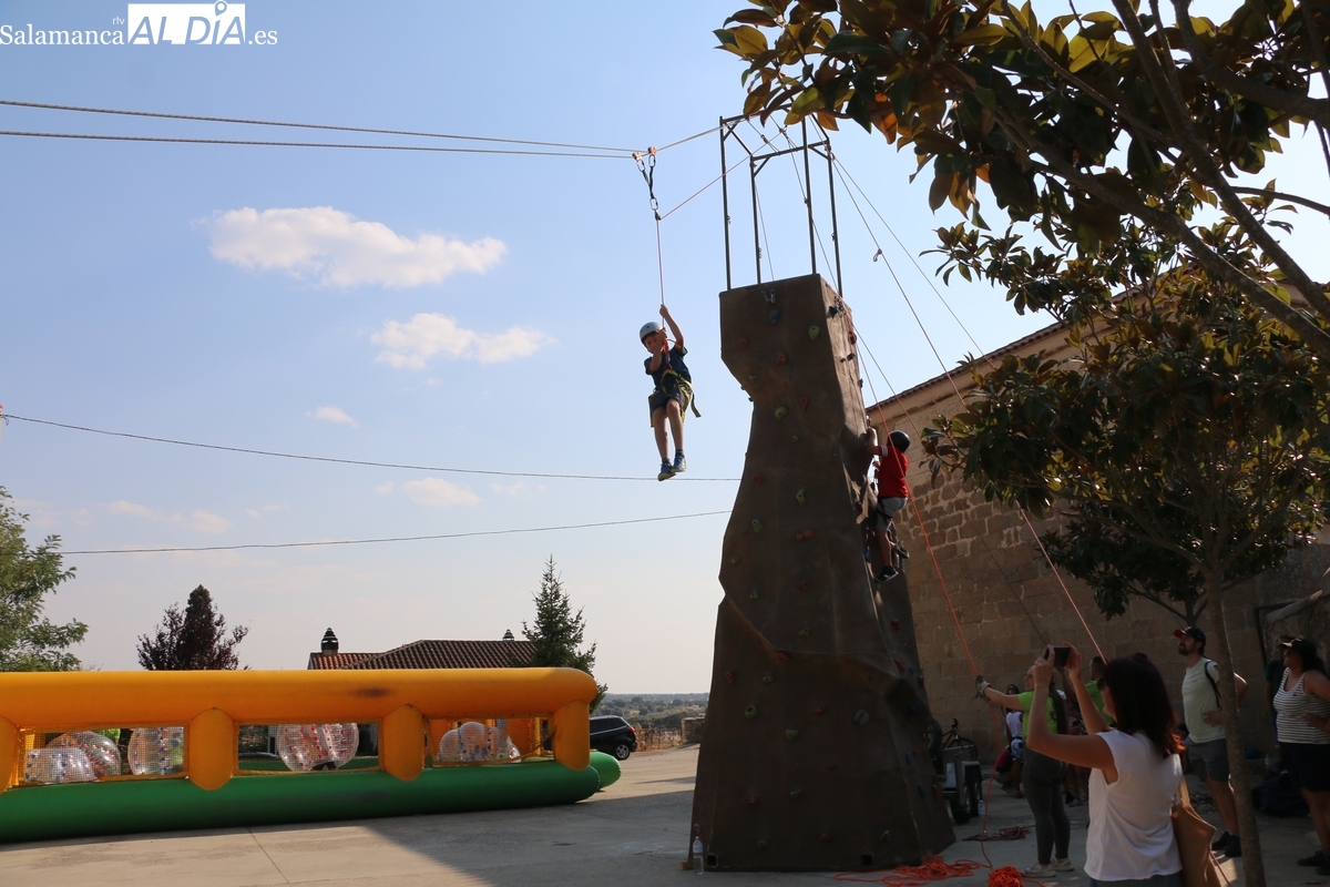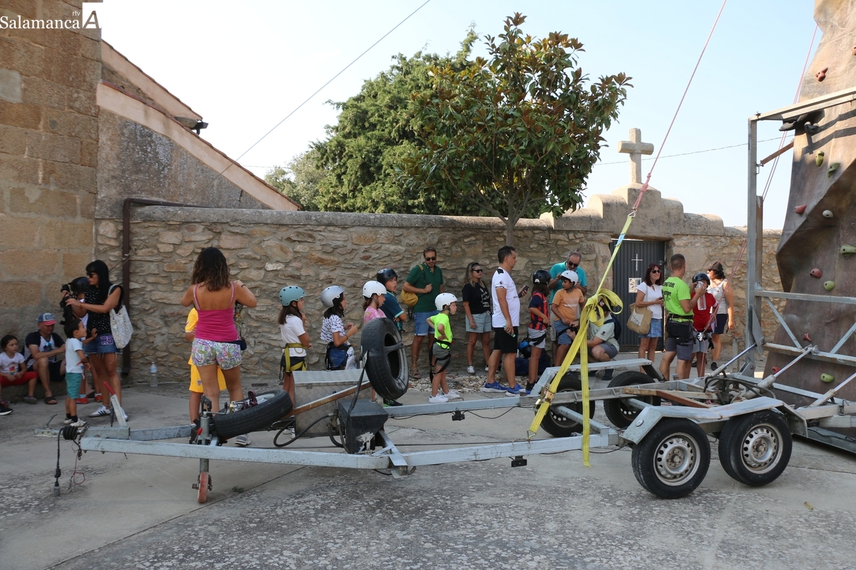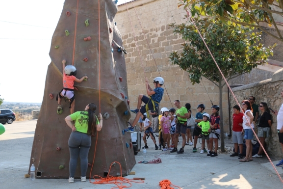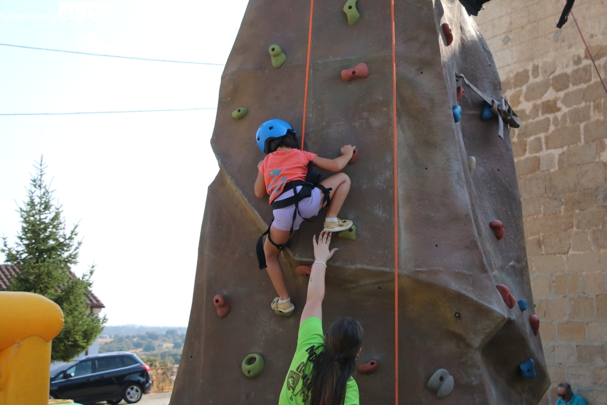 La jornada de este sábado, 23 de agosto, ha tenido como uno de sus platos fuertes el espectacular Parque multiaventura instalado junto a la iglesia. Desde primera hora de la tarde, la adrenalina y la diversión han sido las protagonistas en una cita en la que no faltaron el rocódromo, la tirolina, el tiro con arco y diversos juegos de variantes. Incluso los más metidos en años se atrevieron con el divertido fútbol de burbujas, generando momentos de gran diversión y camaradería entre los participantes.