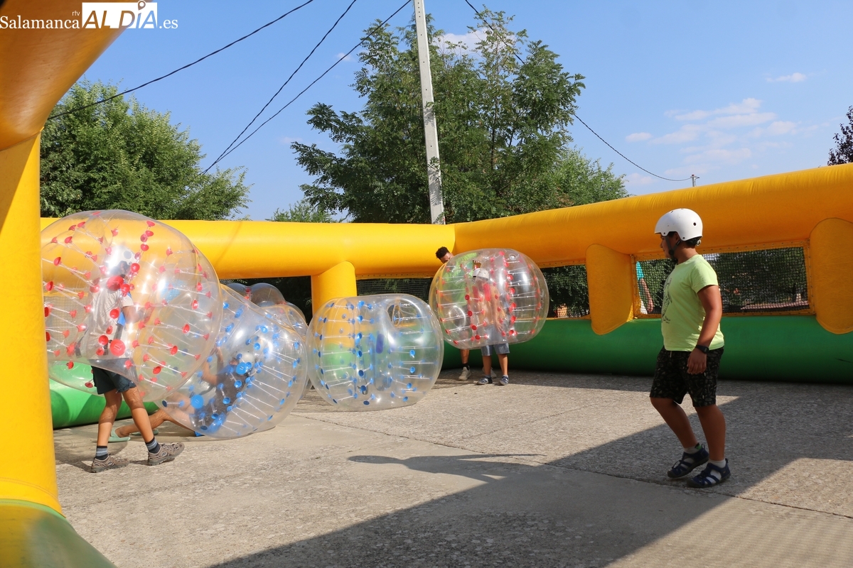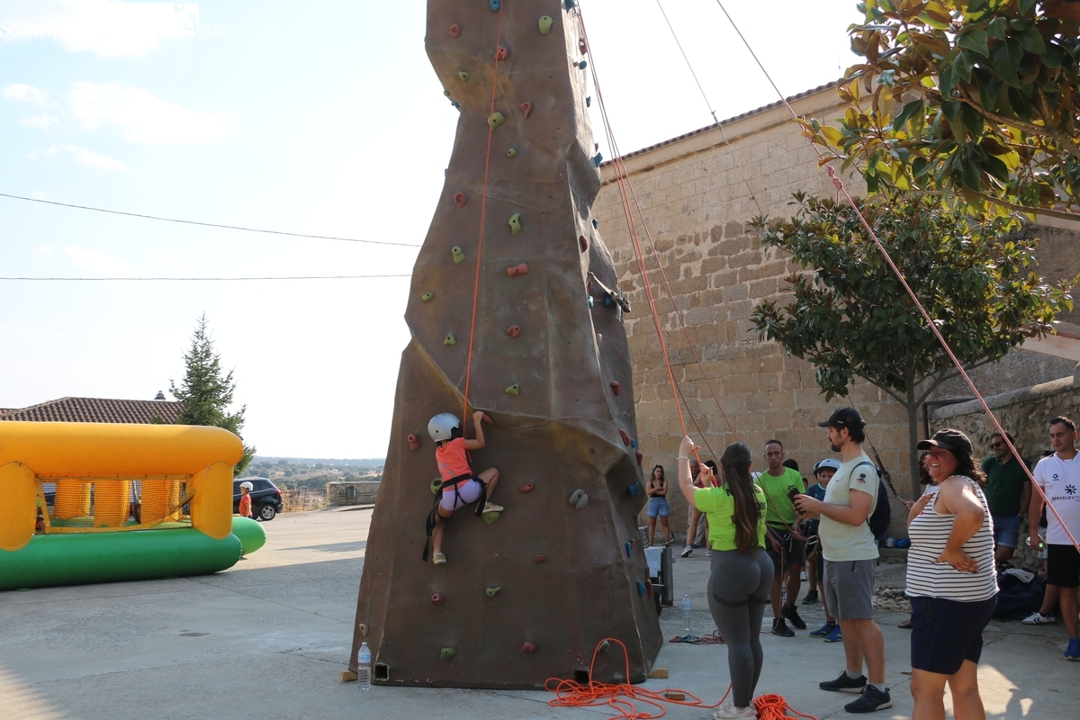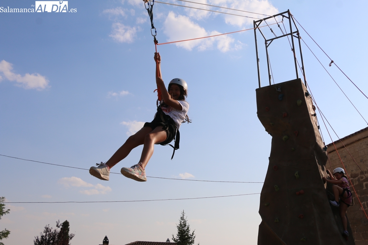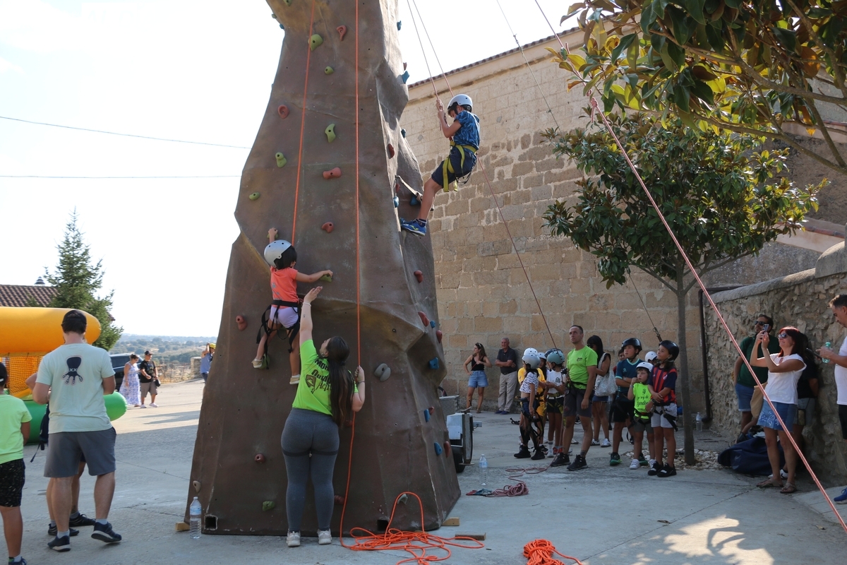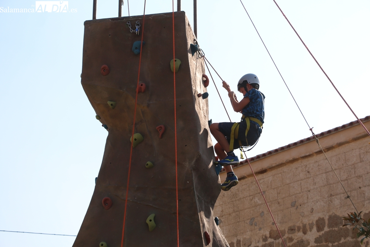 La jornada de este sábado, 23 de agosto, ha tenido como uno de sus platos fuertes el espectacular Parque multiaventura instalado junto a la iglesia. Desde primera hora de la tarde, la adrenalina y la diversión han sido las protagonistas en una cita en la que no faltaron el rocódromo, la tirolina, el tiro con arco y diversos juegos de variantes. Incluso los más metidos en años se atrevieron con el divertido fútbol de burbujas, generando momentos de gran diversión y camaradería entre los participantes.