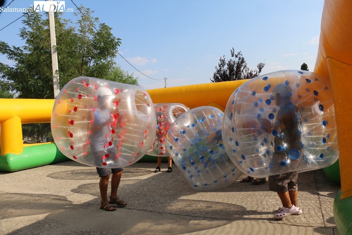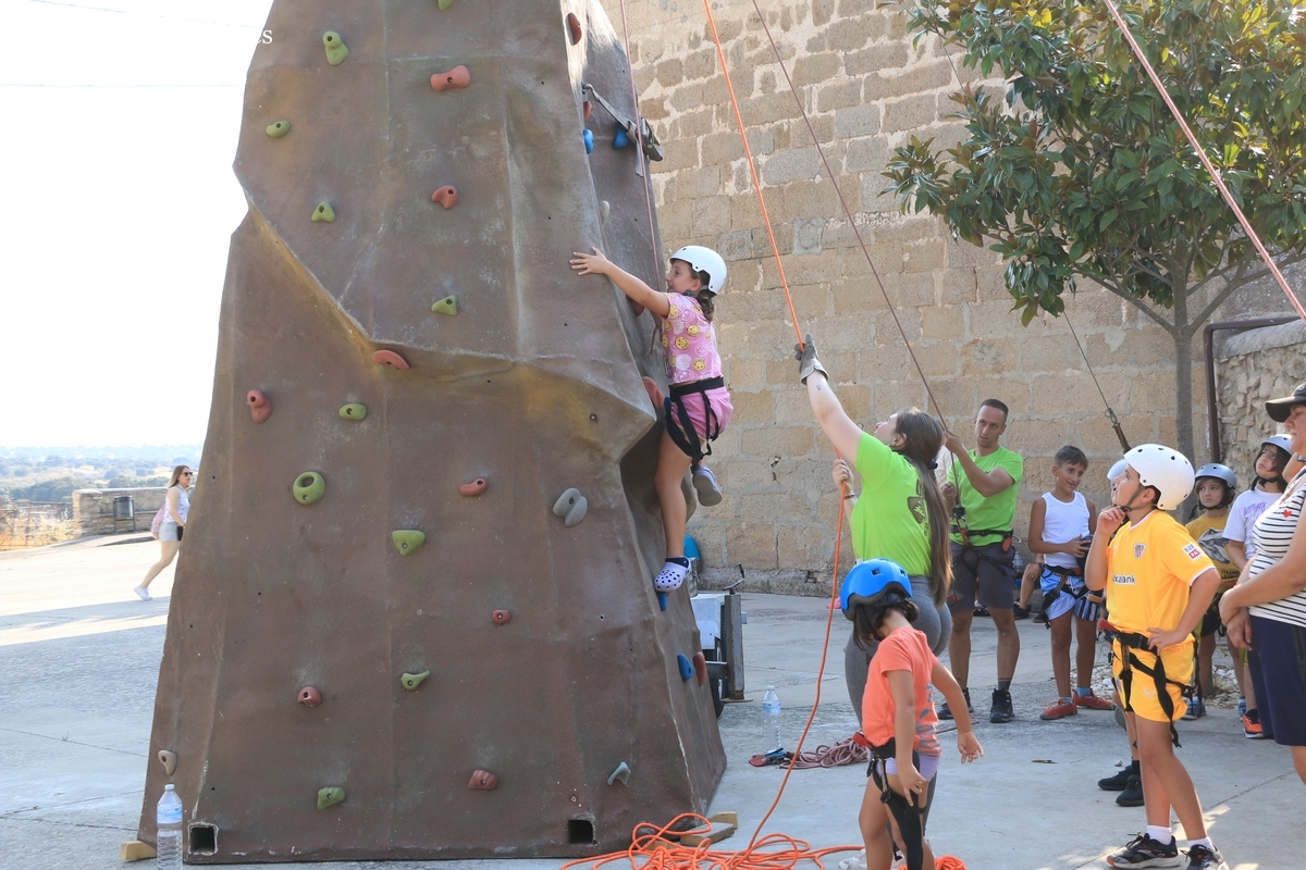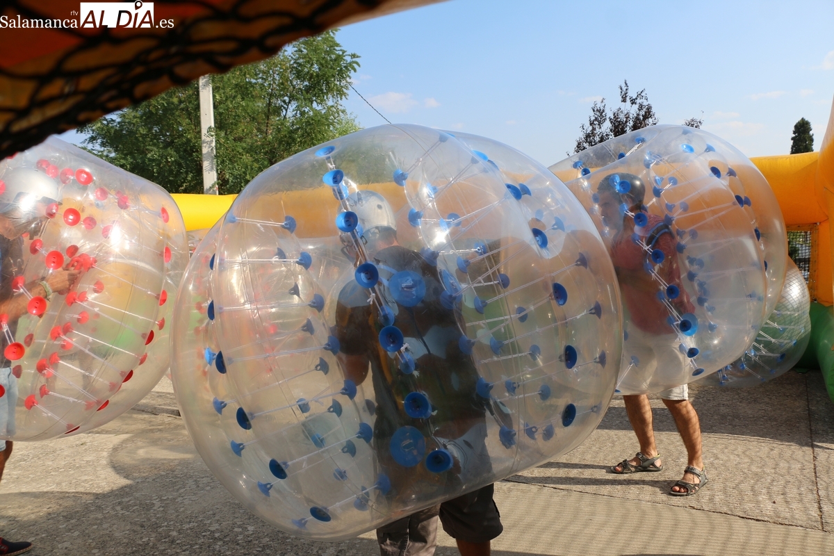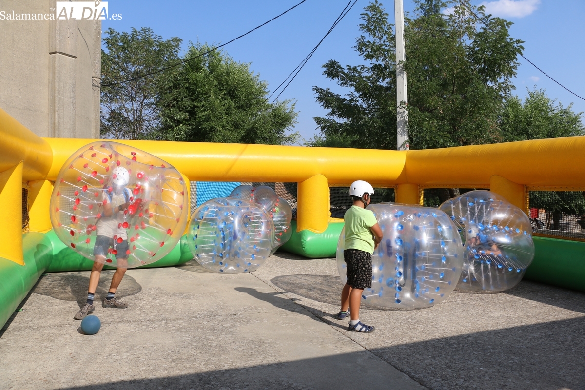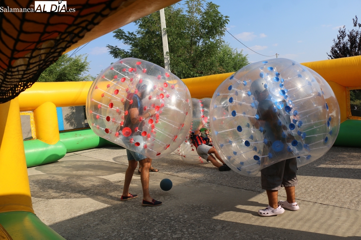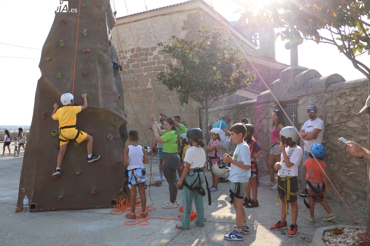 La jornada de este sábado, 23 de agosto, ha tenido como uno de sus platos fuertes el espectacular Parque multiaventura instalado junto a la iglesia. Desde primera hora de la tarde, la adrenalina y la diversión han sido las protagonistas en una cita en la que no faltaron el rocódromo, la tirolina, el tiro con arco y diversos juegos de variantes. Incluso los más metidos en años se atrevieron con el divertido fútbol de burbujas, generando momentos de gran diversión y camaradería entre los participantes.