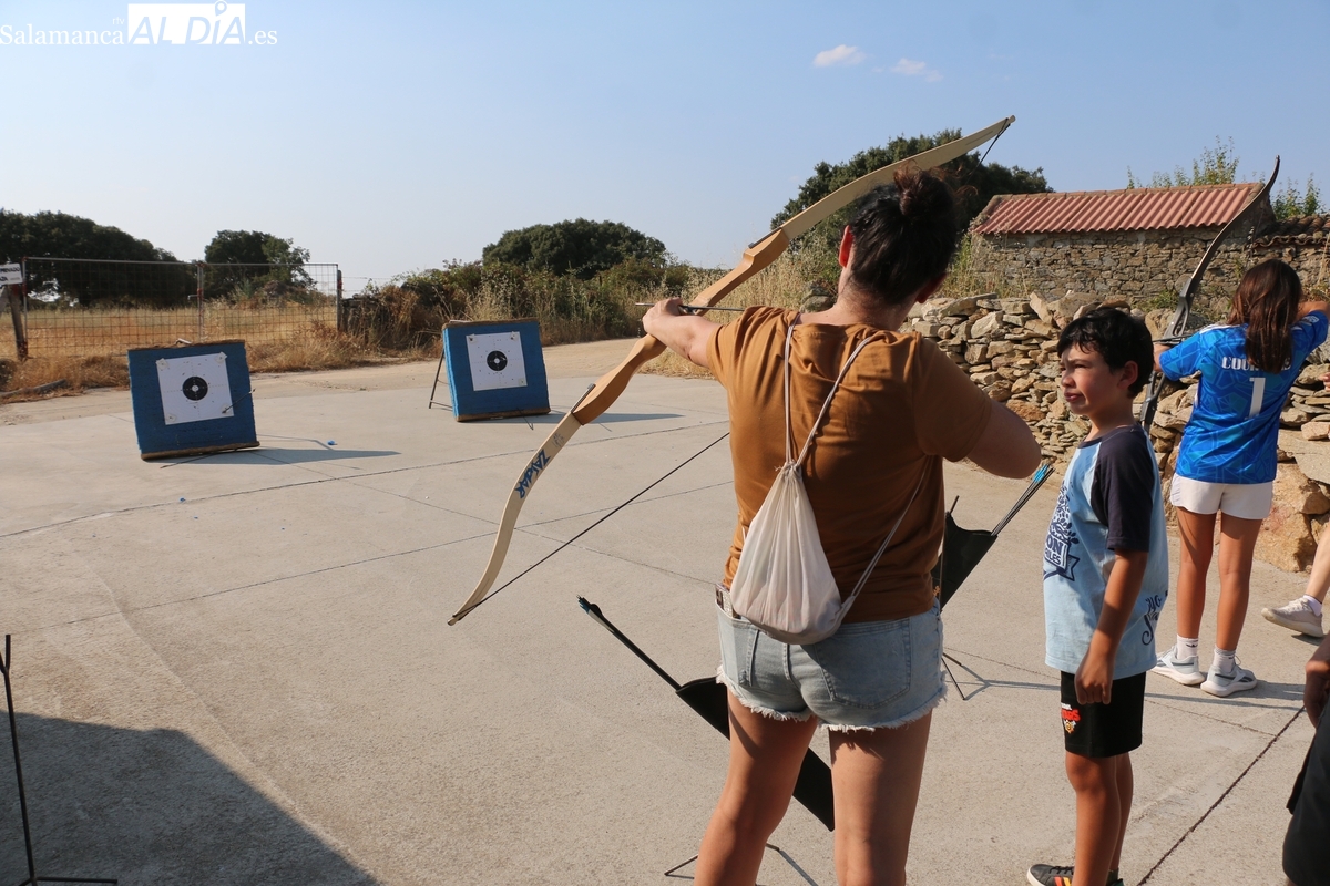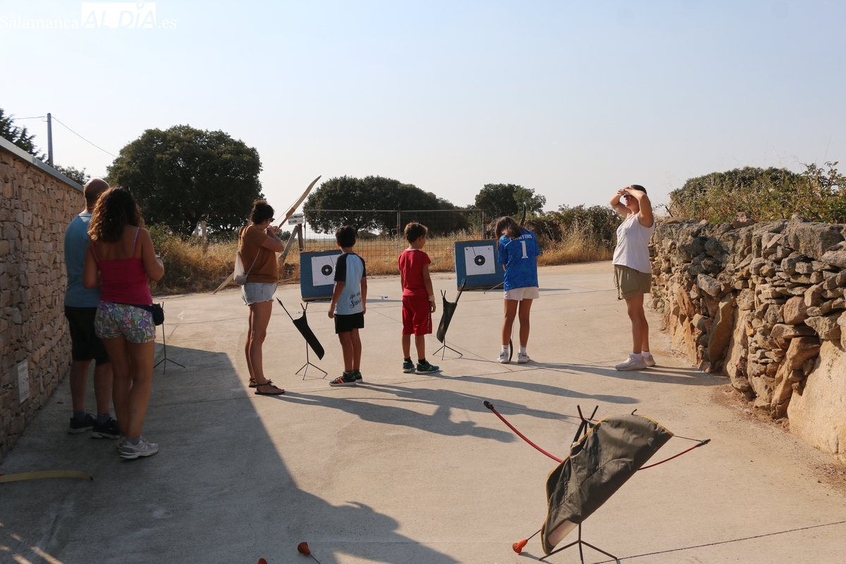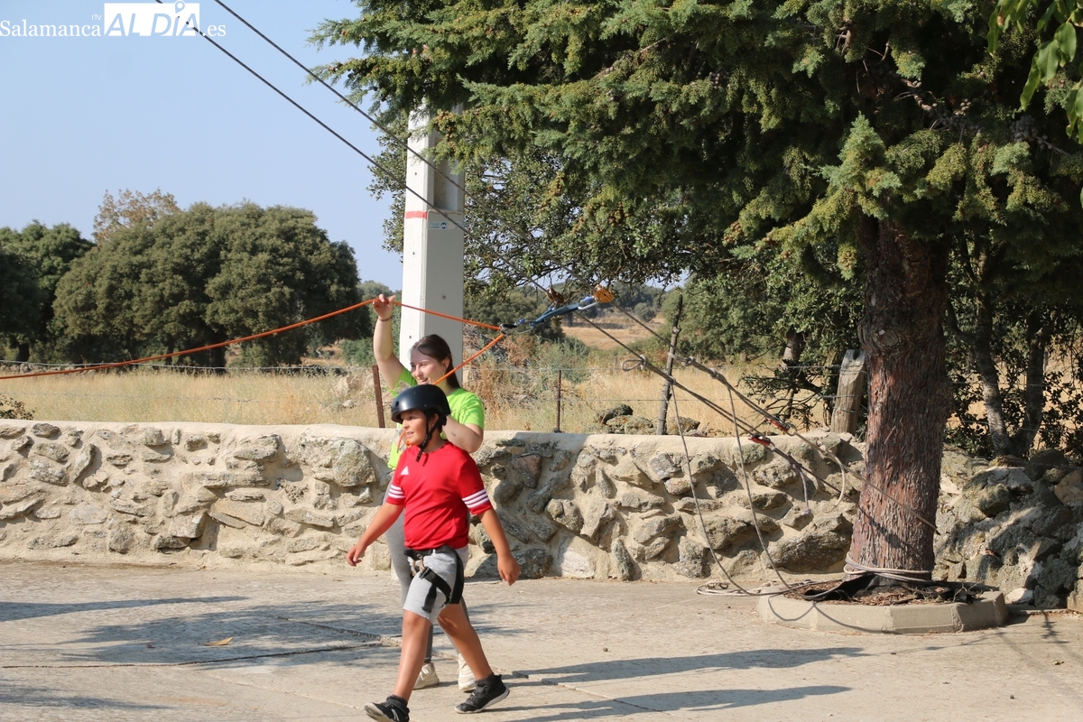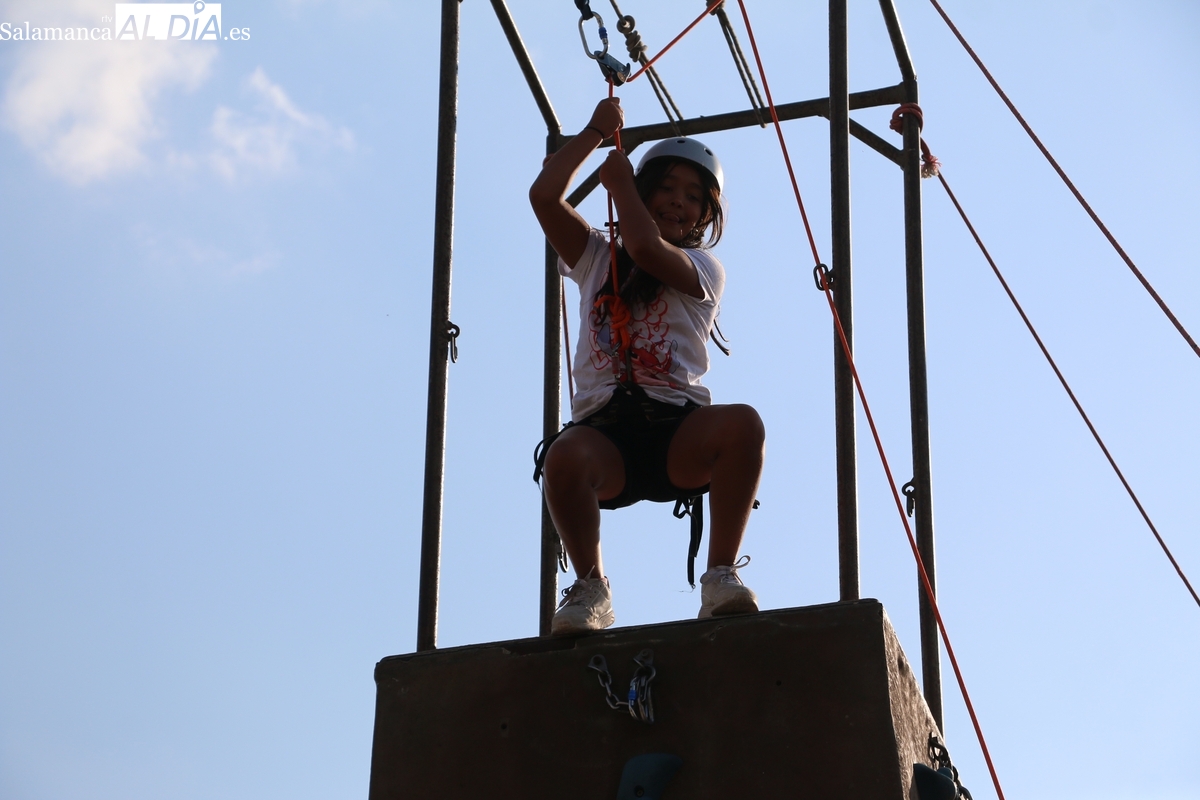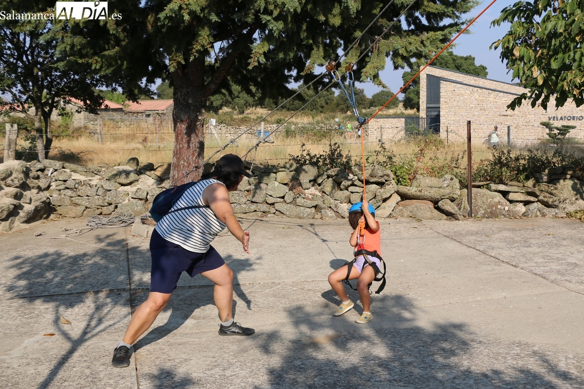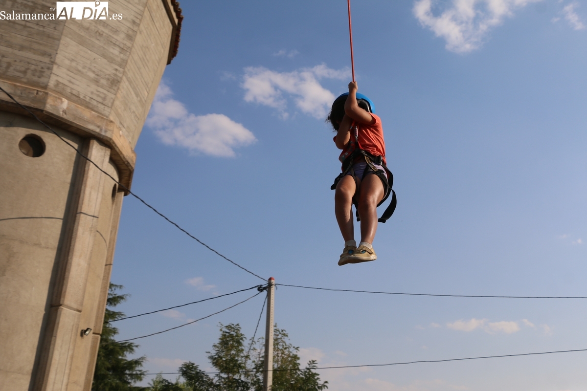 La jornada de este sábado, 23 de agosto, ha tenido como uno de sus platos fuertes el espectacular Parque multiaventura instalado junto a la iglesia. Desde primera hora de la tarde, la adrenalina y la diversión han sido las protagonistas en una cita en la que no faltaron el rocódromo, la tirolina, el tiro con arco y diversos juegos de variantes. Incluso los más metidos en años se atrevieron con el divertido fútbol de burbujas, generando momentos de gran diversión y camaradería entre los participantes.