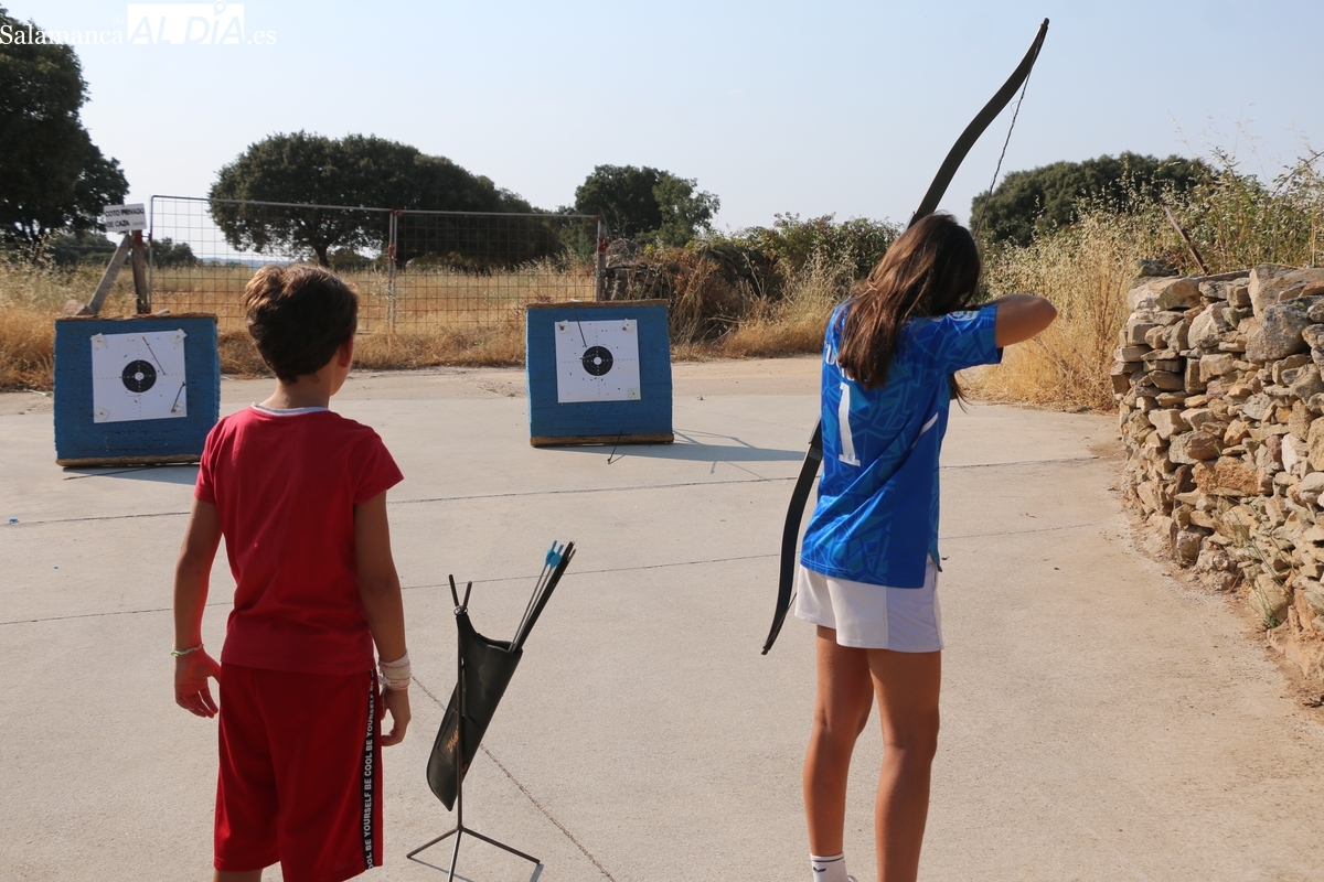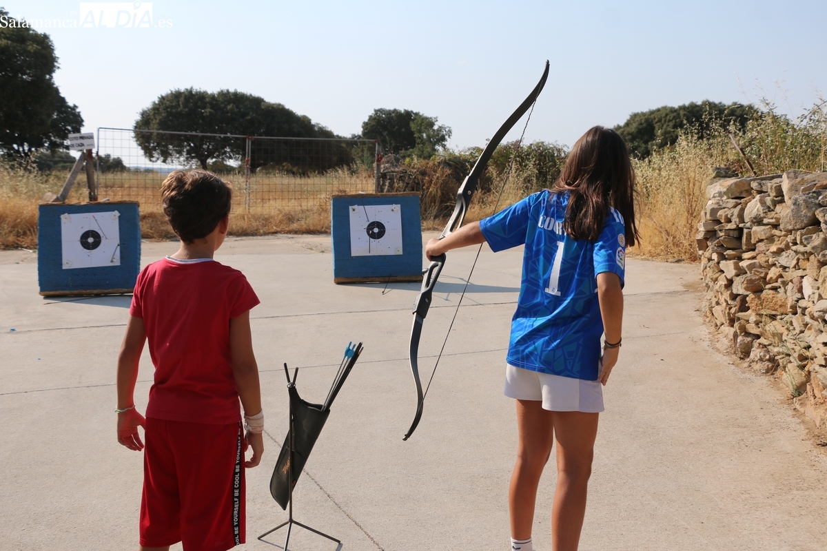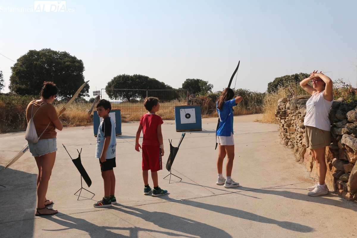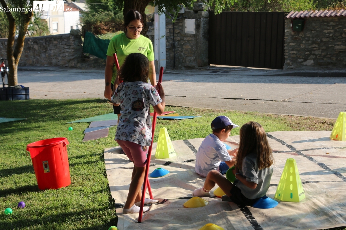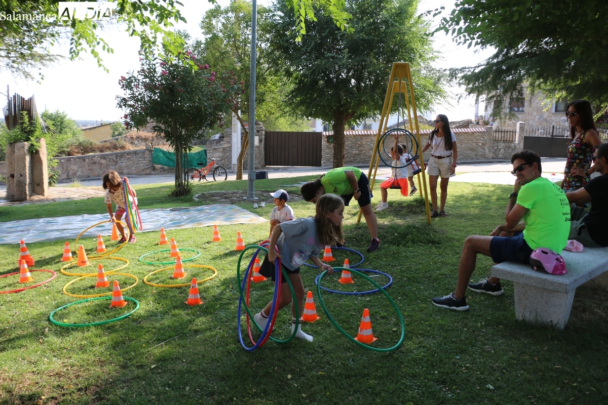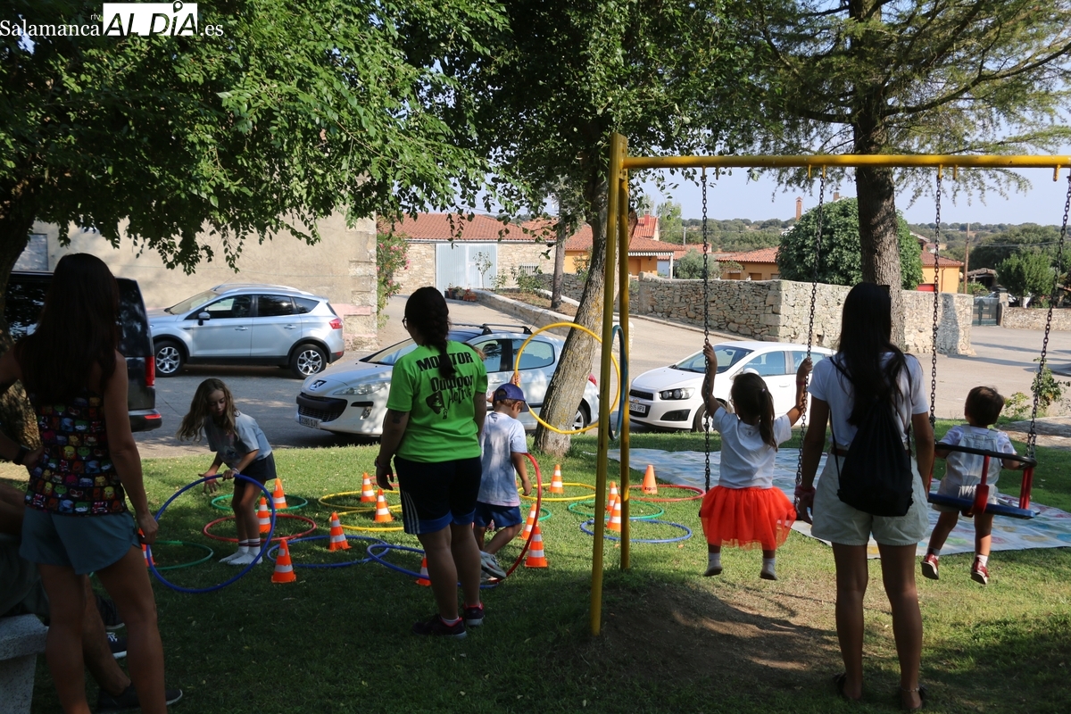 La jornada de este sábado, 23 de agosto, ha tenido como uno de sus platos fuertes el espectacular Parque multiaventura instalado junto a la iglesia. Desde primera hora de la tarde, la adrenalina y la diversión han sido las protagonistas en una cita en la que no faltaron el rocódromo, la tirolina, el tiro con arco y diversos juegos de variantes. Incluso los más metidos en años se atrevieron con el divertido fútbol de burbujas, generando momentos de gran diversión y camaradería entre los participantes.