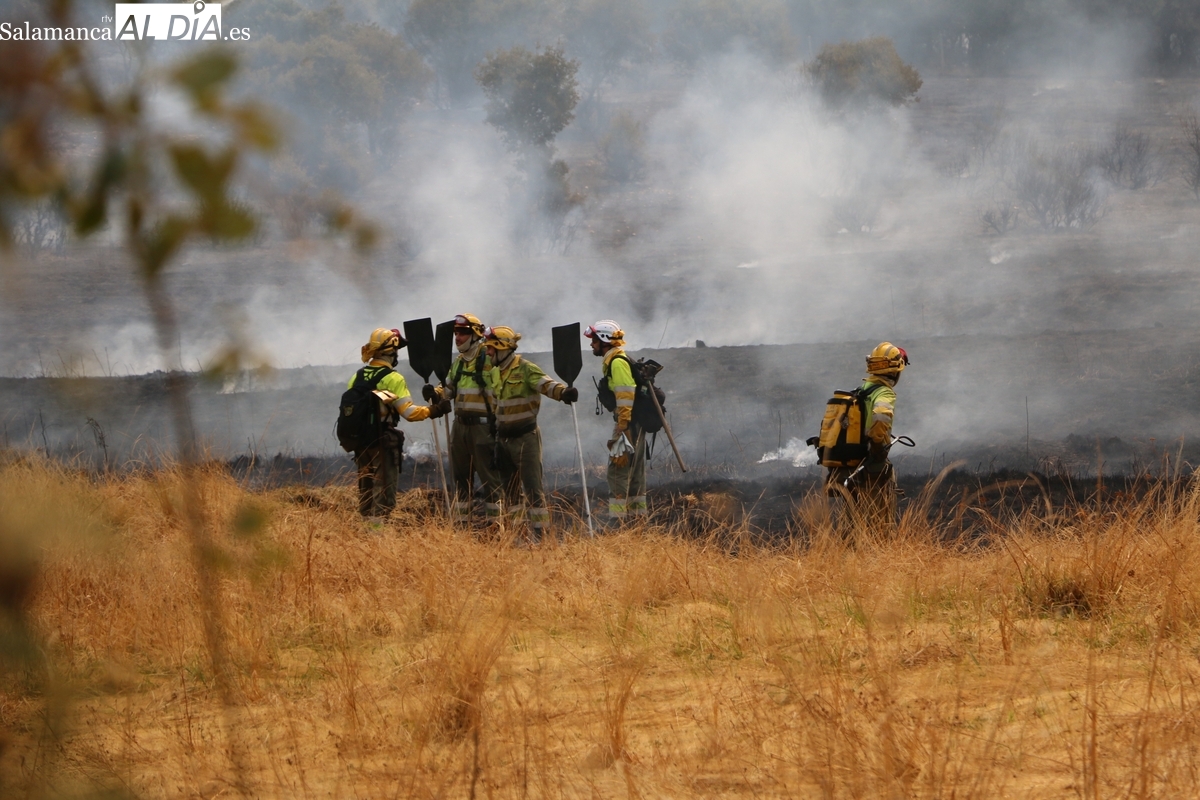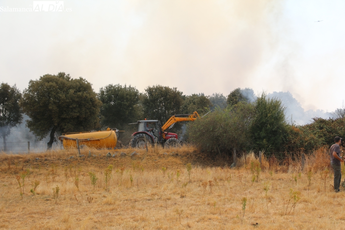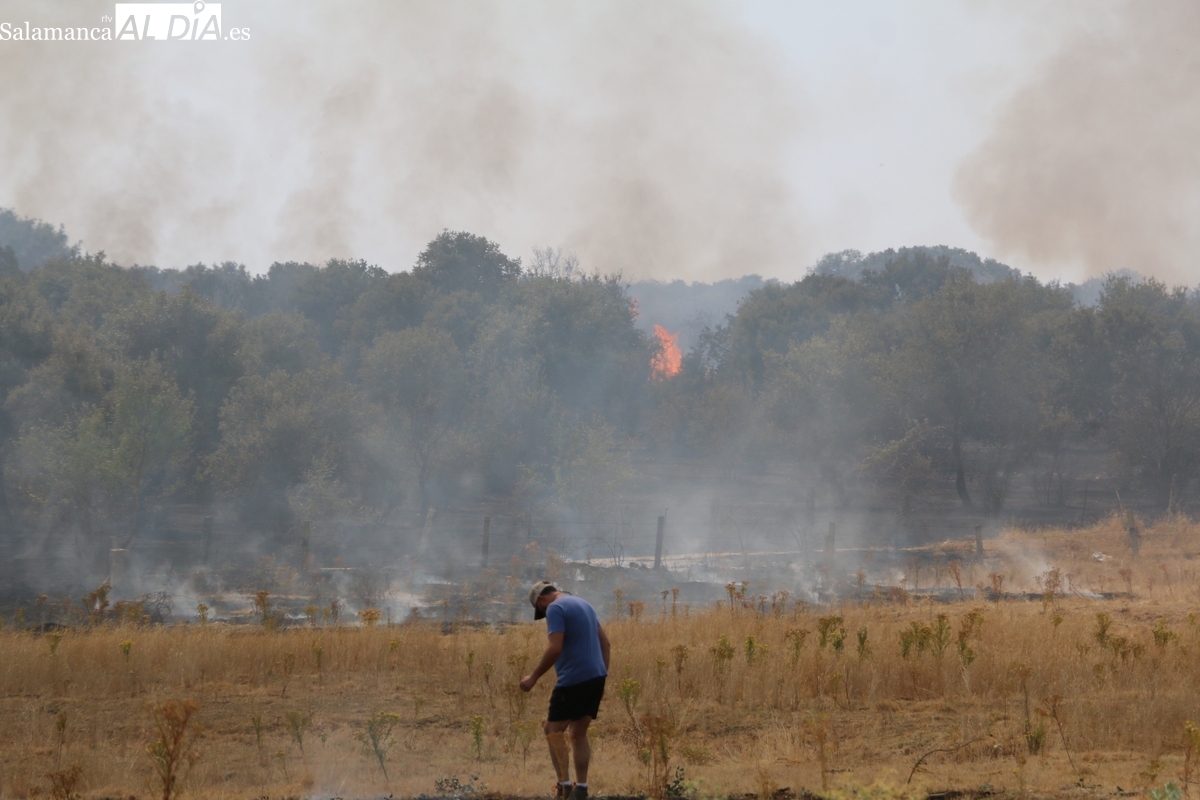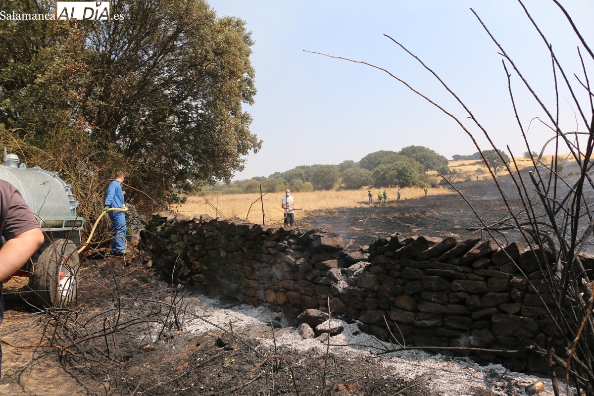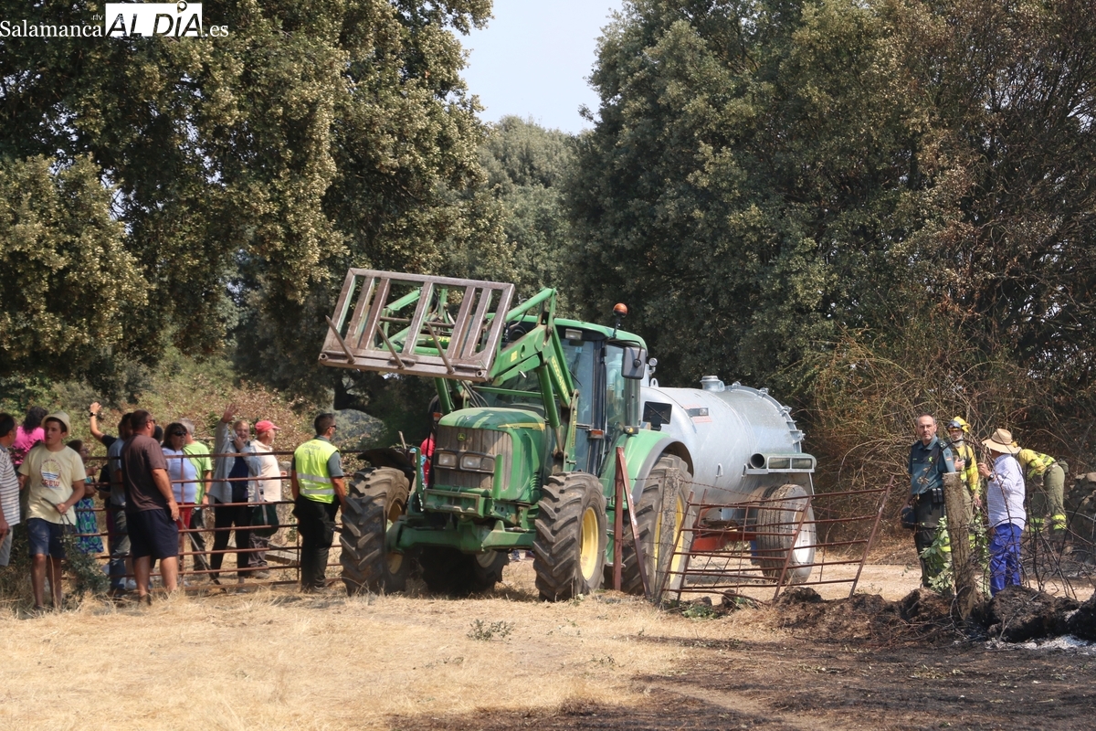 Junto a ellos, se han sumado efectivos de la Guardia Civil y de la agrupación de Protección Civil de Vitigudino, que ayudan en la organización y seguridad del perímetro. Además, ha sido crucial la aportación de varios ganaderos locales, que han acudido con sus tractores equipados con cubas de agua para apoyar las labores de los equipos de extinción y refrescar el terreno. A las dos de la tarde, el fuego estaba prácticamente controlado, pero aún con un foco activo.