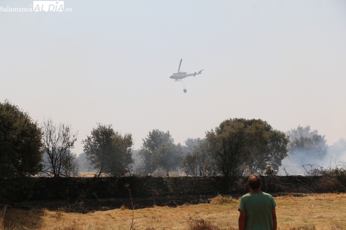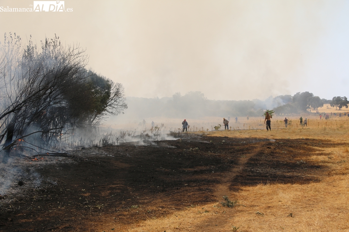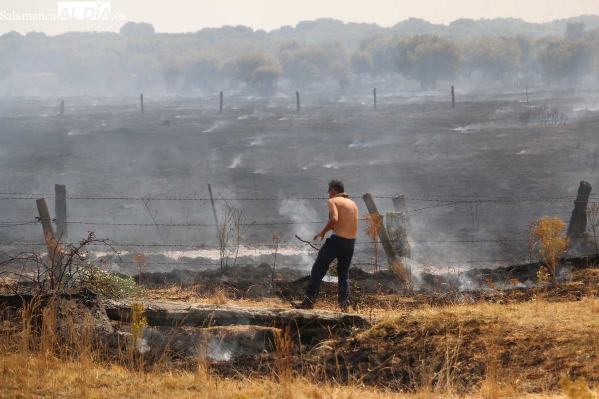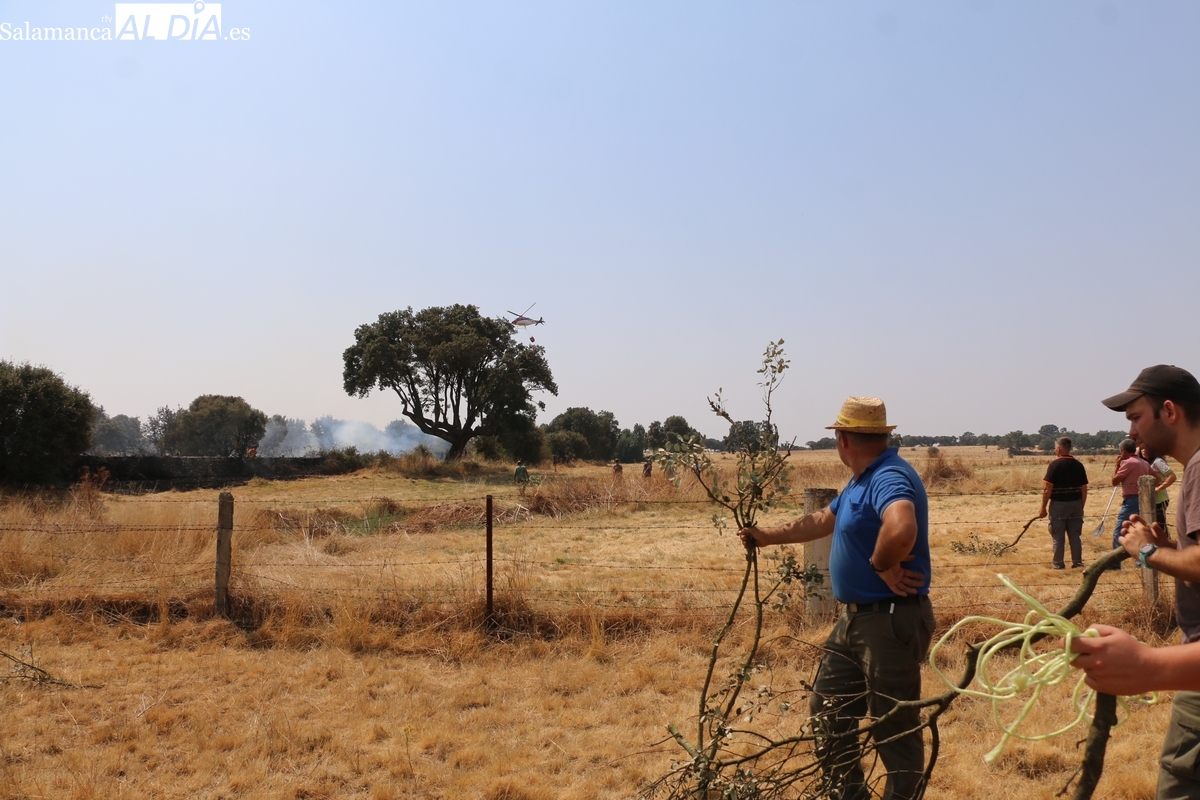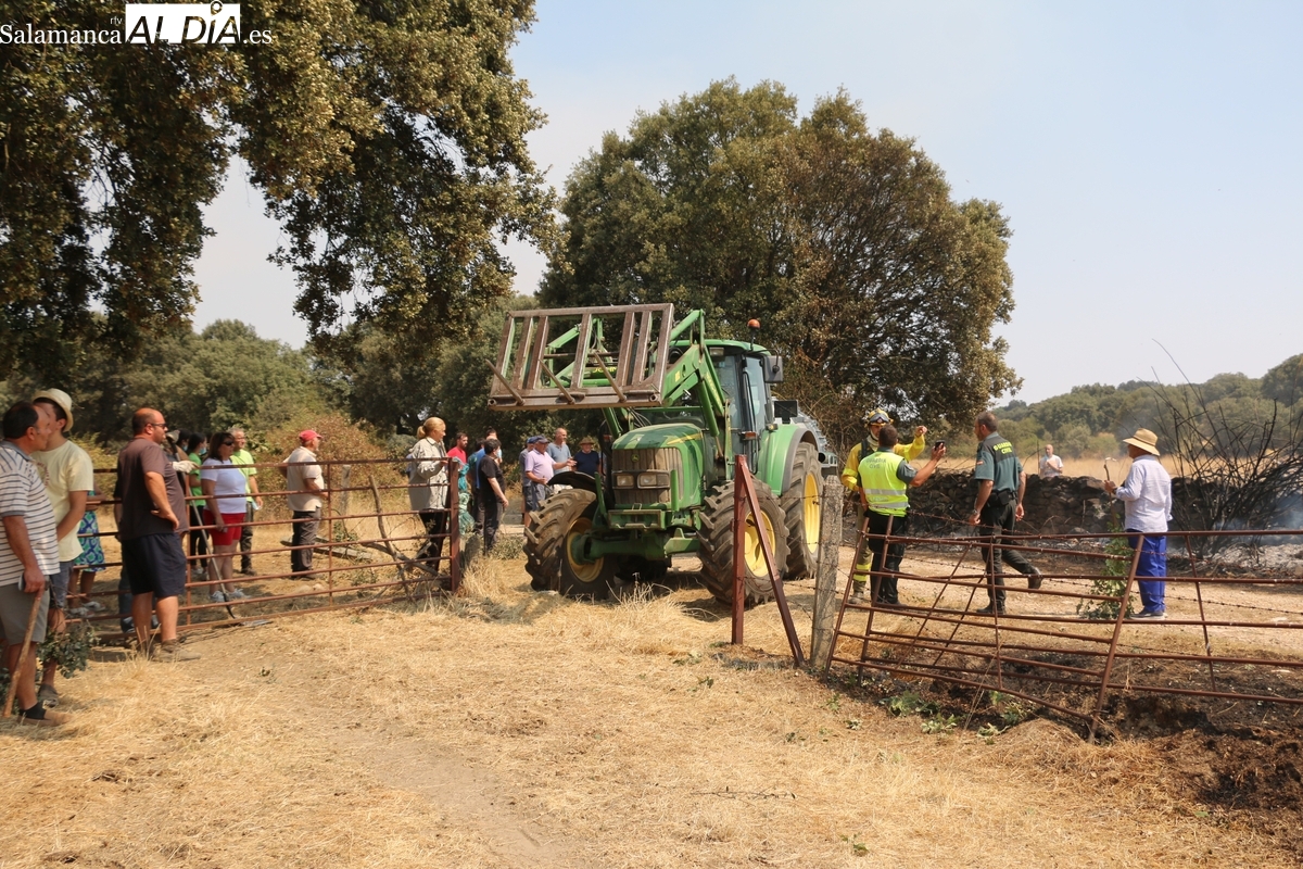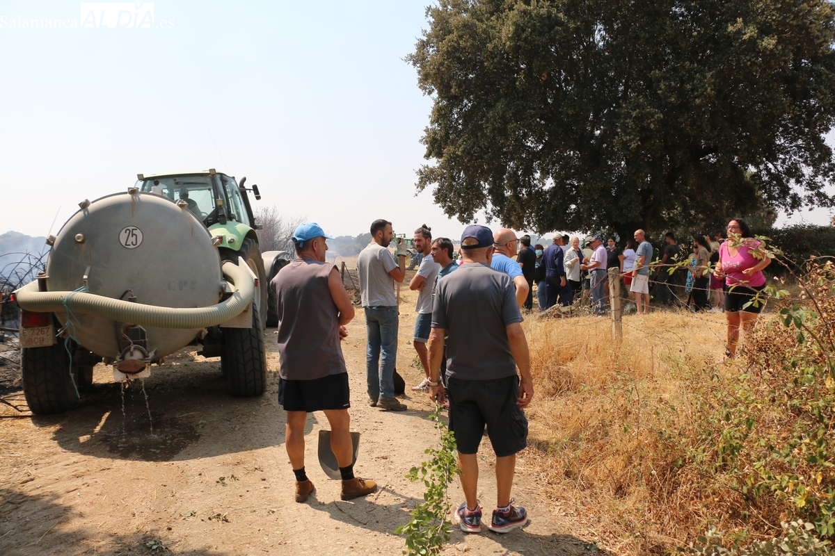 Junto a ellos, se han sumado efectivos de la Guardia Civil y de la agrupación de Protección Civil de Vitigudino, que ayudan en la organización y seguridad del perímetro. Además, ha sido crucial la aportación de varios ganaderos locales, que han acudido con sus tractores equipados con cubas de agua para apoyar las labores de los equipos de extinción y refrescar el terreno. A las dos de la tarde, el fuego estaba prácticamente controlado, pero aún con un foco activo.