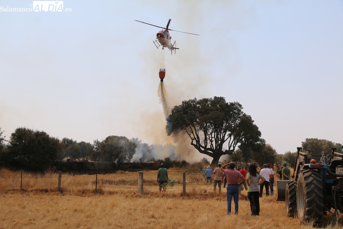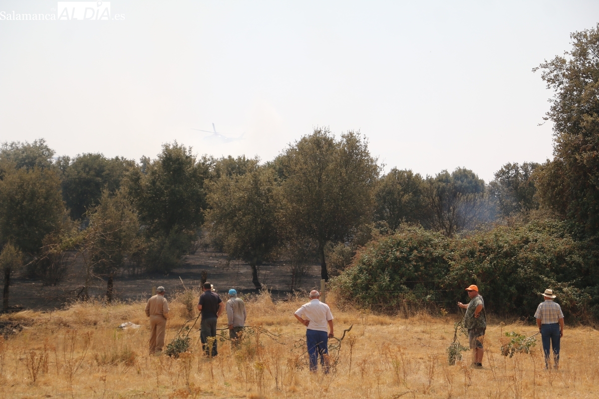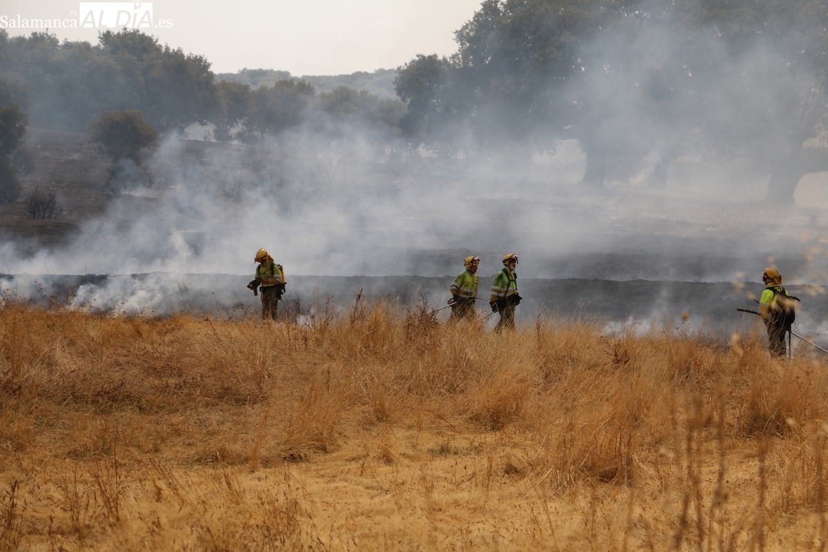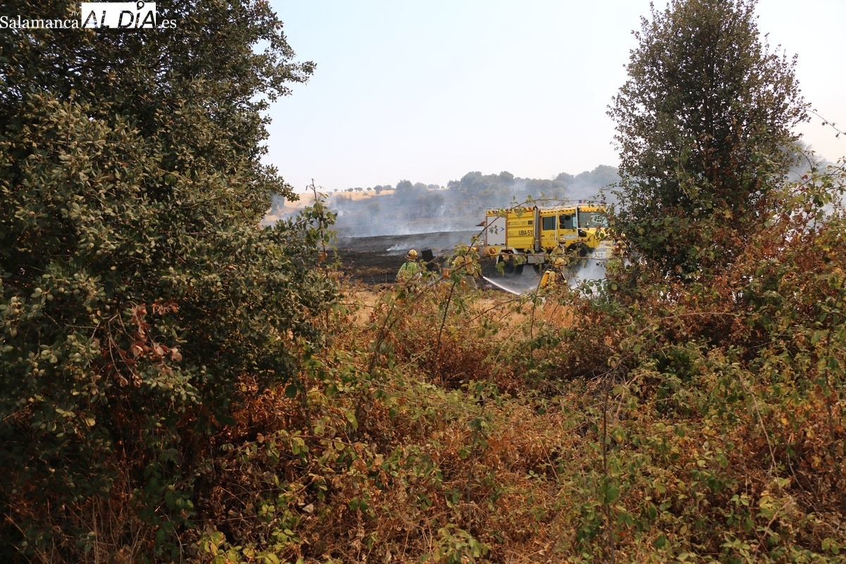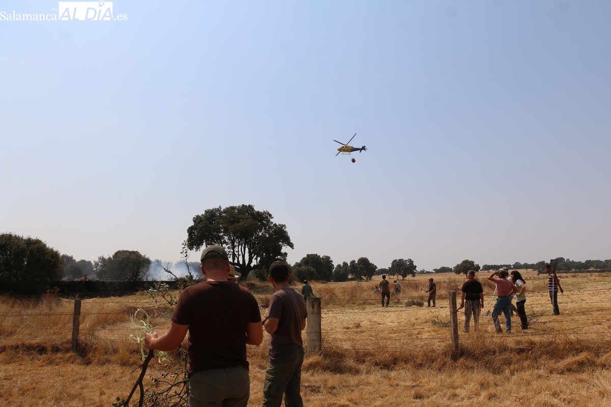 Junto a ellos, se han sumado efectivos de la Guardia Civil y de la agrupación de Protección Civil de Vitigudino, que ayudan en la organización y seguridad del perímetro. Además, ha sido crucial la aportación de varios ganaderos locales, que han acudido con sus tractores equipados con cubas de agua para apoyar las labores de los equipos de extinción y refrescar el terreno. A las dos de la tarde, el fuego estaba prácticamente controlado, pero aún con un foco activo.