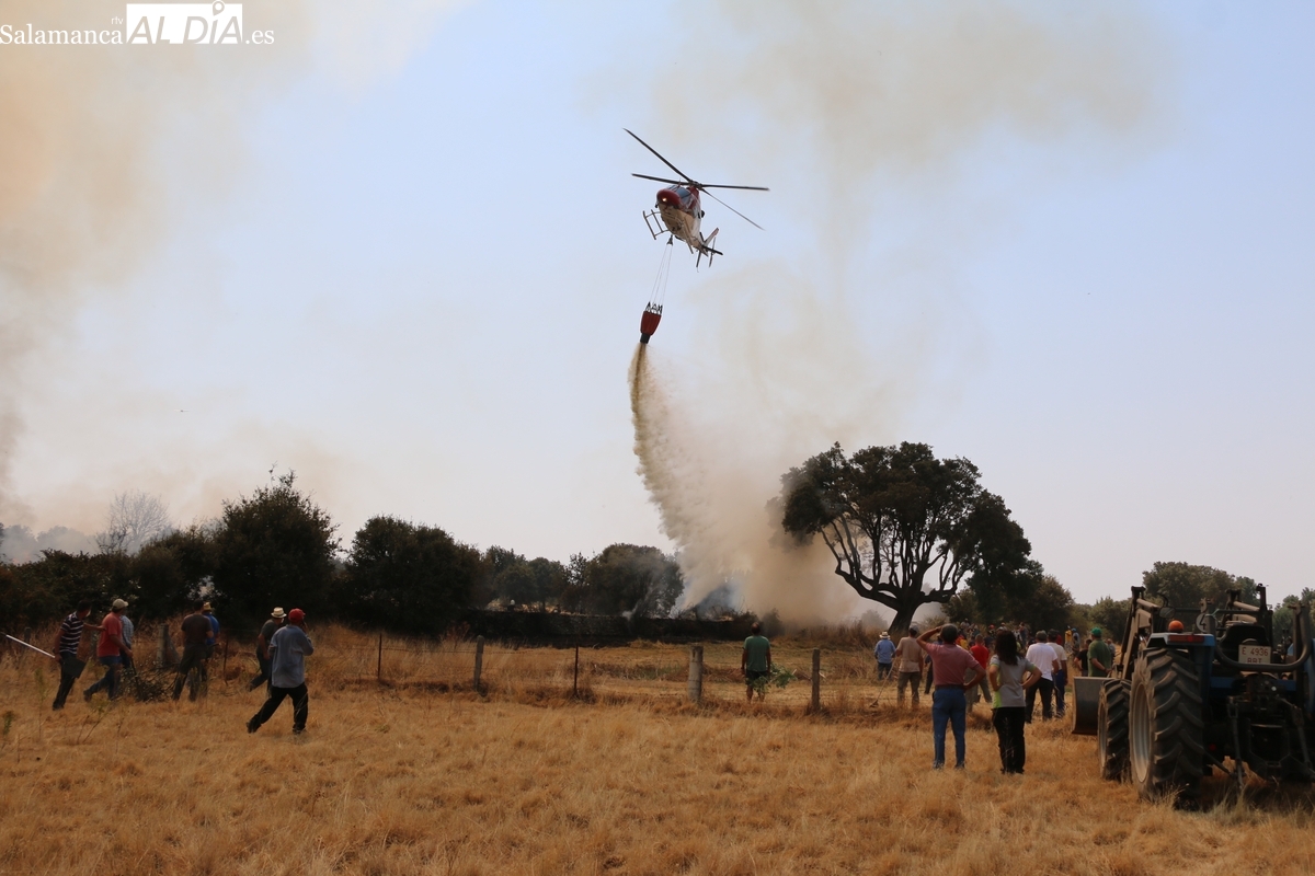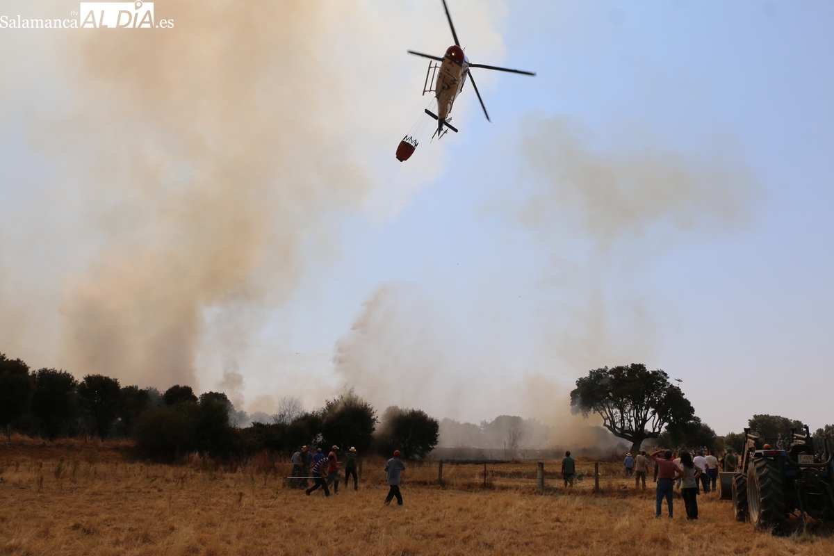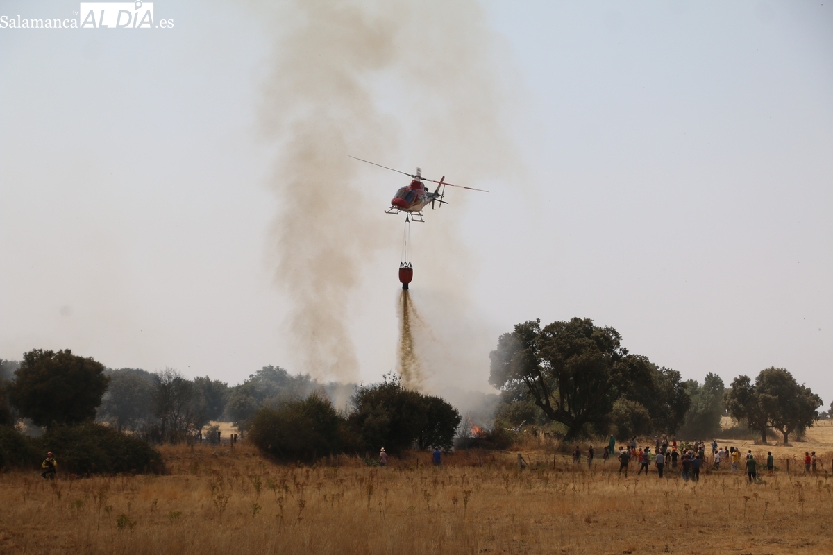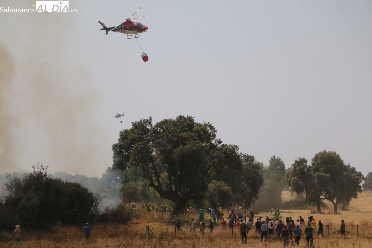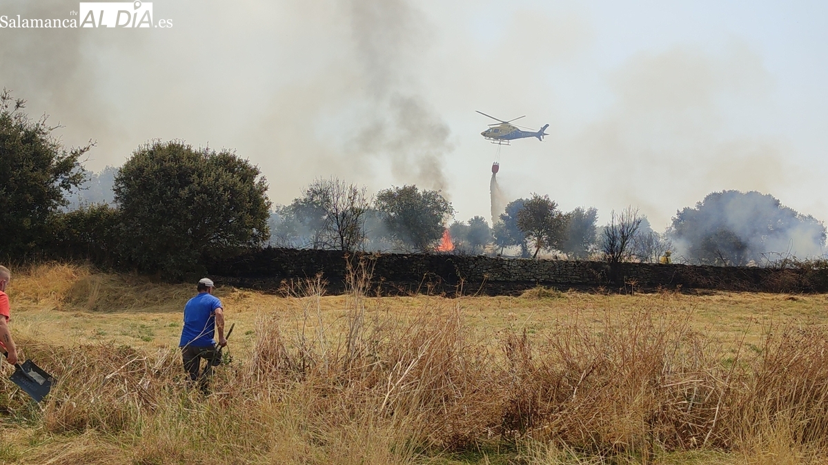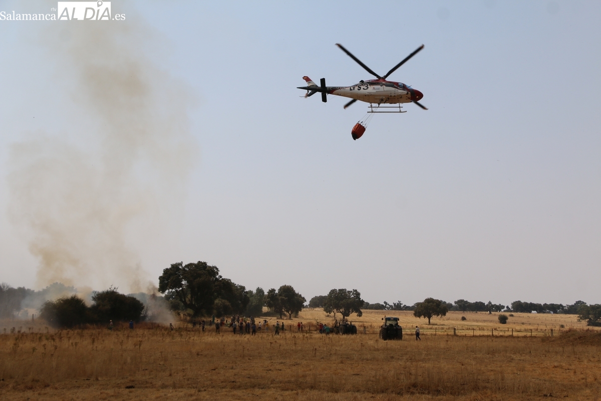 Junto a ellos, se han sumado efectivos de la Guardia Civil y de la agrupación de Protección Civil de Vitigudino, que ayudan en la organización y seguridad del perímetro. Además, ha sido crucial la aportación de varios ganaderos locales, que han acudido con sus tractores equipados con cubas de agua para apoyar las labores de los equipos de extinción y refrescar el terreno. A las dos de la tarde, el fuego estaba prácticamente controlado, pero aún con un foco activo.