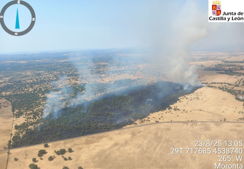 Un incendio forestal declarado este sábado, 23 de agosto, en el término municipal de Moronta ha obligado a activar un importante operativo de extinción y ha generado una notable respuesta ciudadana. El fuego, que se inició a las 12:13 horas, fue declarado de nivel 1 de peligrosidad por la Junta de Castilla y León apenas un cuarto de hora después, a las 12:27 horas, debido a la potencial gravedad y la necesidad de coordinar un amplio despliegue de medios.