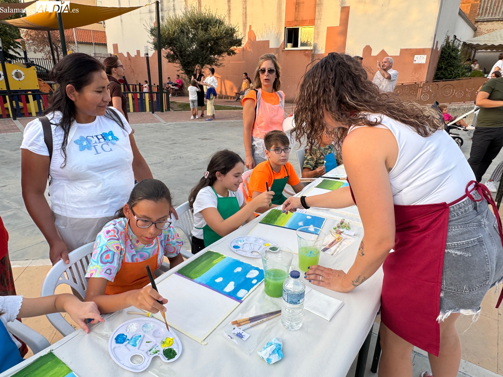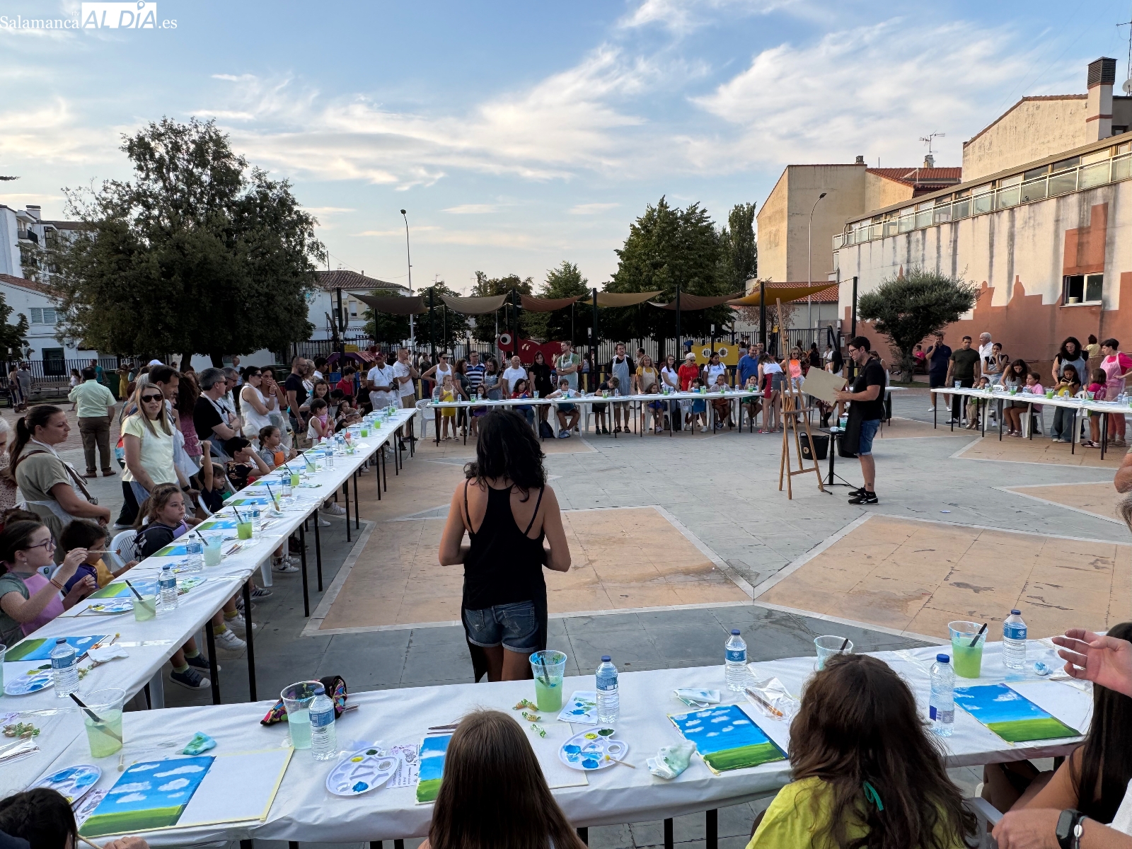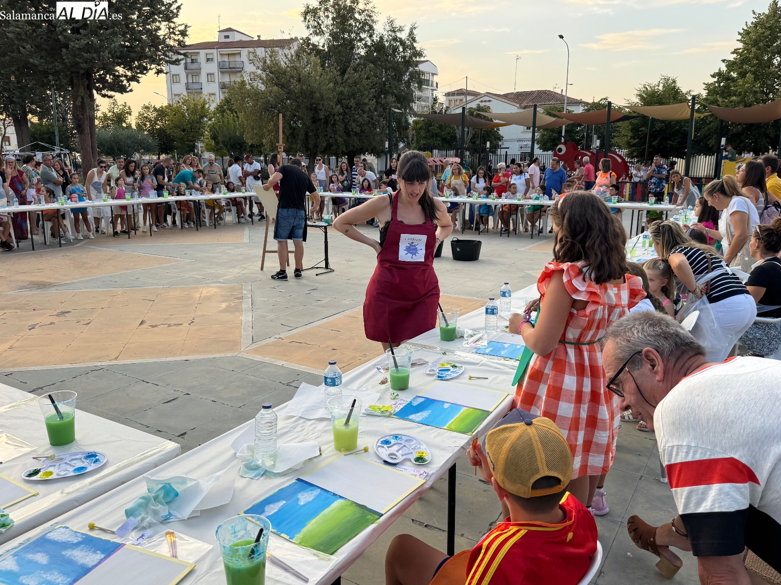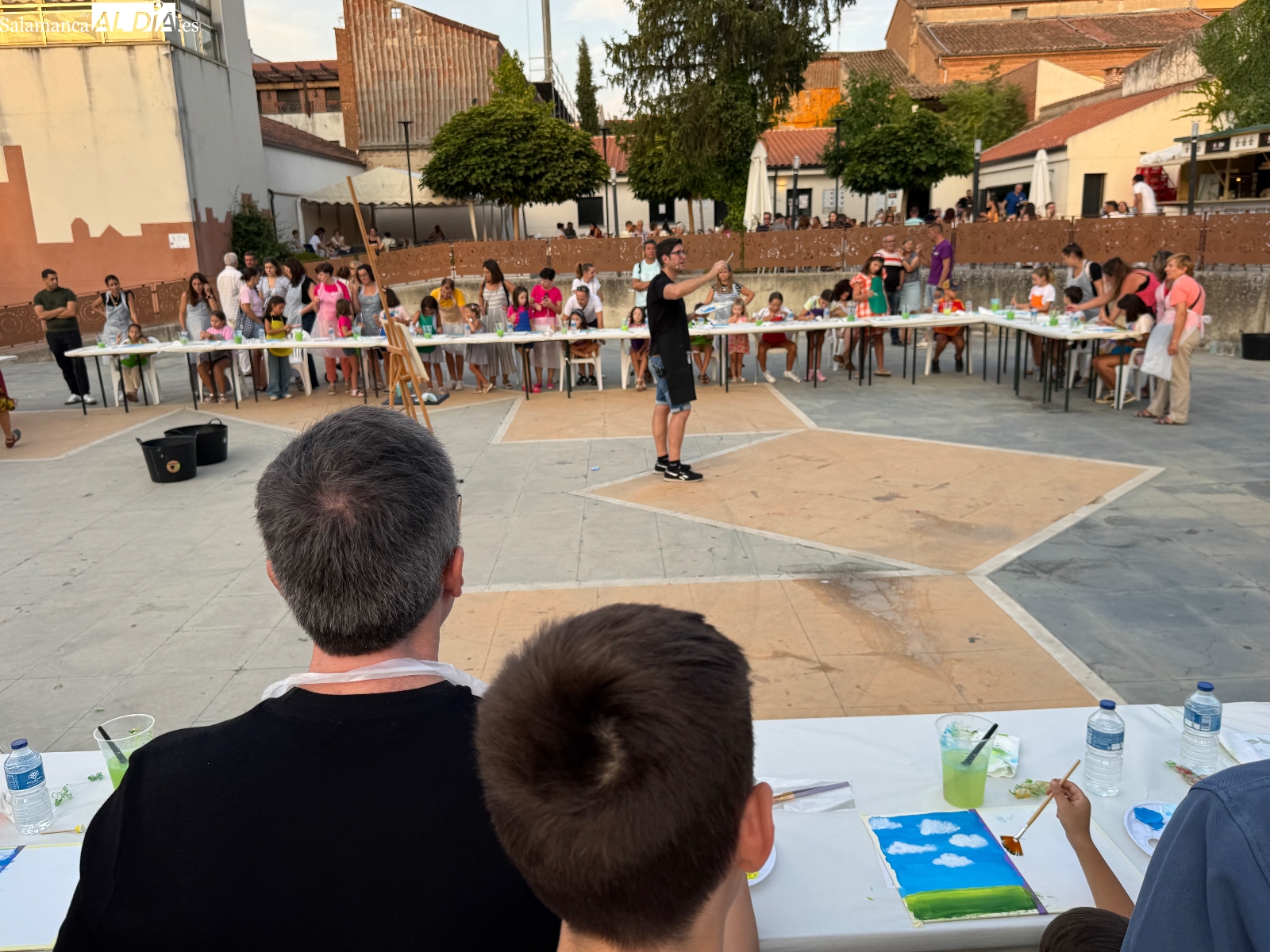 ‘Peñaranda pinta: Lo que la música me cuenta’. Bajo este sugerente título, decenas de pequeños y familias han participado en el Parque La Huerta en una creativa actividad al aire libre, dirigida por el pintor Alberto Sautua, en la que han realizado un lienzo con un paisaje, con los trazos y la imaginación que cada uno de los pequeños ha querido poner en su creación. Una acción cultural novedosa, que ha recibido una gran respuesta vecinal en su estreno dentro del programa de las Ferias y Fiestas.
