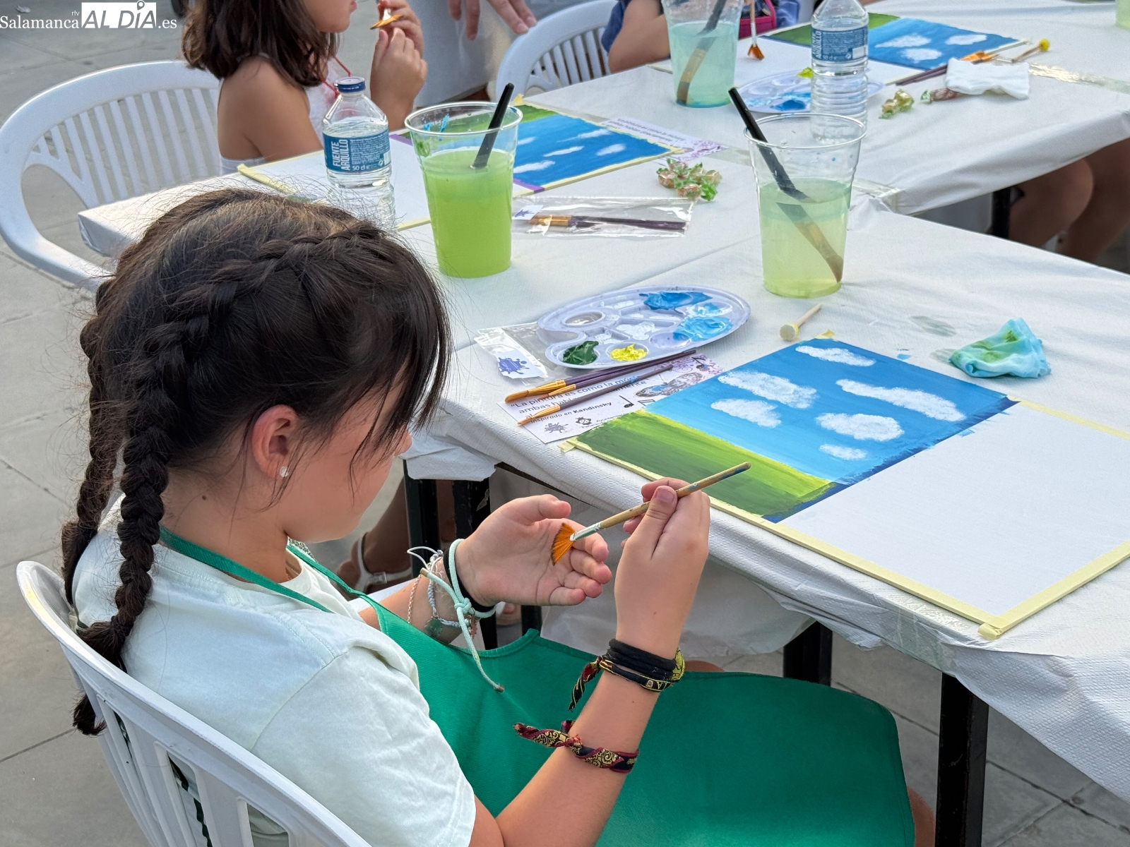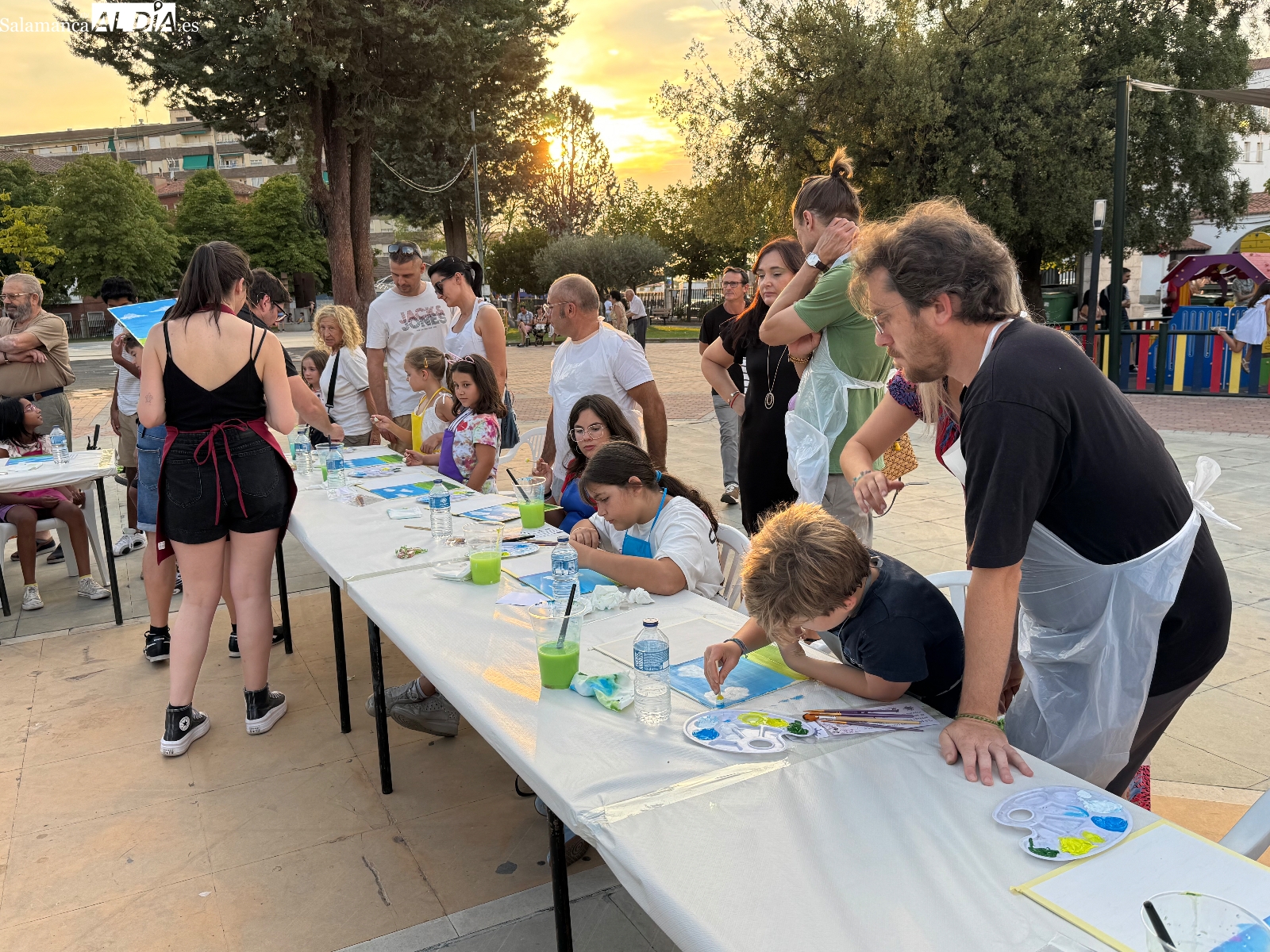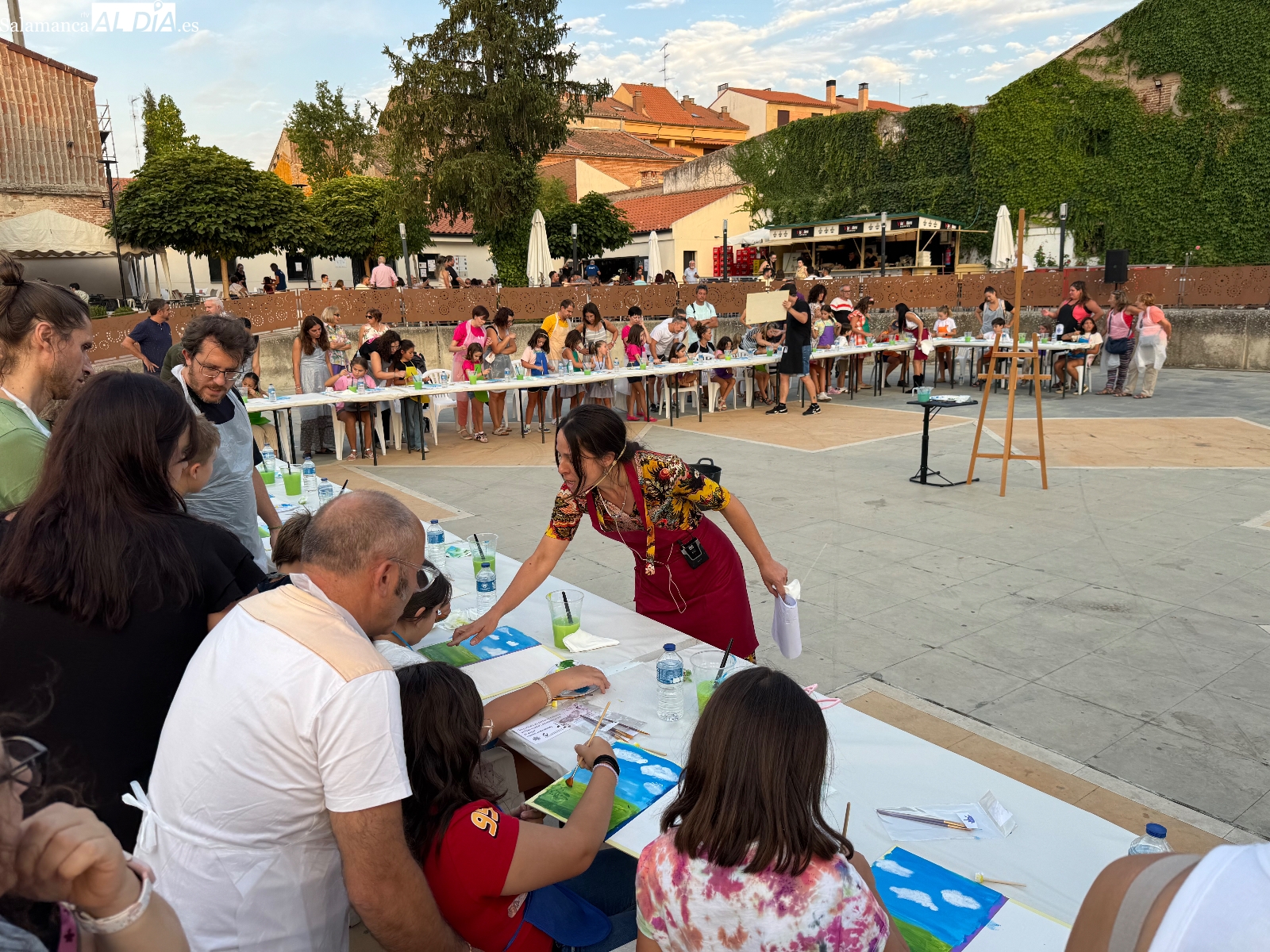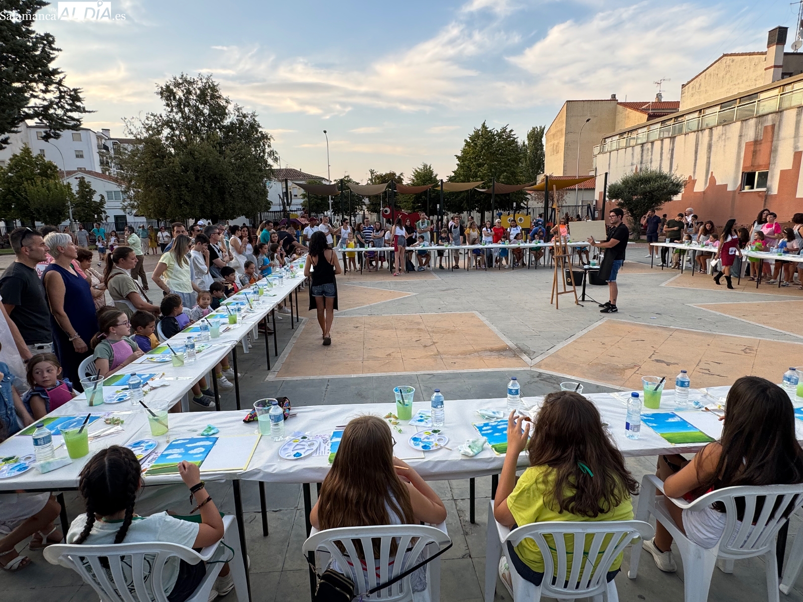 ‘Peñaranda pinta: Lo que la música me cuenta’. Bajo este sugerente título, decenas de pequeños y familias han participado en el Parque La Huerta en una creativa actividad al aire libre, dirigida por el pintor Alberto Sautua, en la que han realizado un lienzo con un paisaje, con los trazos y la imaginación que cada uno de los pequeños ha querido poner en su creación. Una acción cultural novedosa, que ha recibido una gran respuesta vecinal en su estreno dentro del programa de las Ferias y Fiestas.