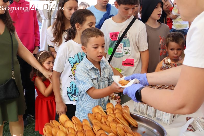 Los más pequeños disfrutaron de batido de chocolate, bizcochos y un recorrido novedoso con refrescante final de agua