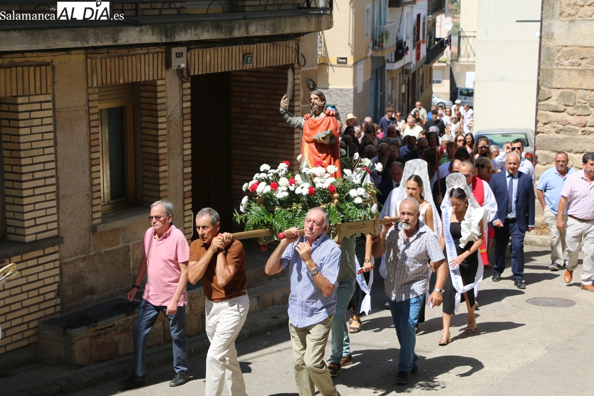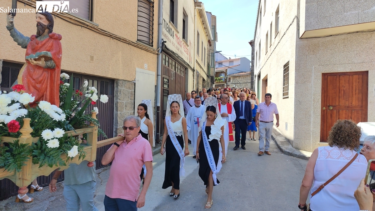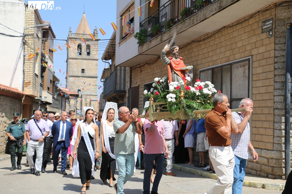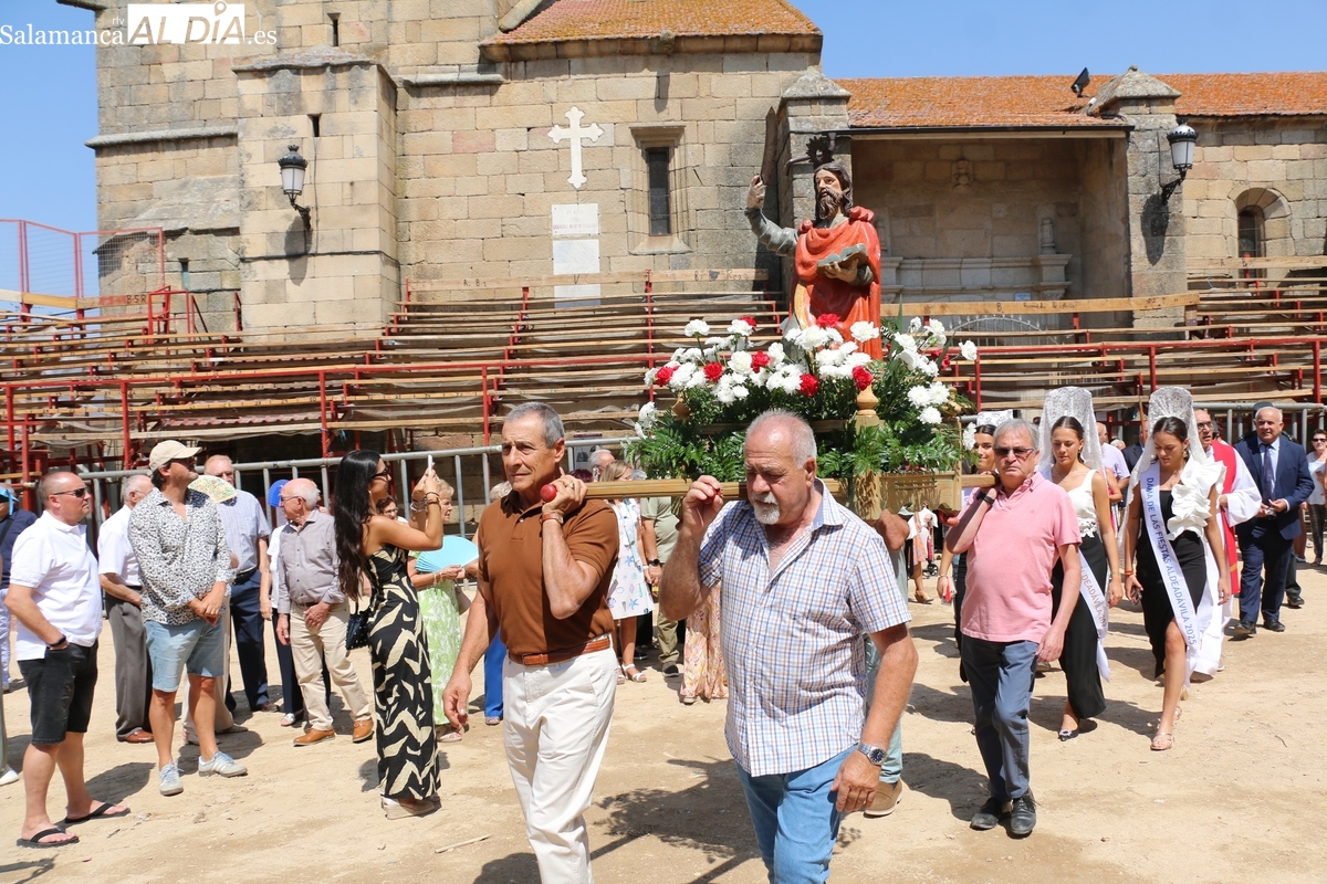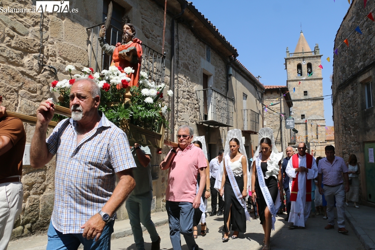 Como marca la tradición cada 24 de agosto, la localidad de Aldeadávila de la Ribera ha celebrado el día grande de sus fiestas en honor a San Bartolomé. El santo patrón recorrió las calles del municipio en una solemne procesión, arropado por la devoción de sus vecinos y la deslumbrante presencia de la corte de honor.