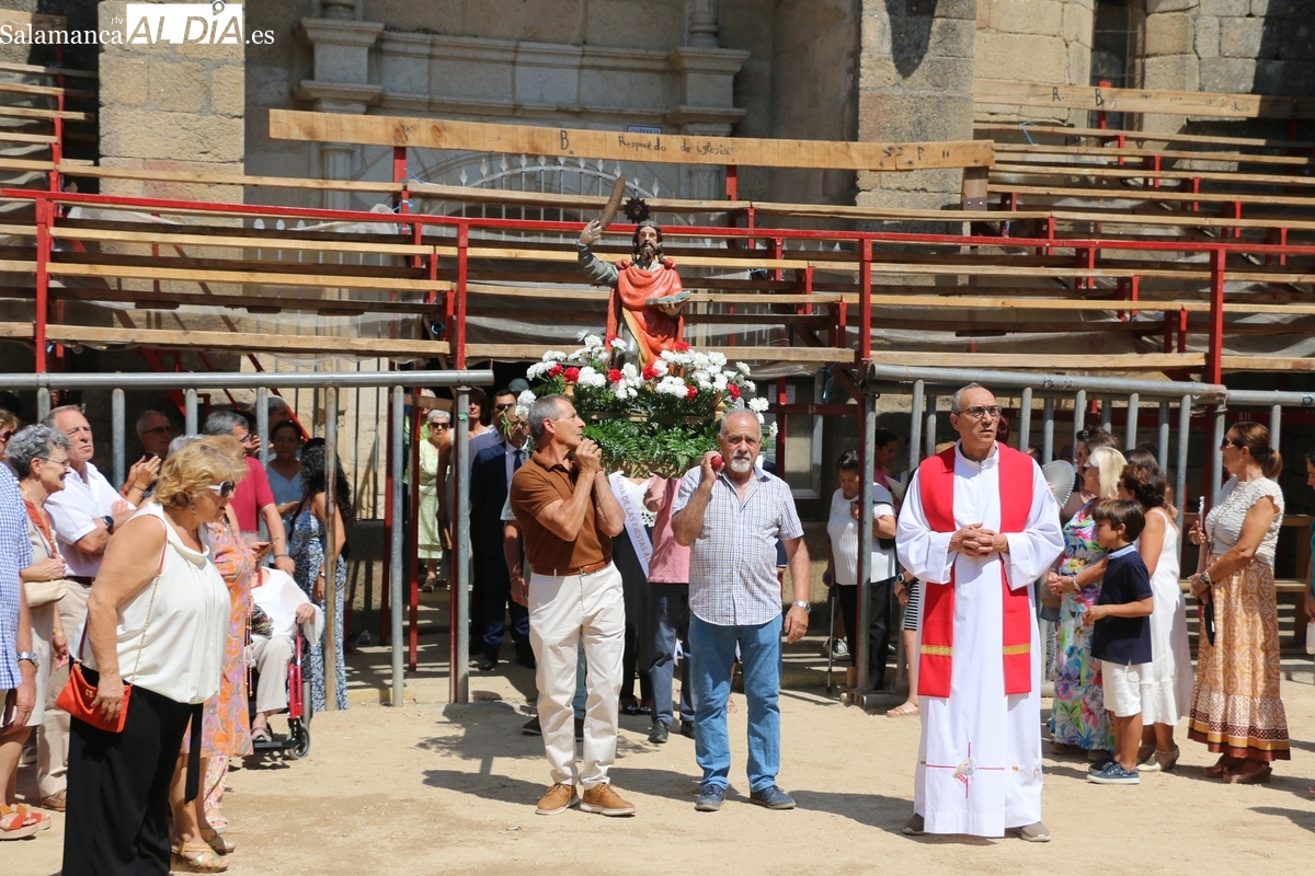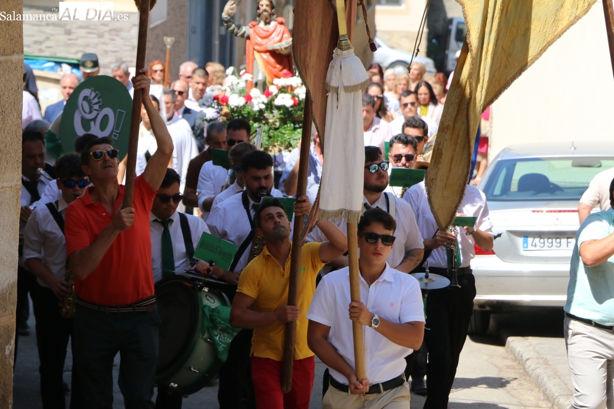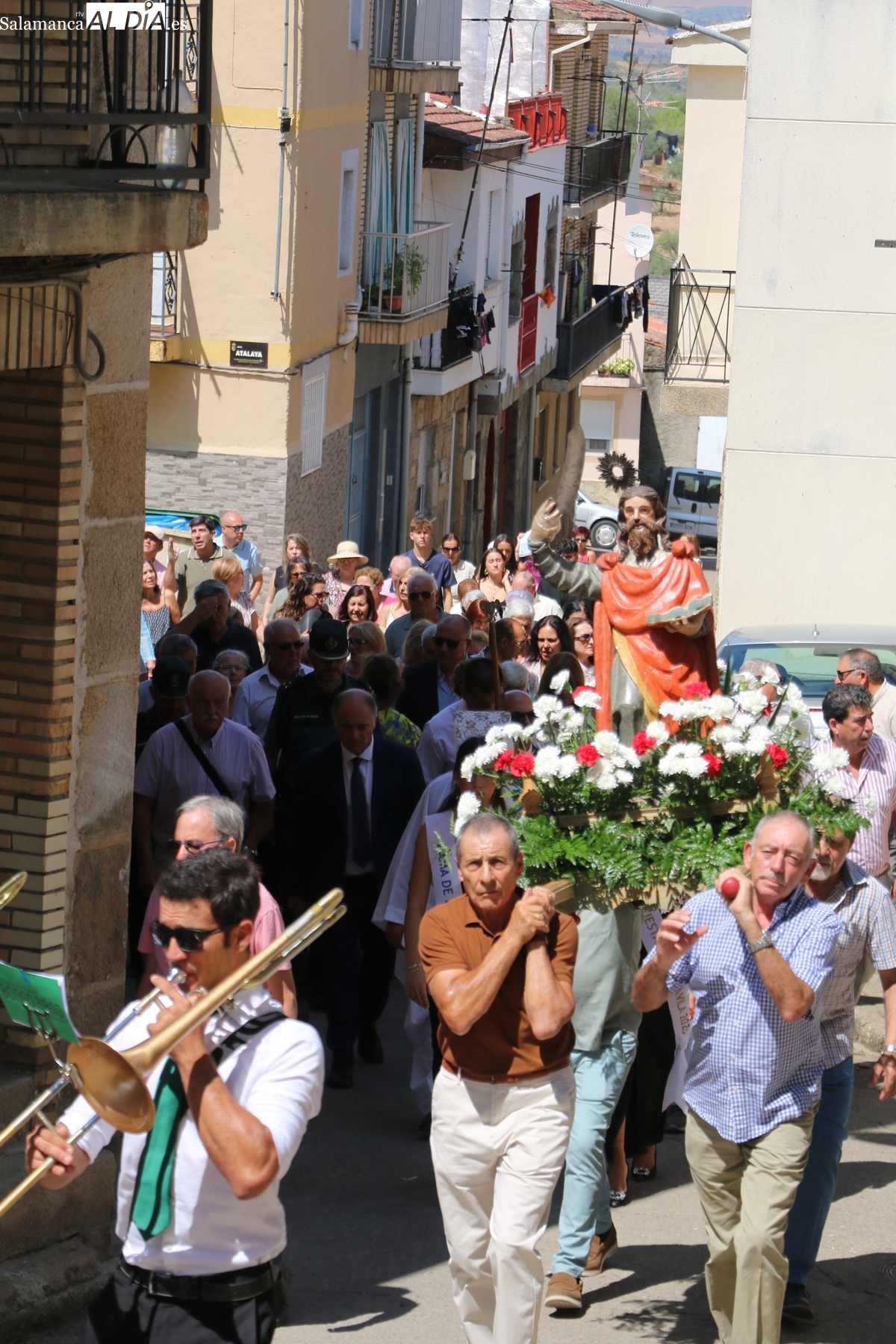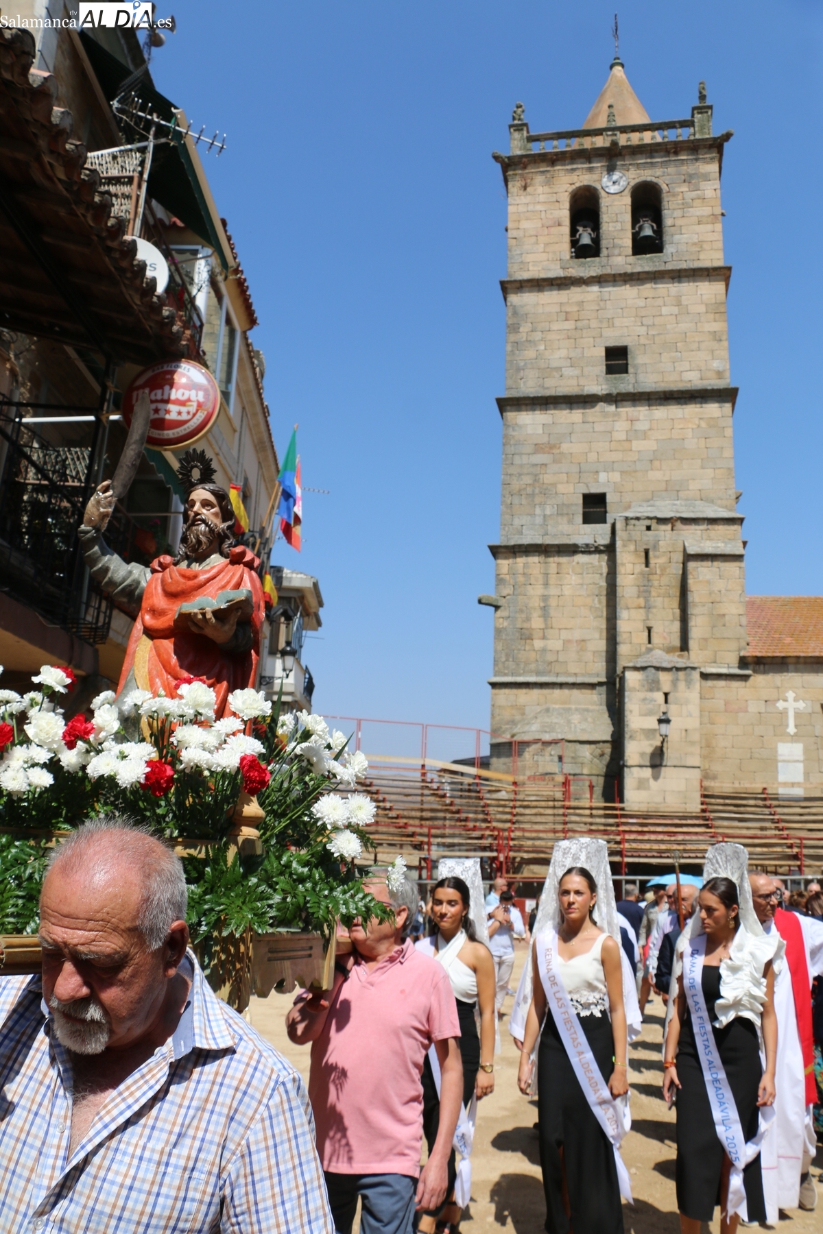 Como marca la tradición cada 24 de agosto, la localidad de Aldeadávila de la Ribera ha celebrado el día grande de sus fiestas en honor a San Bartolomé. El santo patrón recorrió las calles del municipio en una solemne procesión, arropado por la devoción de sus vecinos y la deslumbrante presencia de la corte de honor.