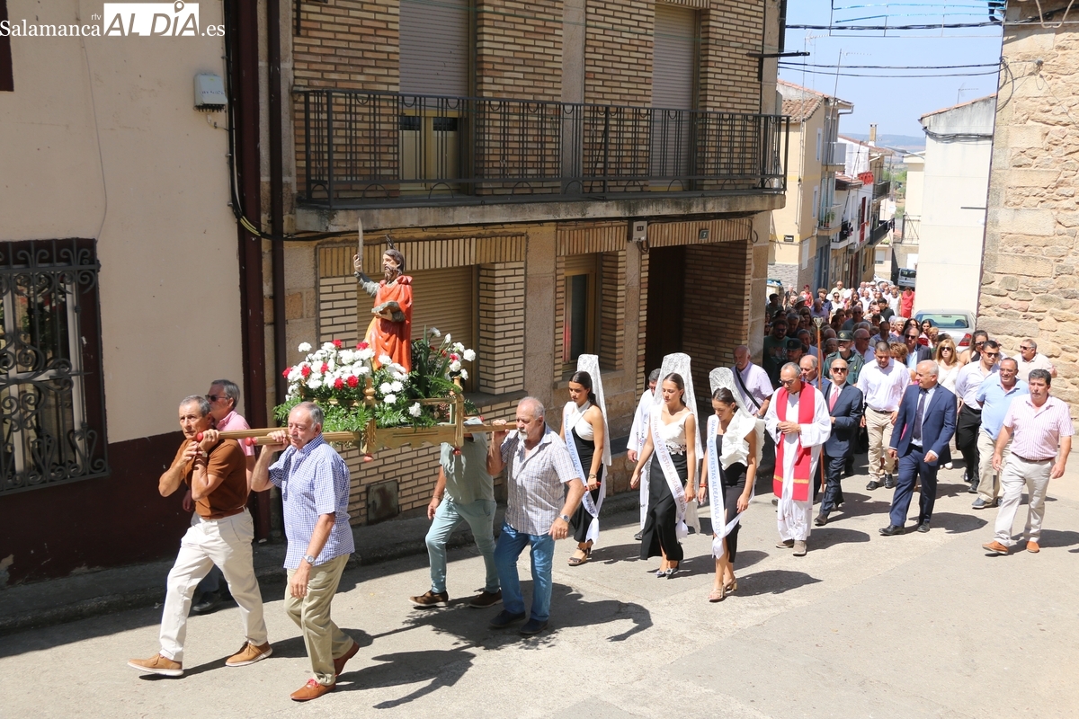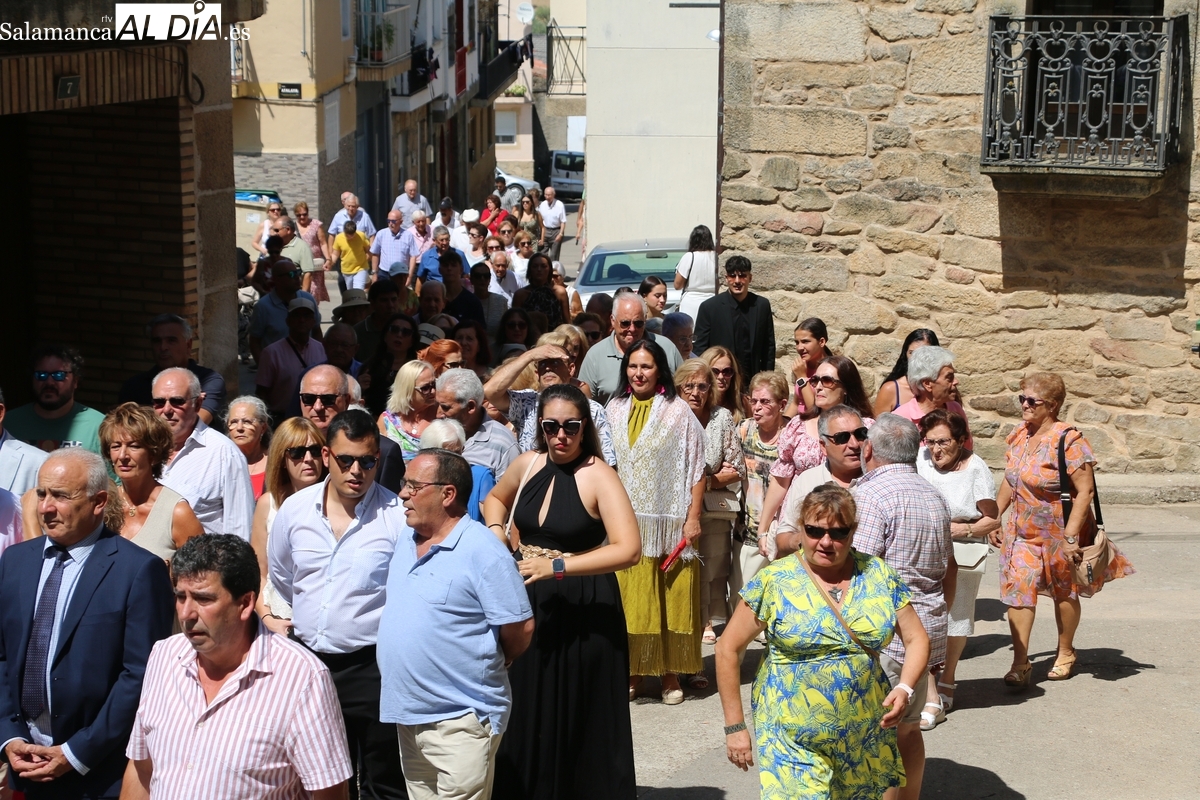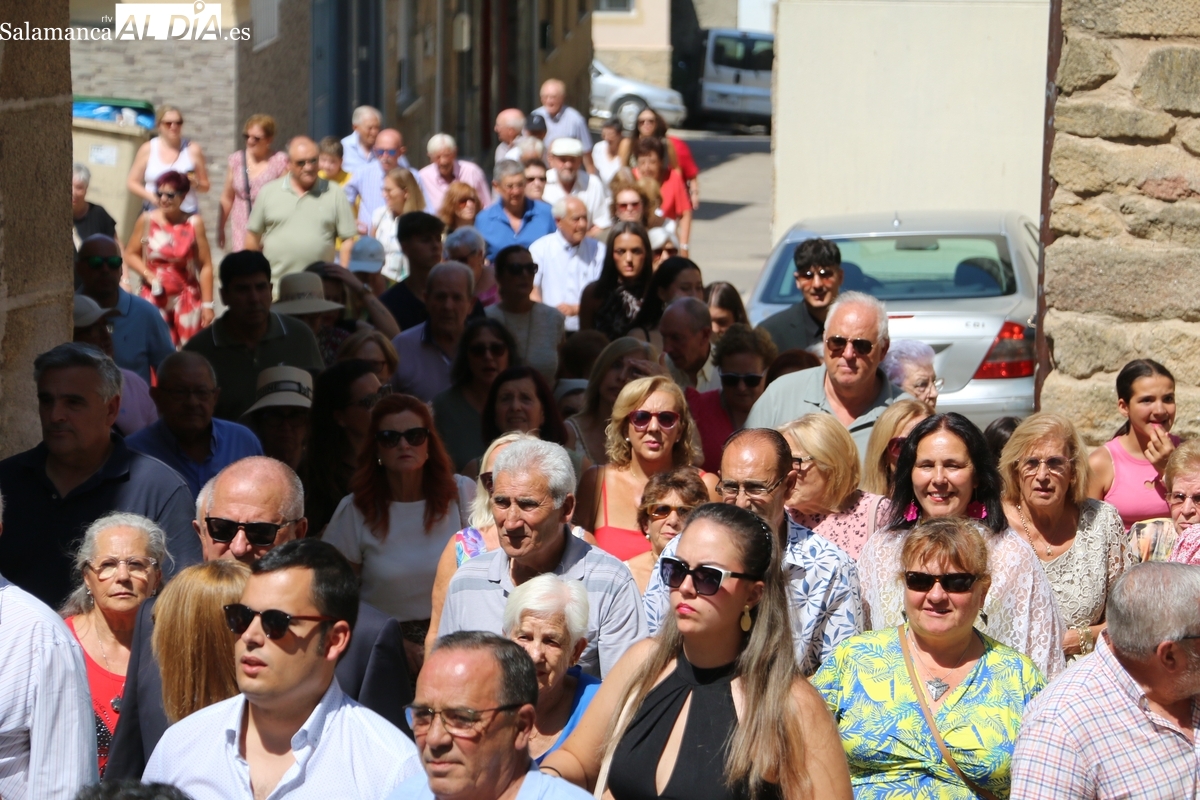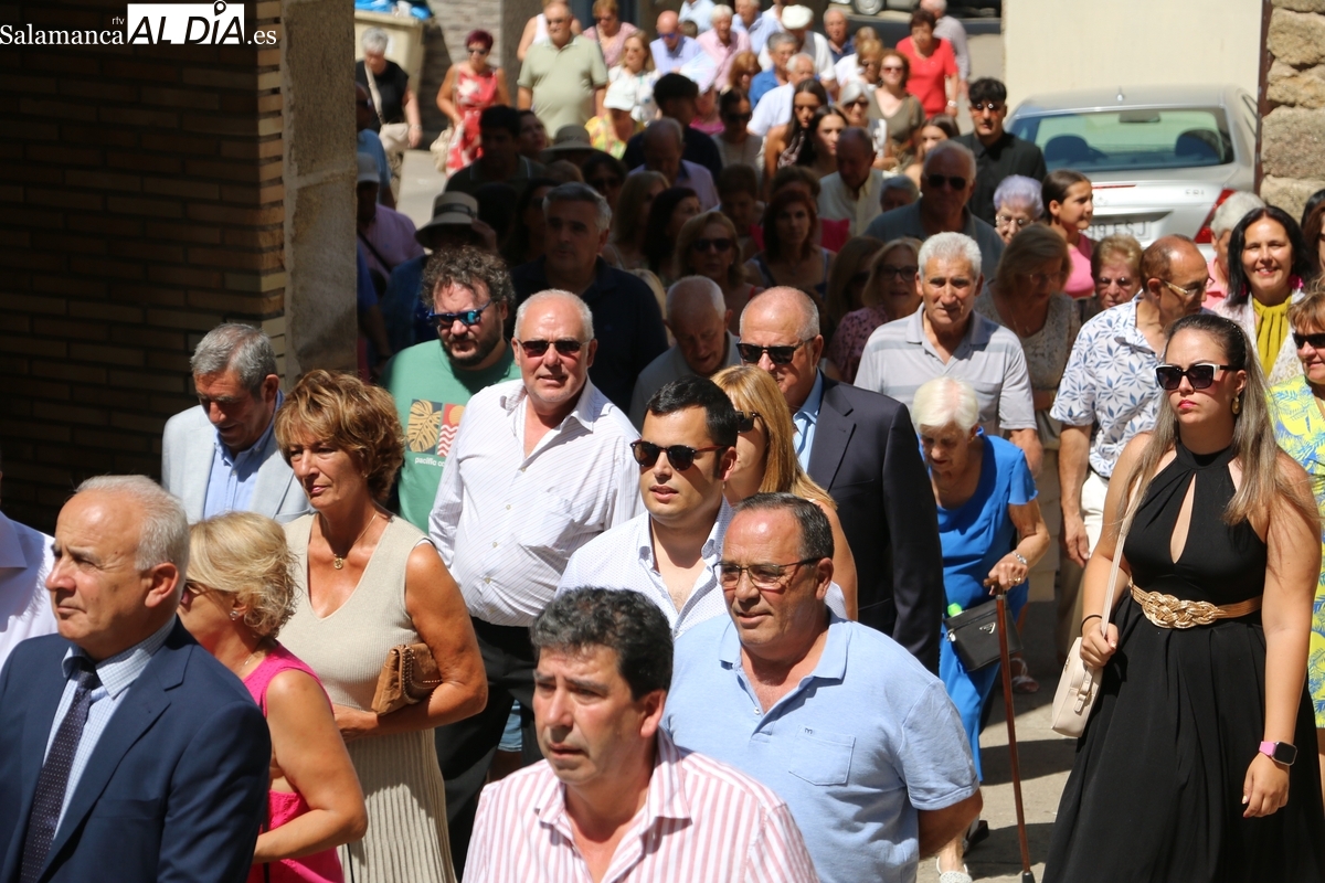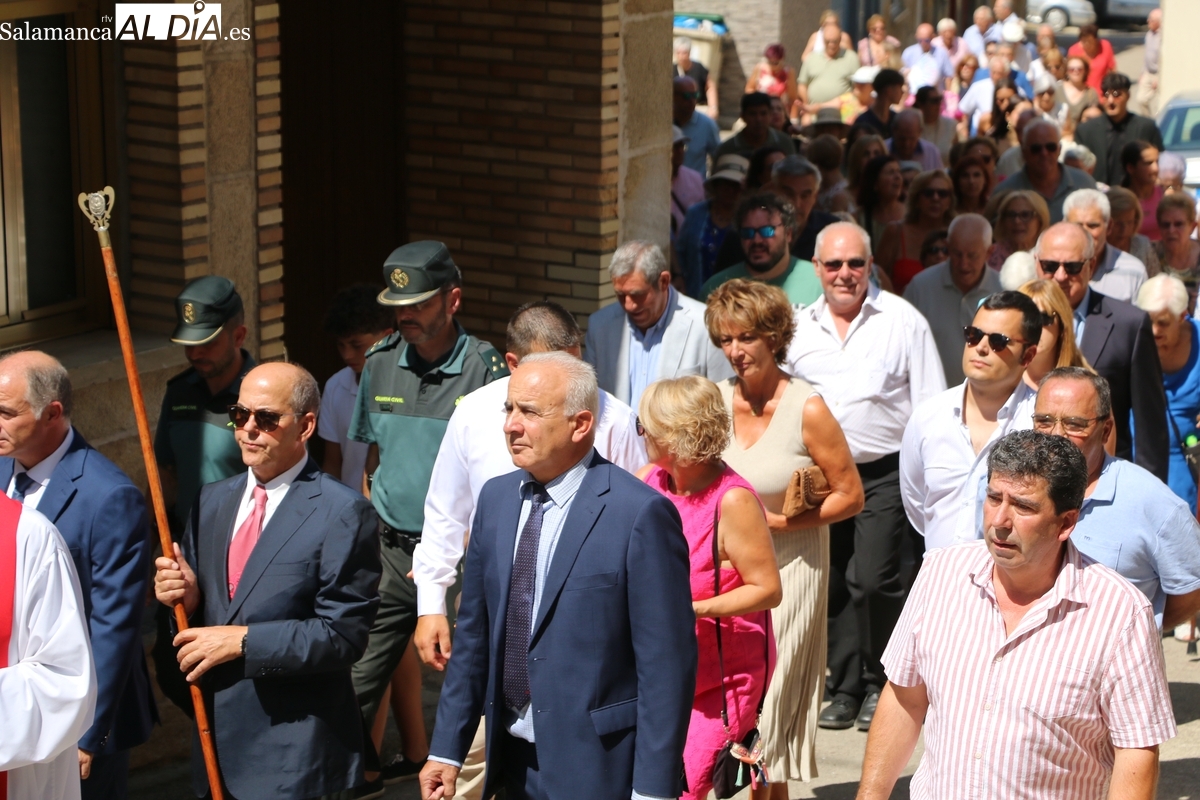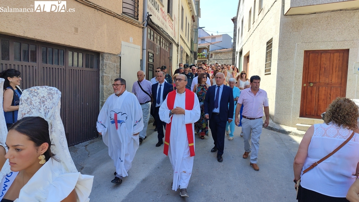 La reina de las fiestas, Cayetana Andrés, junto a sus damas, Olaia Casado y Candela Andrés, aportaron un toque de elegancia y juventud al desfile religioso. El acto principal del día comenzó tras la misa oficiada por el párroco Alberto Holgado acompañado del sacerdote local Pedro Fernández Alejo.