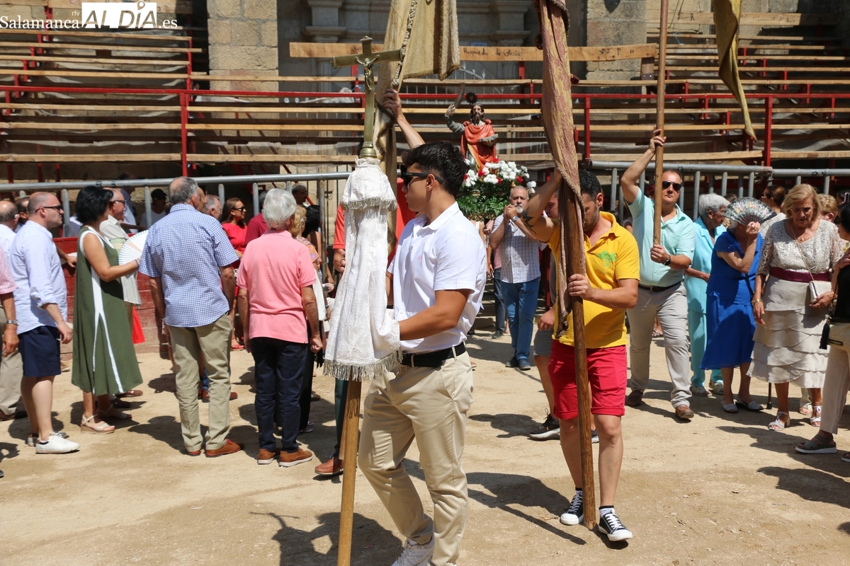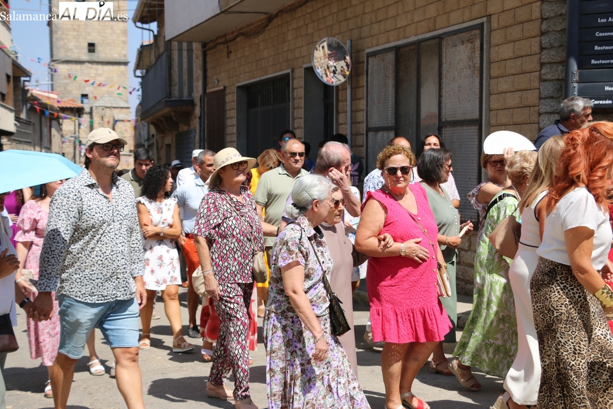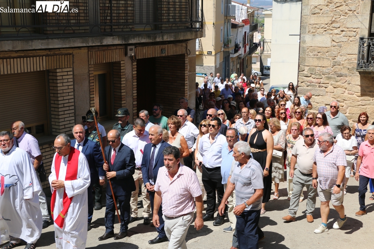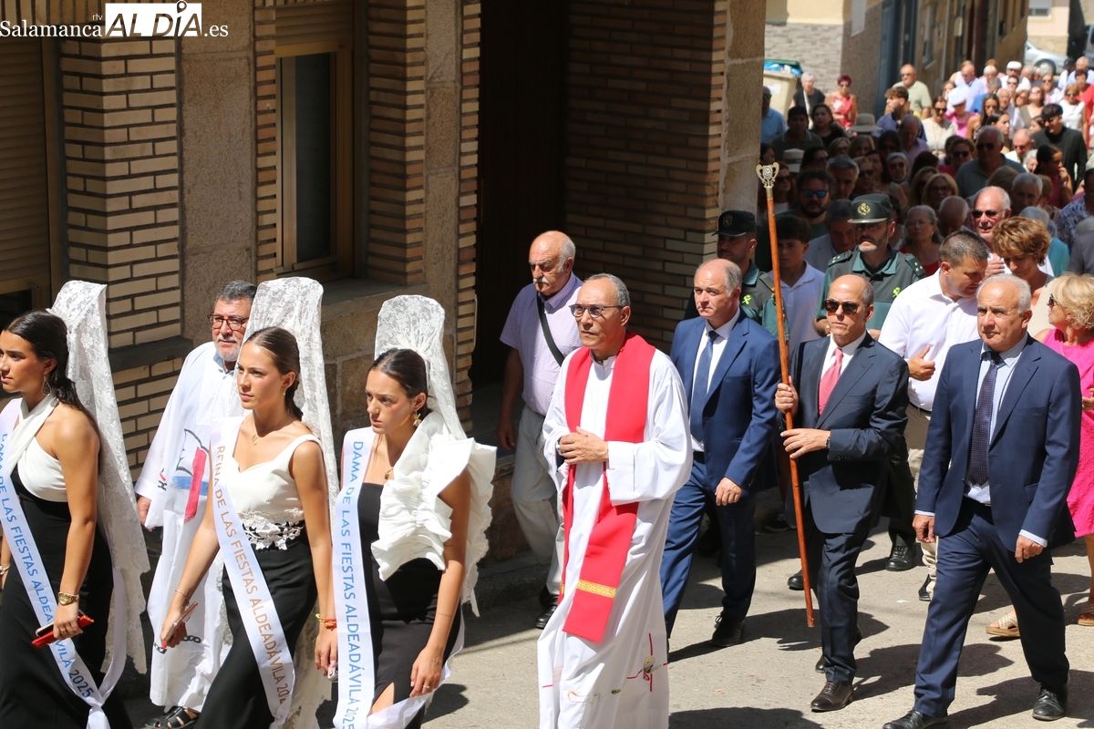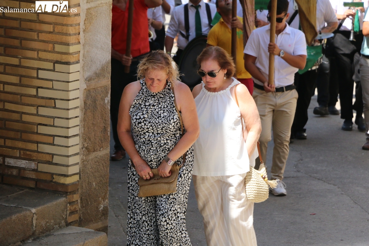 La reina de las fiestas, Cayetana Andrés, junto a sus damas, Olaia Casado y Candela Andrés, aportaron un toque de elegancia y juventud al desfile religioso. El acto principal del día comenzó tras la misa oficiada por el párroco Alberto Holgado acompañado del sacerdote local Pedro Fernández Alejo.