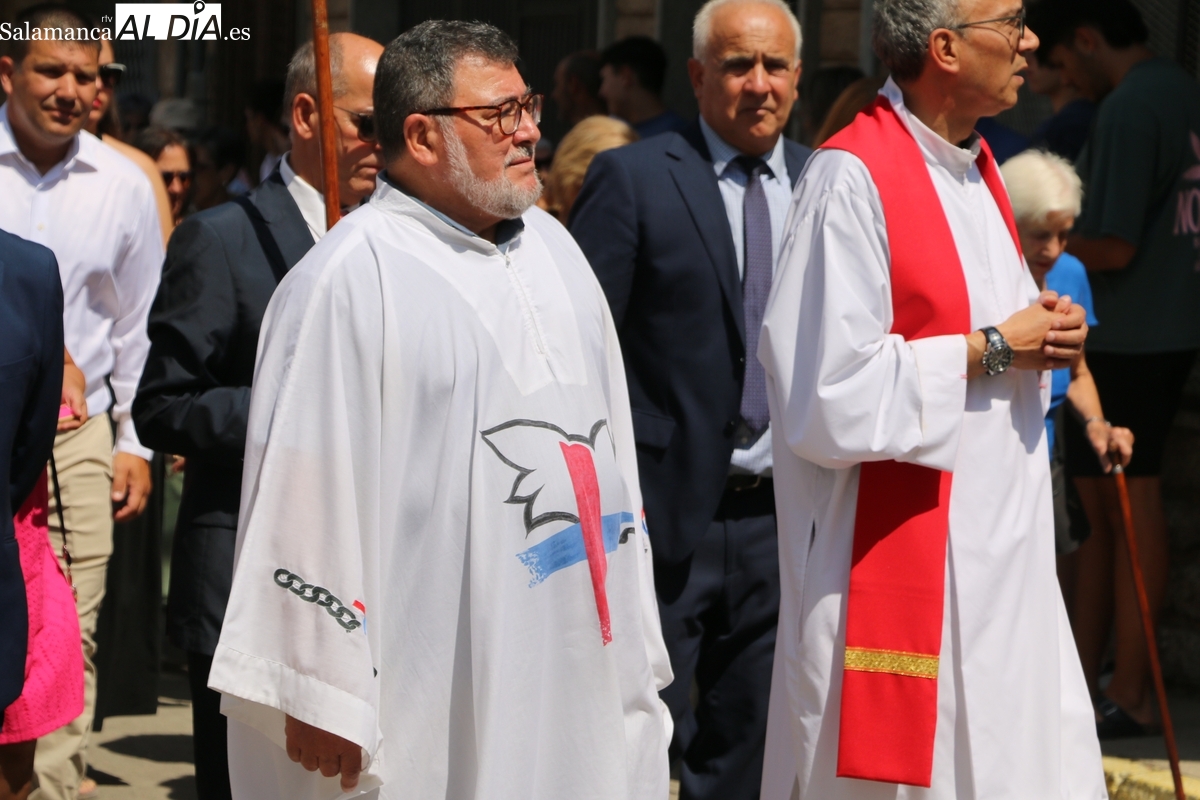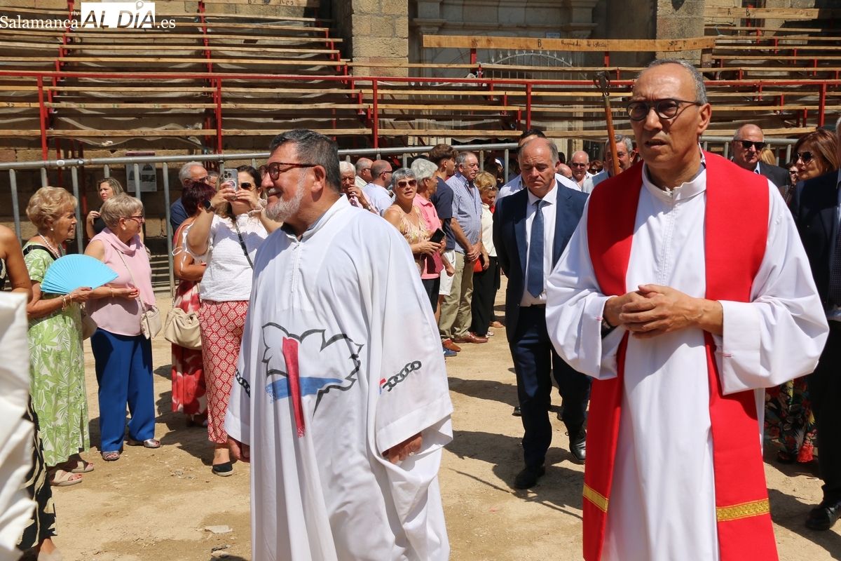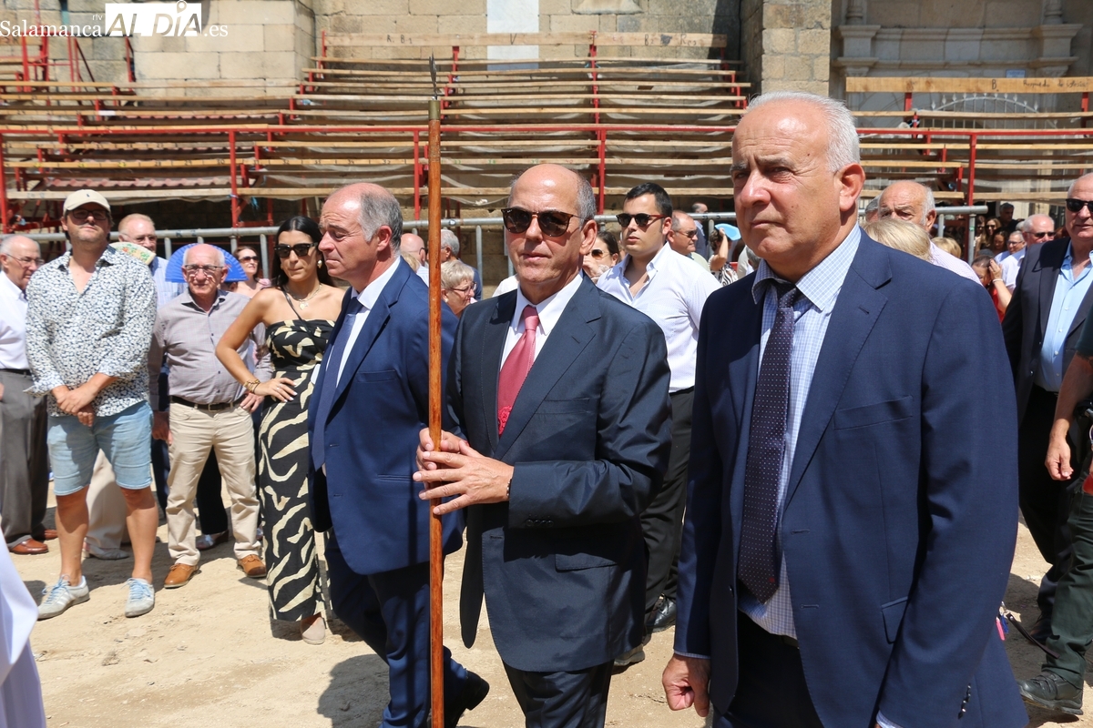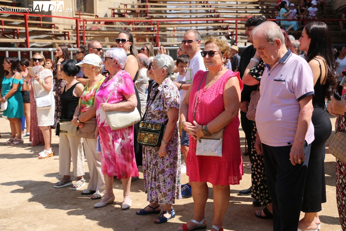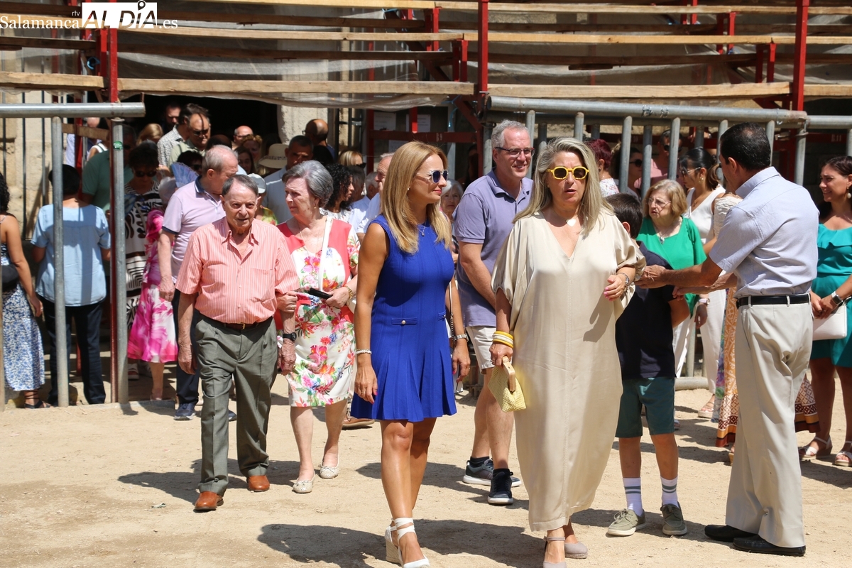 Numerosas autoridades acompañaron a la corporación municipal en el día grande de las fiestas, que continúan esta tarde con canción española y por la noche con el desfile de carrozas. Las celebraciones se extenderán hasta el jueves 28 de agosto con un intenso programa taurino y de verbenas